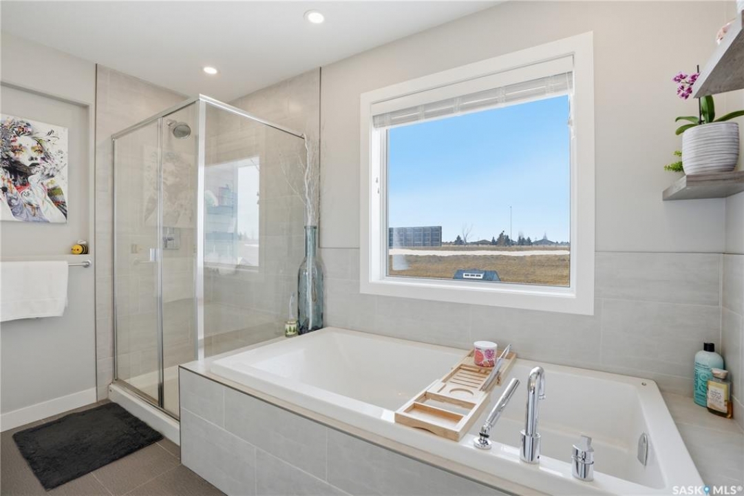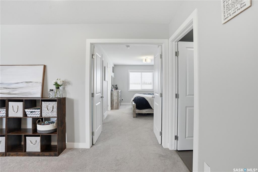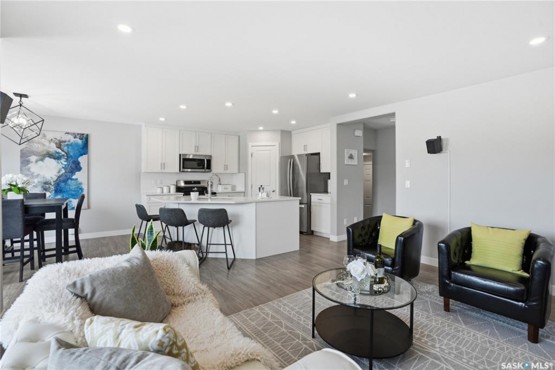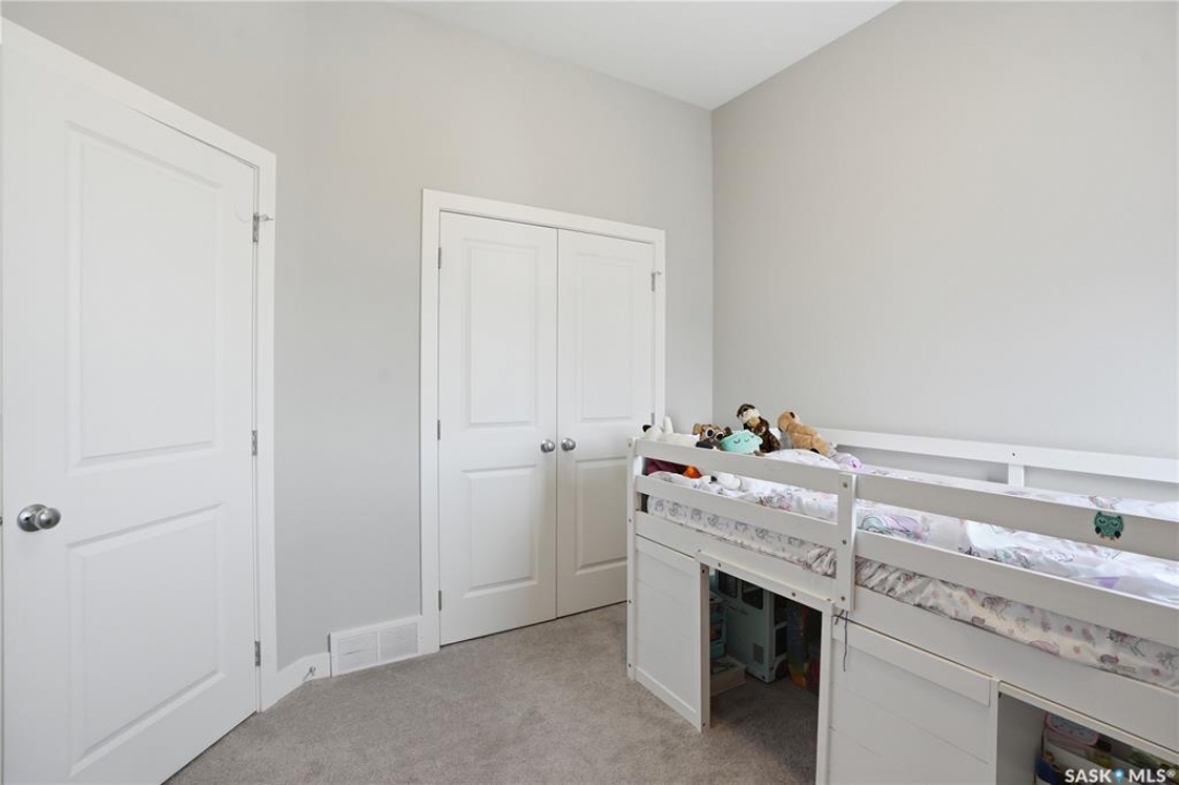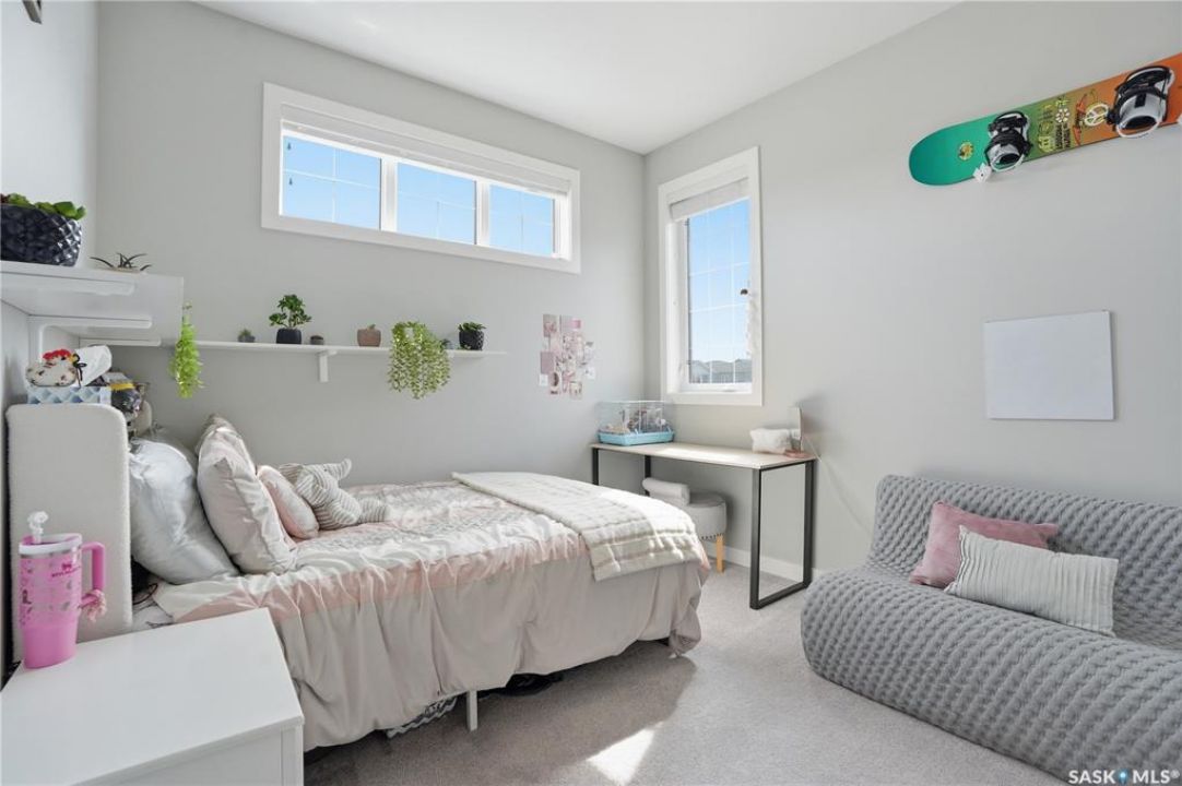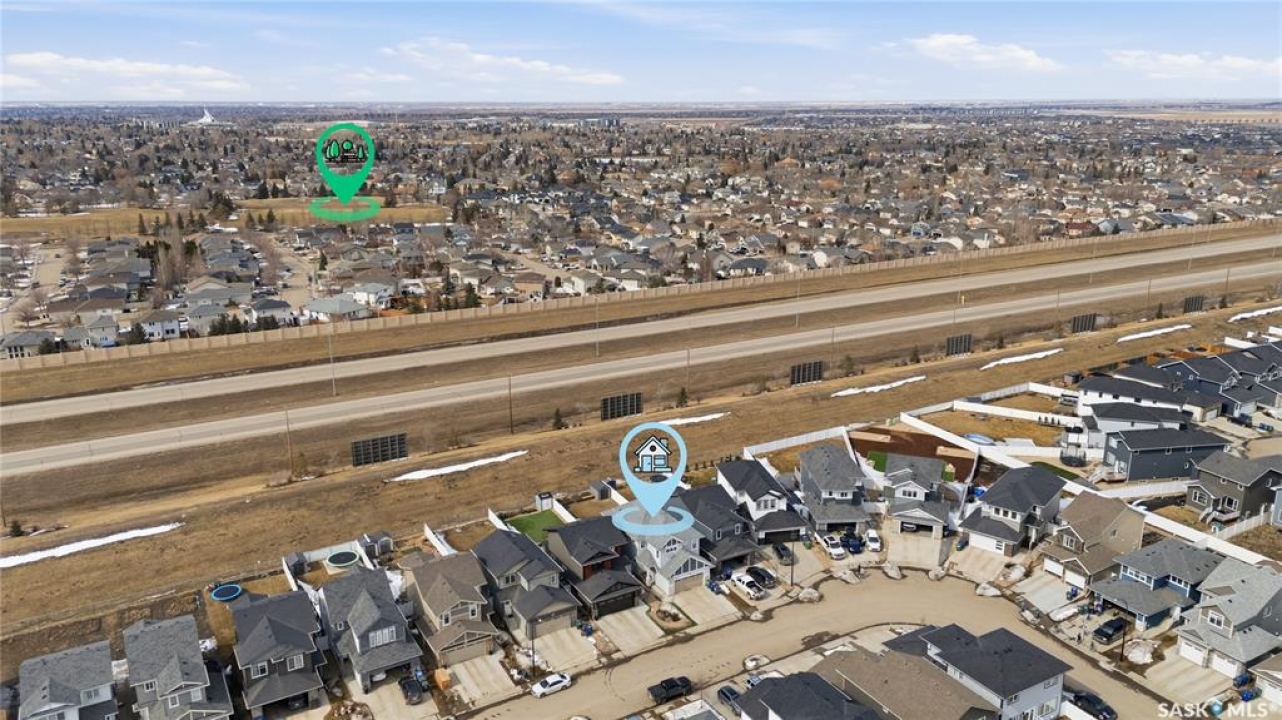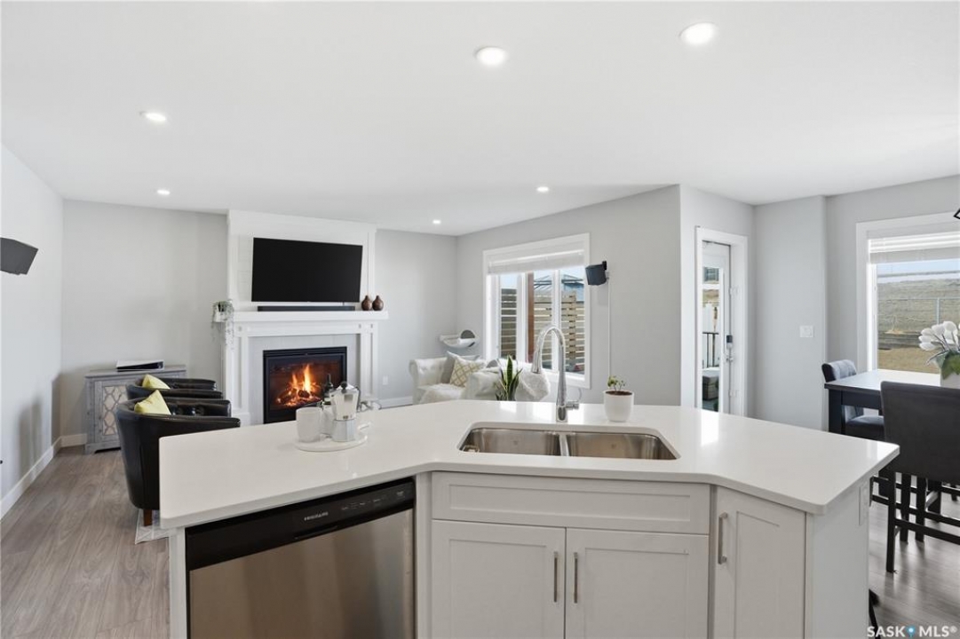 Better than brand new and truly move-in ready, this stunning two-storey home is set on one of Brighton's most sought-after, family-friendly streets. Enjoy a welcoming sense of community where kids play outside and neighbours connect, exceptional privacy with no rear neighbours. The vinyl and stone exterior offers great curb appeal, with a double concrete driveway leading to an insulated attached garage with a brand-new natural gas heater on its own smart thermostat. Step into the fully fenced west-facing backyard—perfect for family time and entertaining, featuring a composite deck with privacy wall and a 30' x 6' raised garden with inset steps, and an 8' x 10' storage shed. Inside, the bright open-concept main floor is designed for everyday living, with large windows, a cozy gas fireplace, and a stylish kitchen with white cabinetry, quartz countertops, stainless steel appliances, an oversized island, fridge with water and ice, and a convection/air fryer oven. The dining area overlooks the backyard, while a powder room and direct garage access complete the main level. Upstairs offers space for the whole family with 10-foot ceilings in the secondary bedrooms, a spacious bonus room, convenient laundry, and two generous bedrooms. The primary suite is a true retreat, featuring double French doors, a walk-in closet with custom cabinetry, and a spa-like ensuite with a deep soaker tub, oversized shower, and dual sinks. Additional highlights include an oversized A/C unit, Google Nest smart thermostat, central vacuum with attachments, recently serviced HVAC and furnace, and an unfinished basement roughed-in for future development. Located just minutes from parks, ponds, walking trails, and amenities—and only seven minutes to the University of Saskatchewan—this home offers the perfect blend of family living, community, and modern comfort. A rare opportunity on one of Brighton's best streets—this is the kind of home families wait for.