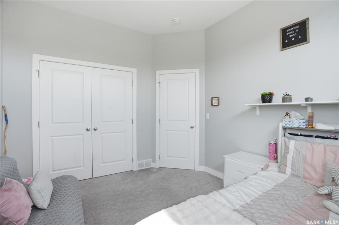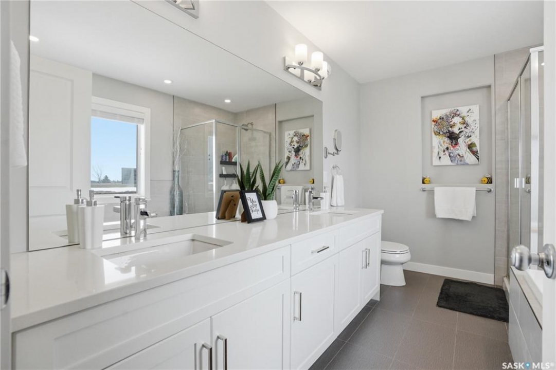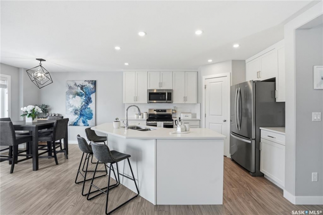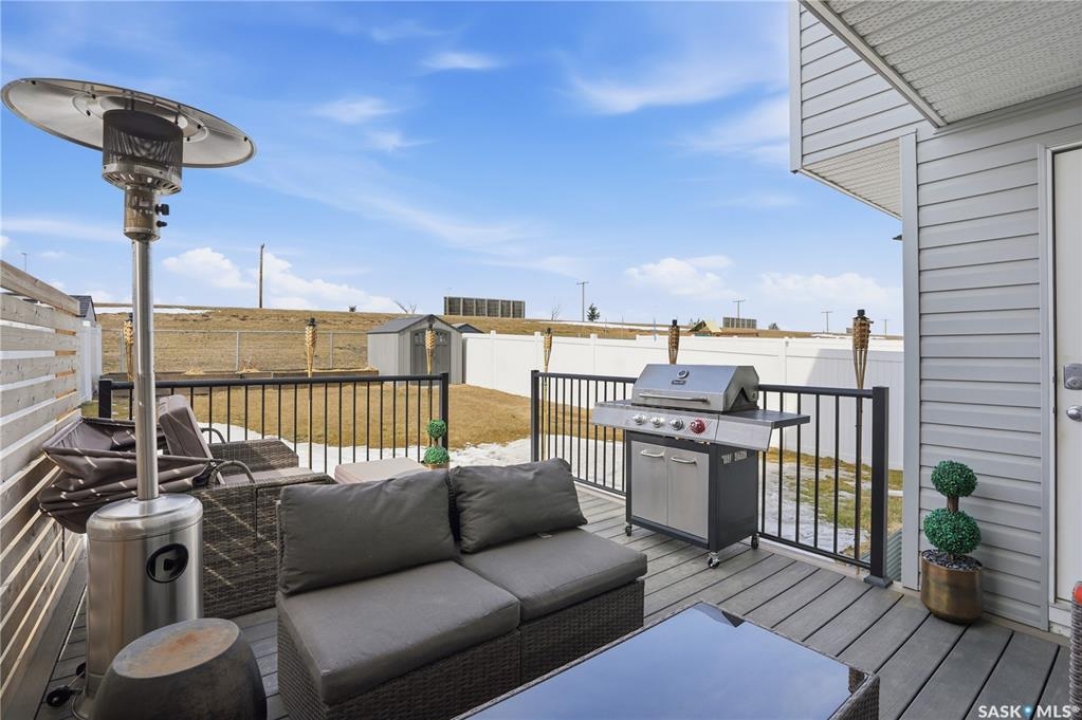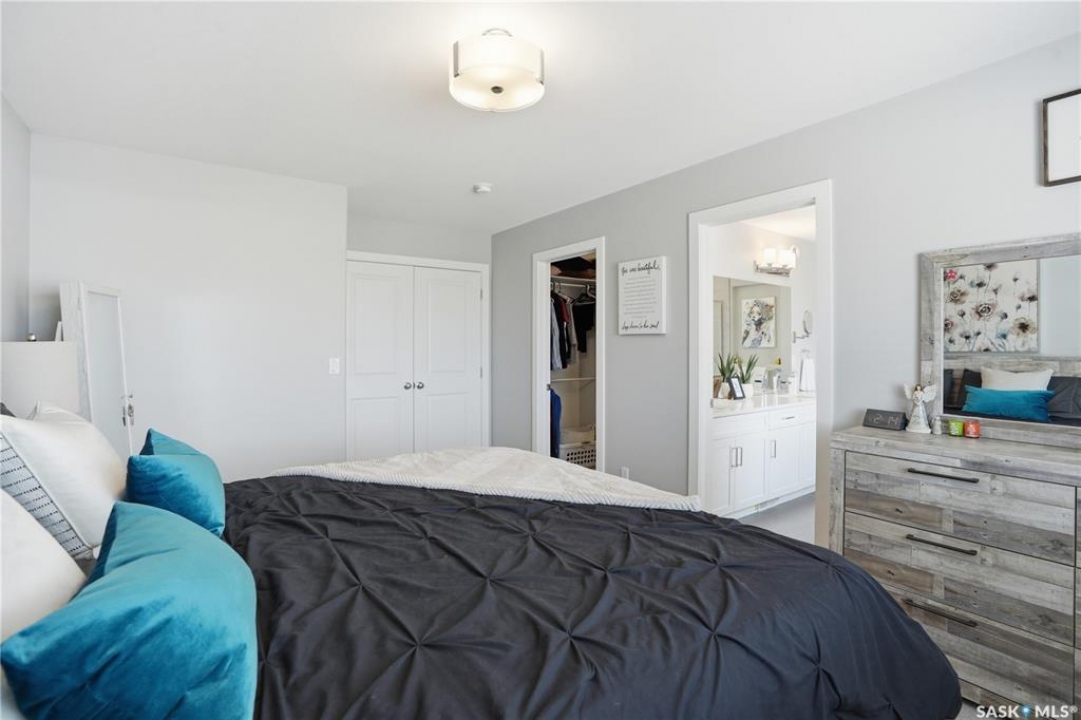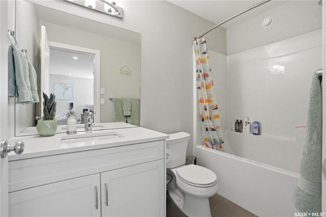 Better than brand new and truly move-in ready, this stunning two-storey home is set on one of Brighton's most sought-after, family-friendly streets. Enjoy a welcoming sense of community where kids play outside and neighbours connect, exceptional privacy with no rear neighbours. The vinyl and stone exterior offers great curb appeal, with a double concrete driveway leading to an insulated attached garage with a brand-new natural gas heater on its own smart thermostat. Step into the fully fenced west-facing backyard—perfect for family time and entertaining, featuring a composite deck with privacy wall and a 30' x 6' raised garden with inset steps, and an 8' x 10' storage shed. Inside, the bright open-concept main floor is designed for everyday living, with large windows, a cozy gas fireplace, and a stylish kitchen with white cabinetry, quartz countertops, stainless steel appliances, an oversized island, fridge with water and ice, and a convection/air fryer oven. The dining area overlooks the backyard, while a powder room and direct garage access complete the main level. Upstairs offers space for the whole family with 10-foot ceilings in the secondary bedrooms, a spacious bonus room, convenient laundry, and two generous bedrooms. The primary suite is a true retreat, featuring double French doors, a walk-in closet with custom cabinetry, and a spa-like ensuite with a deep soaker tub, oversized shower, and dual sinks. Additional highlights include an oversized A/C unit, Google Nest smart thermostat, central vacuum with attachments, recently serviced HVAC and furnace, and an unfinished basement roughed-in for future development. Located just minutes from parks, ponds, walking trails, and amenities—and only seven minutes to the University of Saskatchewan—this home offers the perfect blend of family living, community, and modern comfort. A rare opportunity on one of Brighton's best streets—this is the kind of home families wait for.