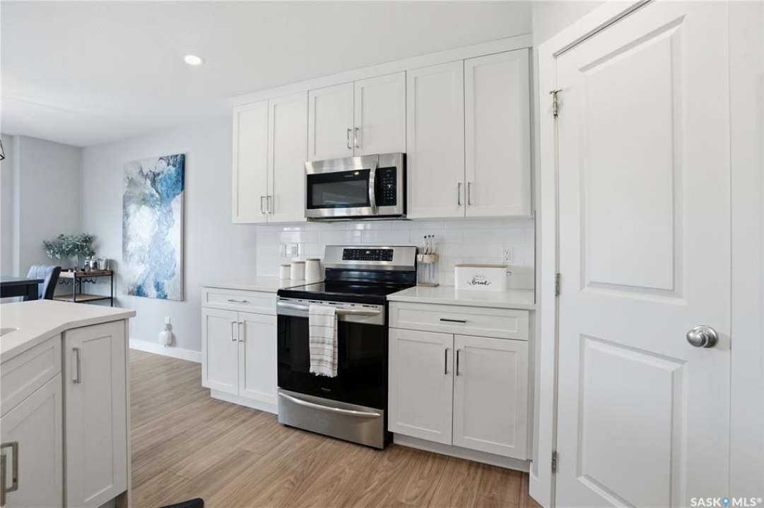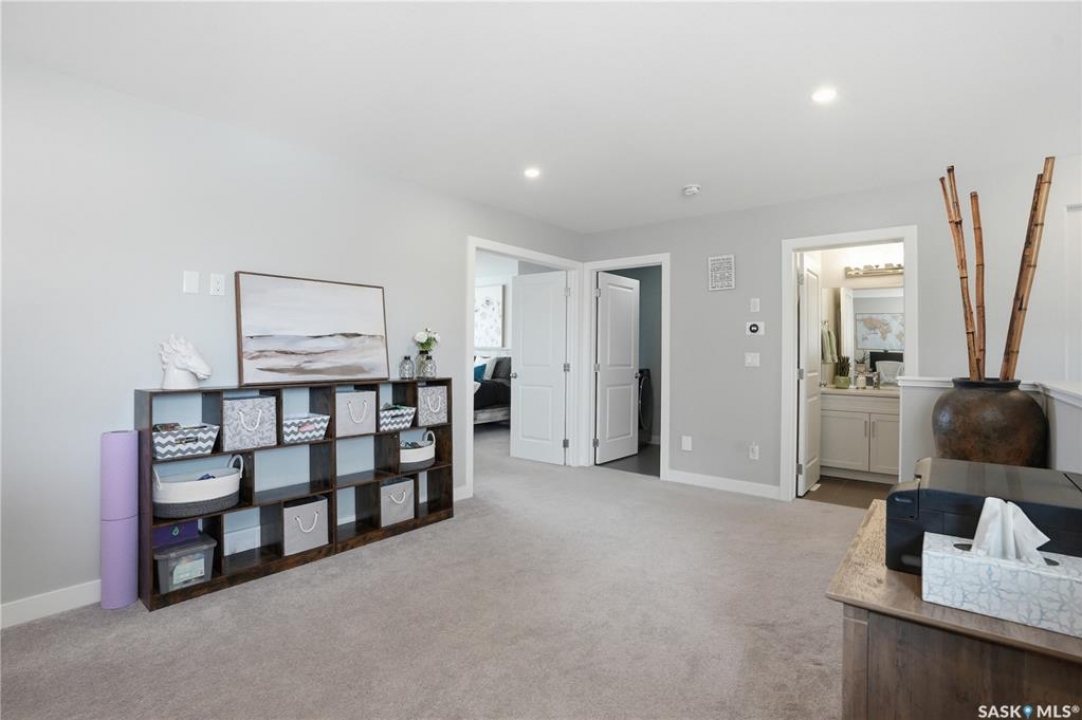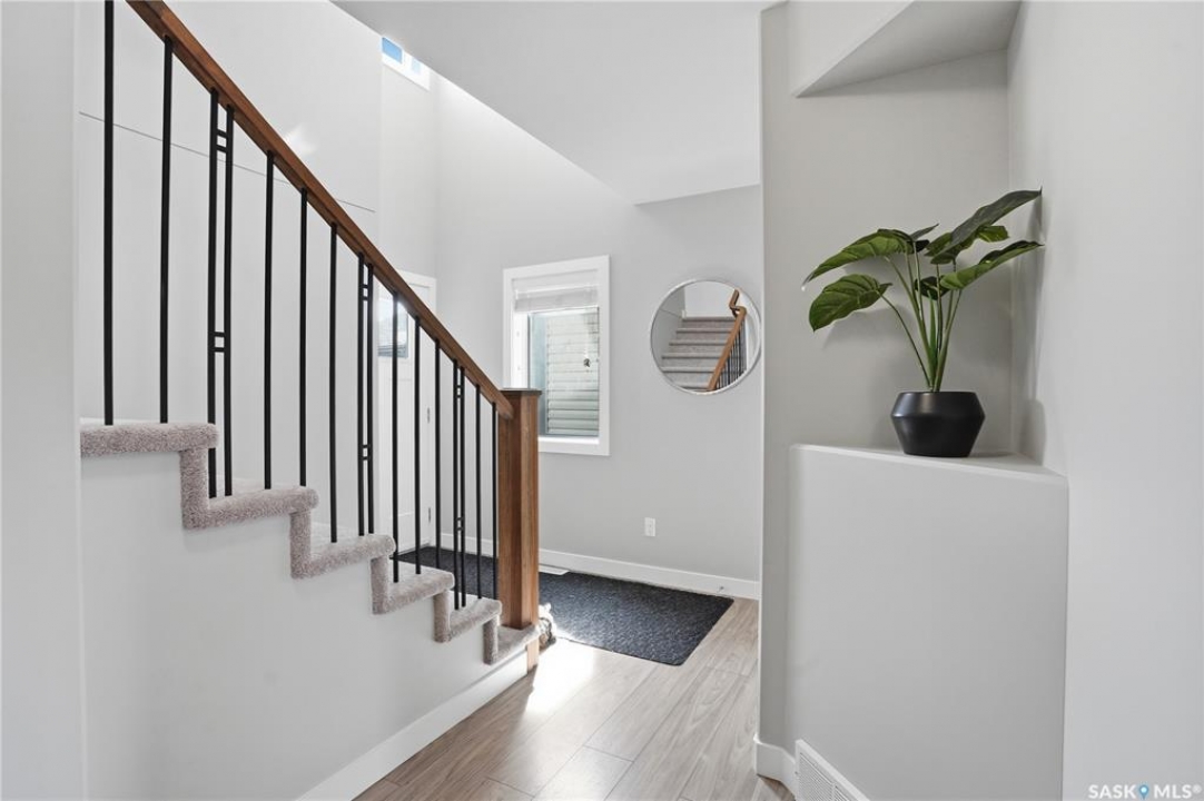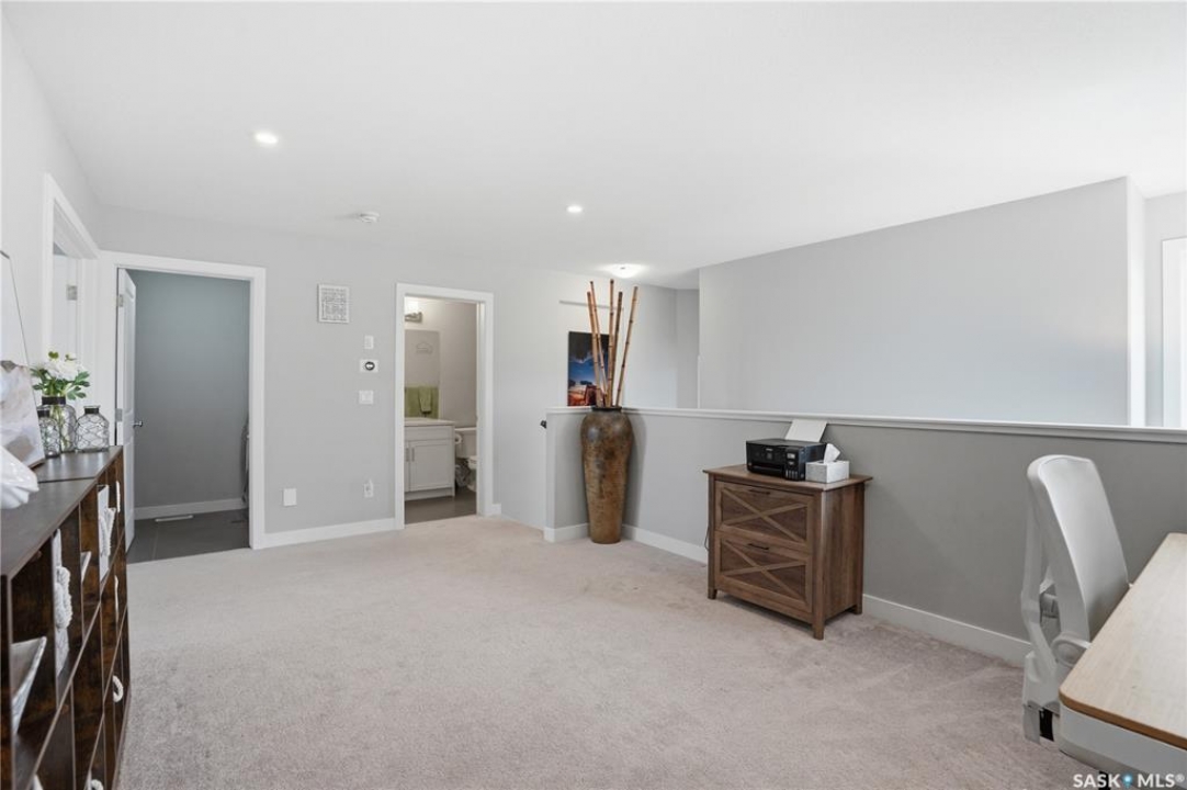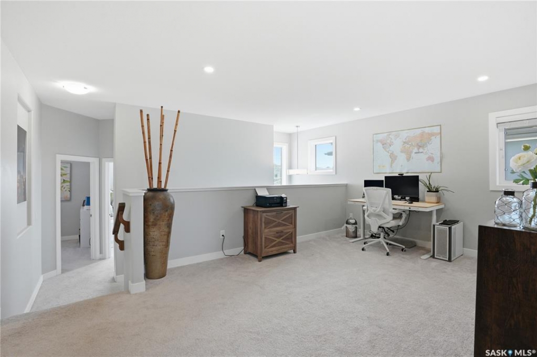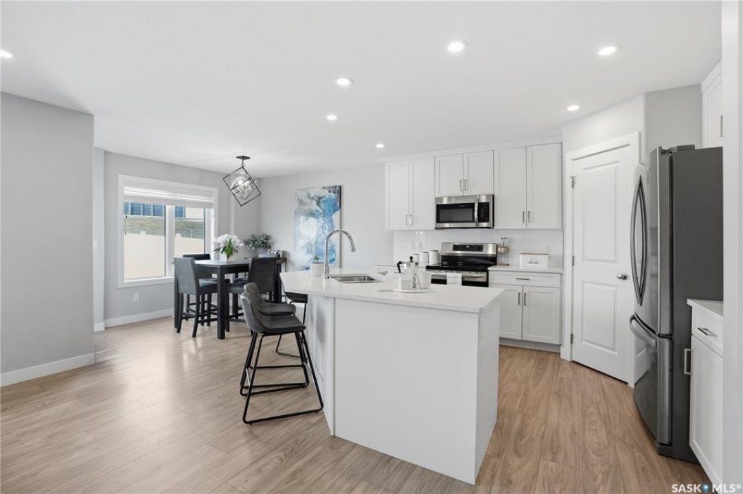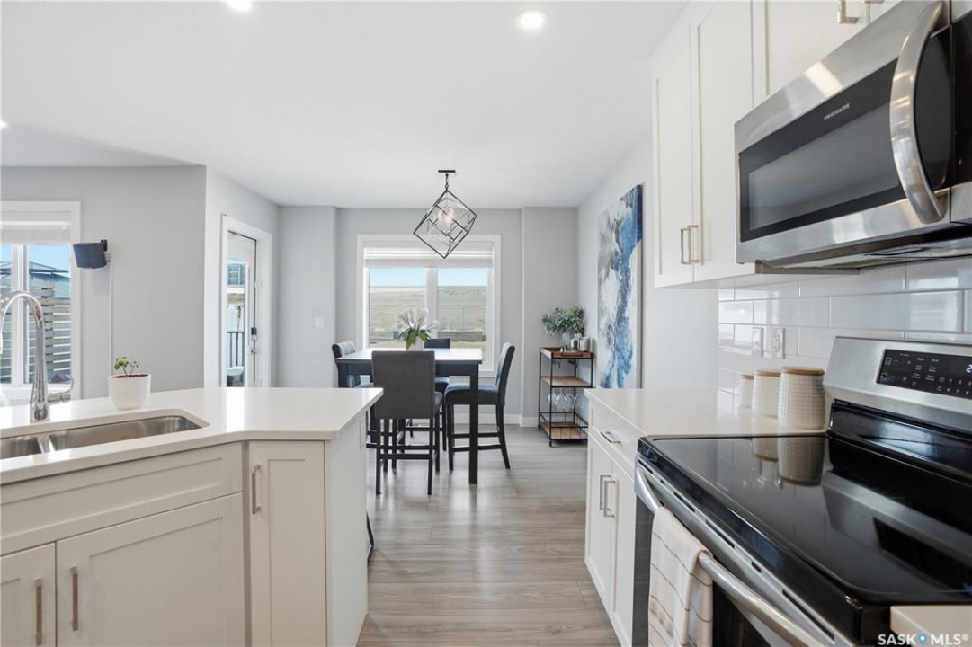 Better than brand new and truly move-in ready, this stunning two-storey home is set on one of Brighton's most sought-after, family-friendly streets. Enjoy a welcoming sense of community where kids play outside and neighbours connect, exceptional privacy with no rear neighbours. The vinyl and stone exterior offers great curb appeal, with a double concrete driveway leading to an insulated attached garage with a brand-new natural gas heater on its own smart thermostat. Step into the fully fenced west-facing backyard—perfect for family time and entertaining, featuring a composite deck with privacy wall and a 30' x 6' raised garden with inset steps, and an 8' x 10' storage shed. Inside, the bright open-concept main floor is designed for everyday living, with large windows, a cozy gas fireplace, and a stylish kitchen with white cabinetry, quartz countertops, stainless steel appliances, an oversized island, fridge with water and ice, and a convection/air fryer oven. The dining area overlooks the backyard, while a powder room and direct garage access complete the main level. Upstairs offers space for the whole family with 10-foot ceilings in the secondary bedrooms, a spacious bonus room, convenient laundry, and two generous bedrooms. The primary suite is a true retreat, featuring double French doors, a walk-in closet with custom cabinetry, and a spa-like ensuite with a deep soaker tub, oversized shower, and dual sinks. Additional highlights include an oversized A/C unit, Google Nest smart thermostat, central vacuum with attachments, recently serviced HVAC and furnace, and an unfinished basement roughed-in for future development. Located just minutes from parks, ponds, walking trails, and amenities—and only seven minutes to the University of Saskatchewan—this home offers the perfect blend of family living, community, and modern comfort. A rare opportunity on one of Brighton's best streets—this is the kind of home families wait for.