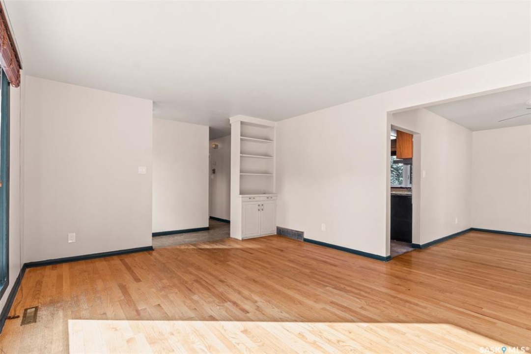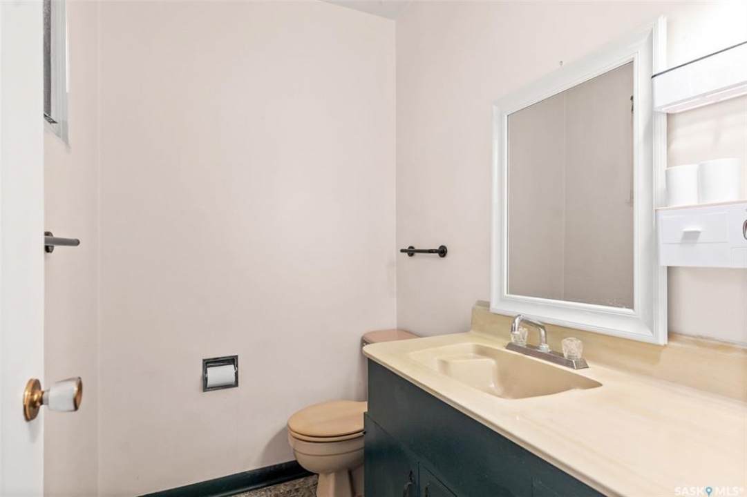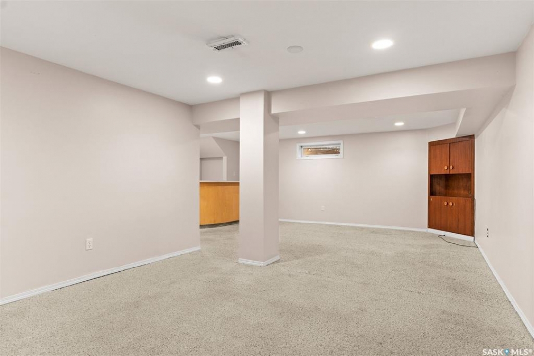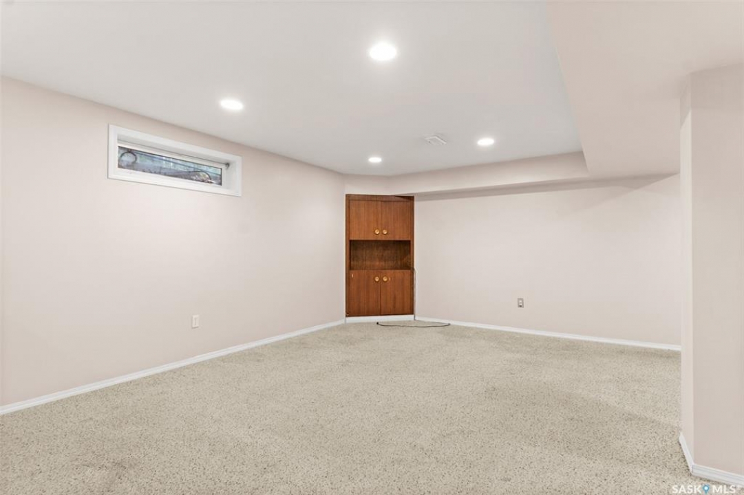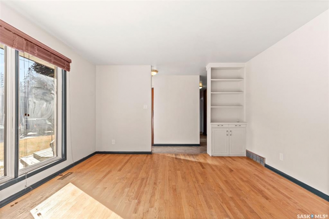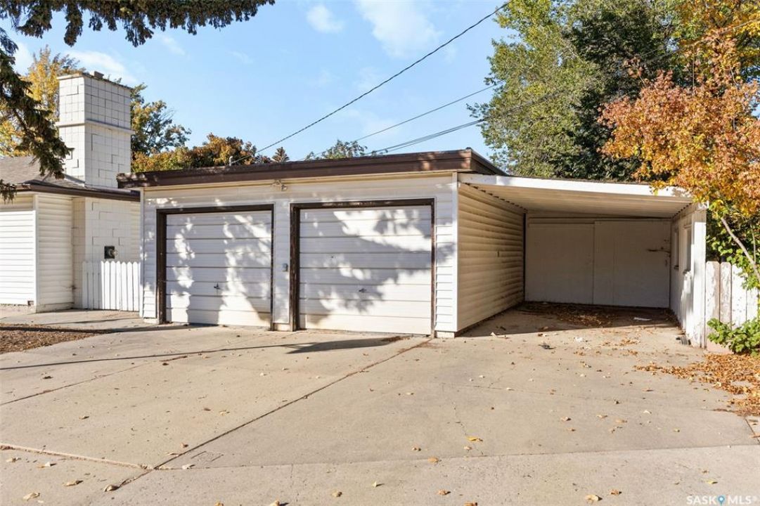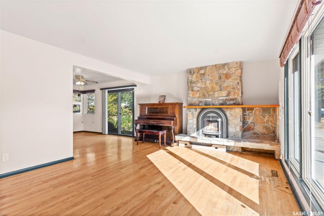 Excellent Greystone Heights location! Close to schools, park, 8th st shopping and university. Spacious 4 bedroom 4 bath bungalow on a huge lot! The L-shape living room, dining room and bedrooms on the main feature Oak hardwood. The kitchen, hallways and main bath are ceramic tile. There is a two piece bath off the master bdrm. The fireplace has been converted to gas. The lower level is fully developed with an L-shape family/games room with wet bar, three piece bath, den, spacious bedroom with over-size window, and the laundry/utility room with an additional two piece bath. The side entry goes directly downstairs and the laundry area is positioned to allow shared laundry if you need a suite. The side yard is accessed via patio doors from the dining room. There's a double detached garage, a carport and shed are attached to the garage. A triple concrete drive provides access and parking. Some recent upgrades: shingle (2020), fridge (2021), water heater (2025), most newer PVC windows. The house needs some interior renovation; it's a handyman special offering great potential. Call to view today!