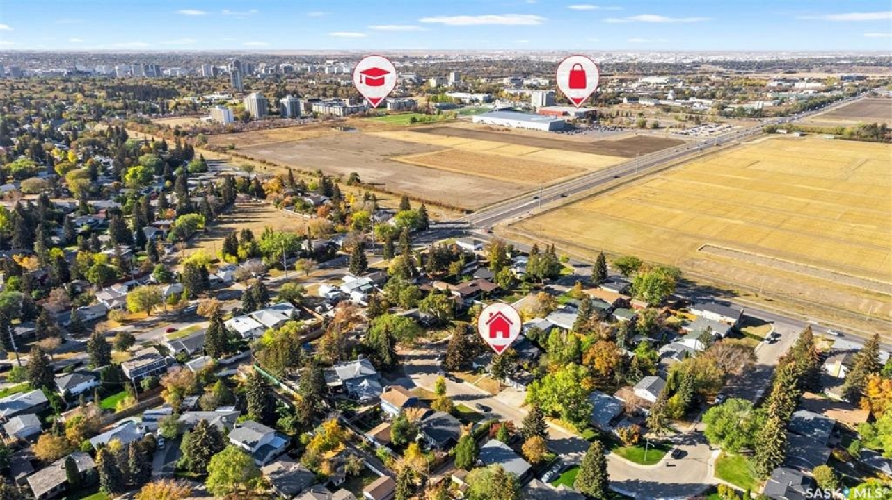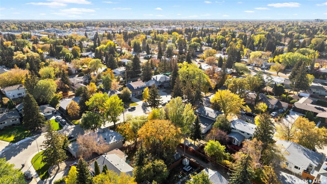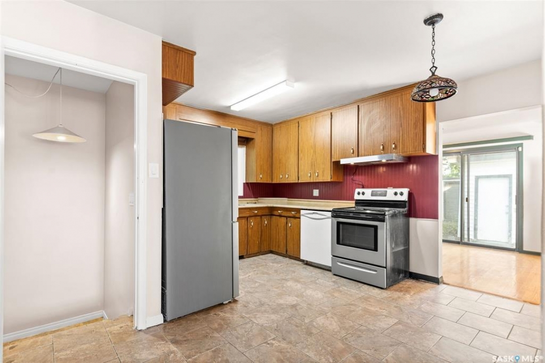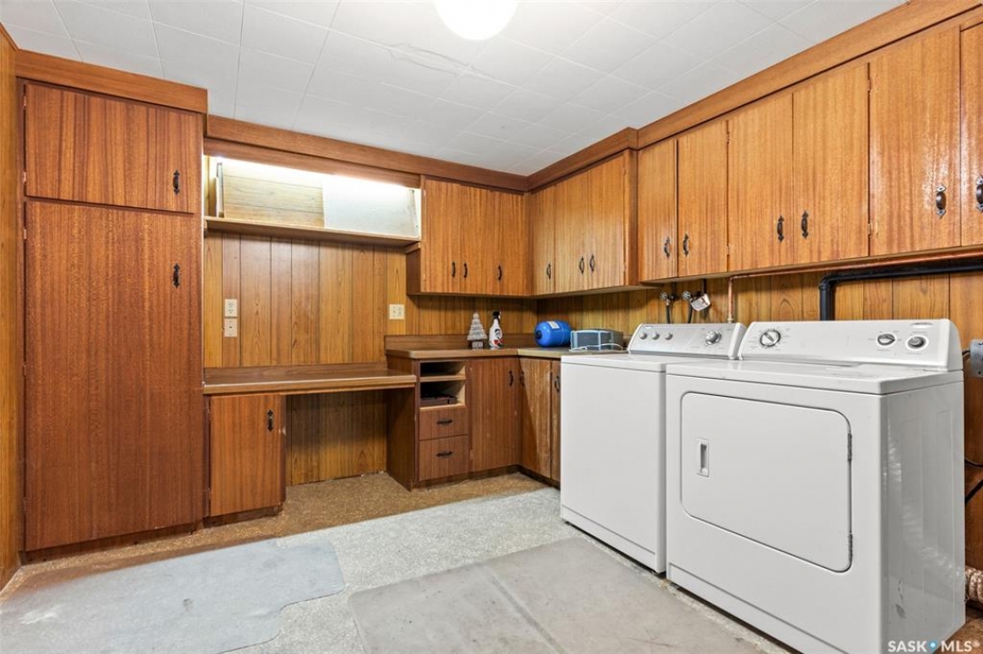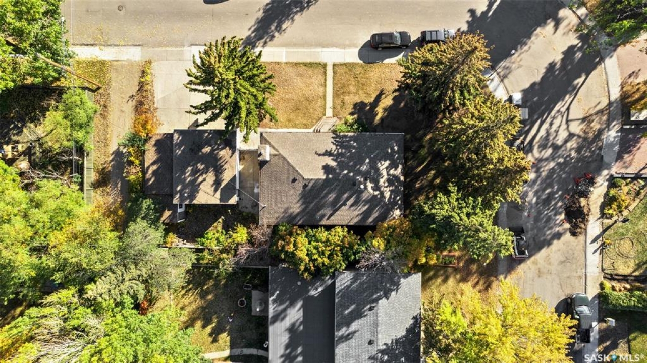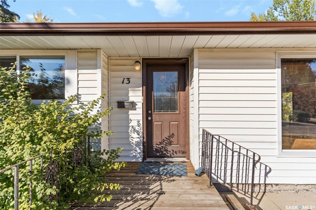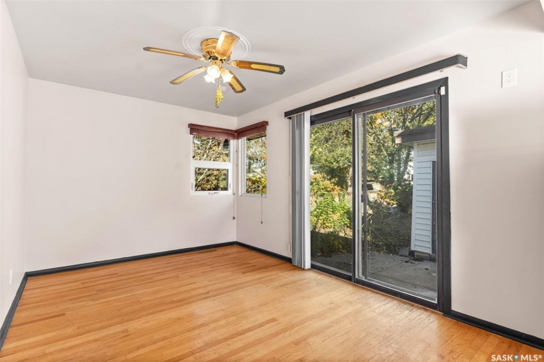 Excellent Greystone Heights location! Close to schools, park, 8th st shopping and university. Spacious 4 bedroom 4 bath bungalow on a huge lot! The L-shape living room, dining room and bedrooms on the main feature Oak hardwood. The kitchen, hallways and main bath are ceramic tile. There is a two piece bath off the master bdrm. The fireplace has been converted to gas. The lower level is fully developed with an L-shape family/games room with wet bar, three piece bath, den, spacious bedroom with over-size window, and the laundry/utility room with an additional two piece bath. The side entry goes directly downstairs and the laundry area is positioned to allow shared laundry if you need a suite. The side yard is accessed via patio doors from the dining room. There's a double detached garage, a carport and shed are attached to the garage. A triple concrete drive provides access and parking. Some recent upgrades: shingle (2020), fridge (2021), water heater (2025), most newer PVC windows. The house needs some interior renovation; it's a handyman special offering great potential. Call to view today!