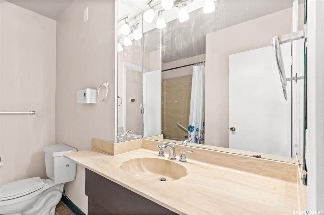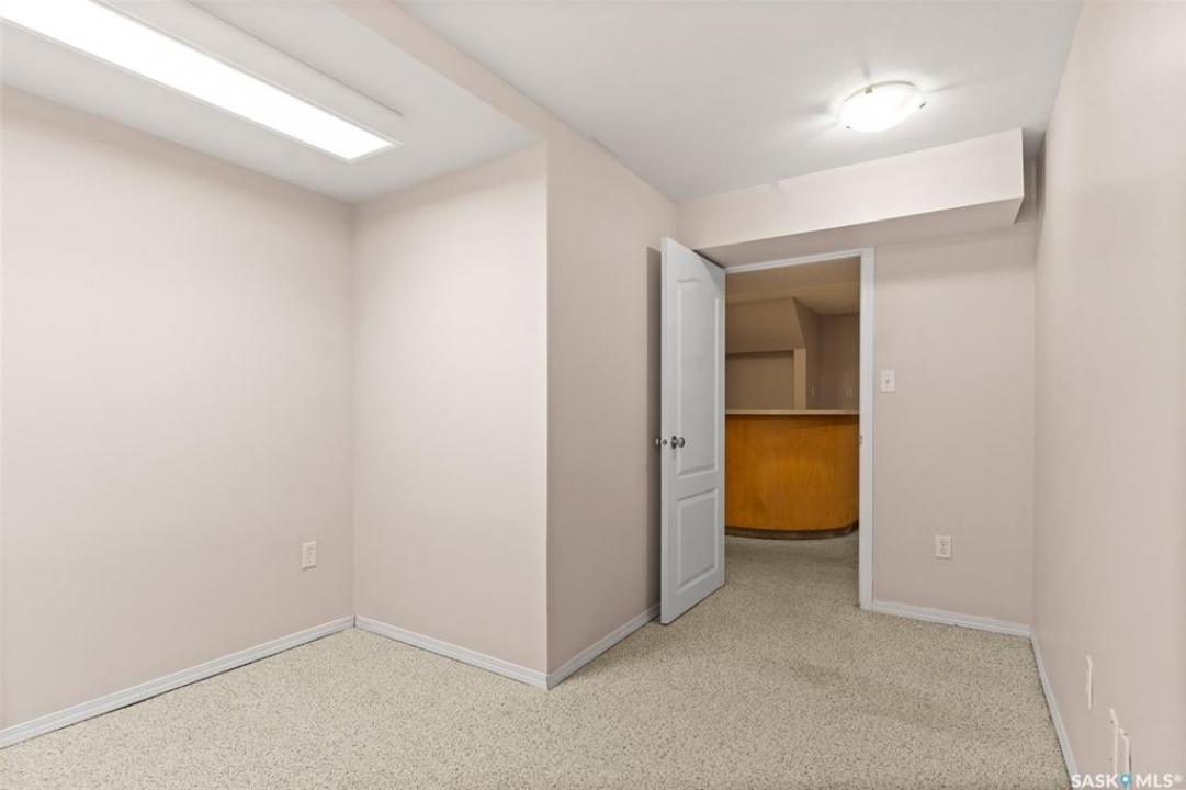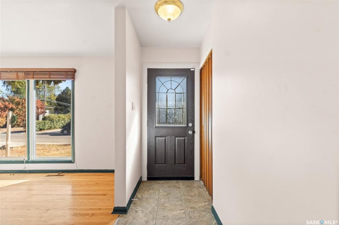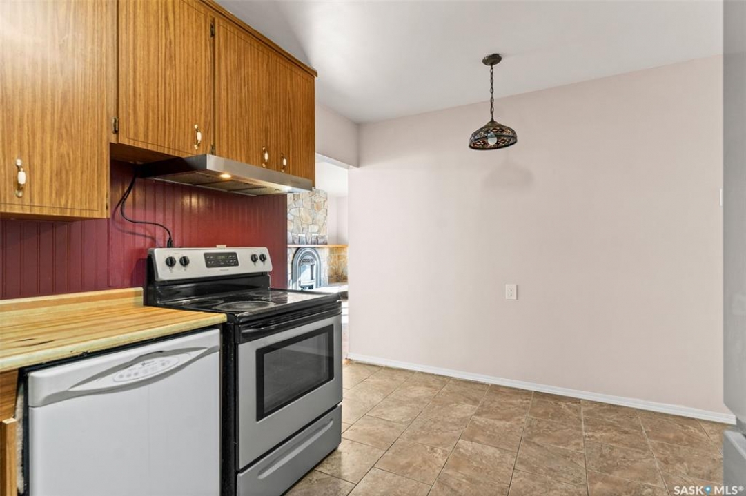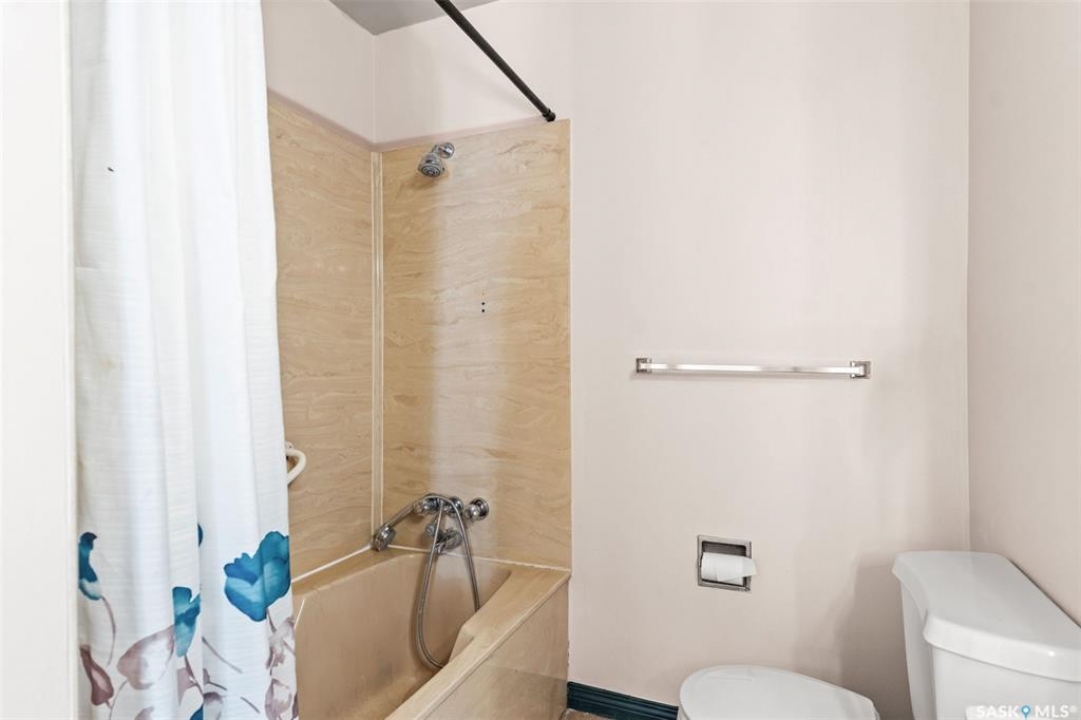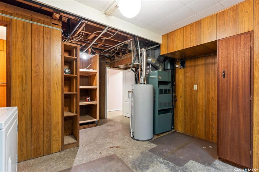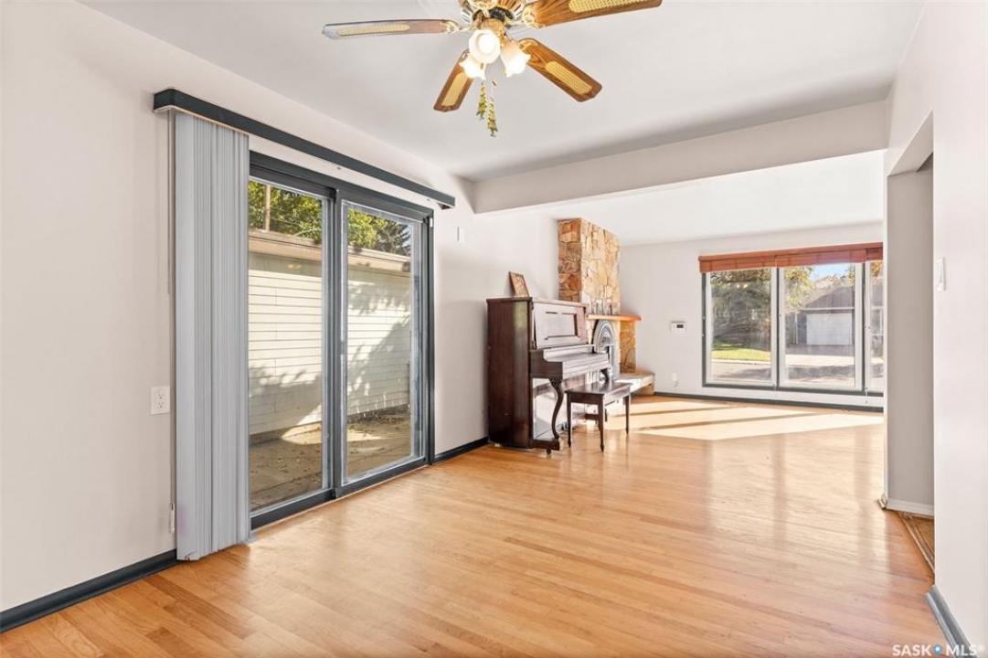 Excellent Greystone Heights location! Close to schools, park, 8th st shopping and university. Spacious 4 bedroom 4 bath bungalow on a huge lot! The L-shape living room, dining room and bedrooms on the main feature Oak hardwood. The kitchen, hallways and main bath are ceramic tile. There is a two piece bath off the master bdrm. The fireplace has been converted to gas. The lower level is fully developed with an L-shape family/games room with wet bar, three piece bath, den, spacious bedroom with over-size window, and the laundry/utility room with an additional two piece bath. The side entry goes directly downstairs and the laundry area is positioned to allow shared laundry if you need a suite. The side yard is accessed via patio doors from the dining room. There's a double detached garage, a carport and shed are attached to the garage. A triple concrete drive provides access and parking. Some recent upgrades: shingle (2020), fridge (2021), water heater (2025), most newer PVC windows. The house needs some interior renovation; it's a handyman special offering great potential. Call to view today!