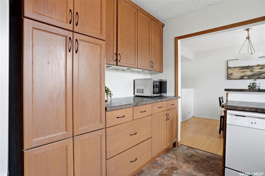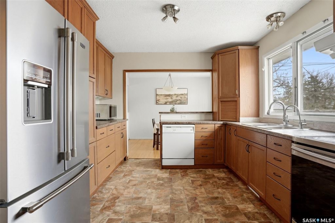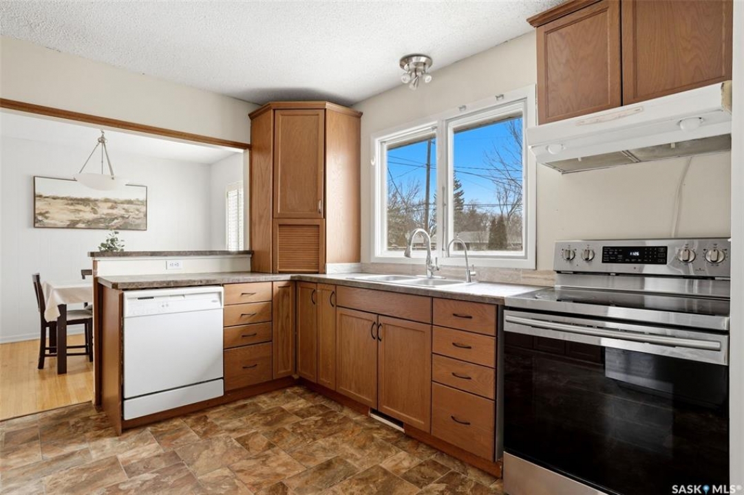 Welcome to 25 Knowles Crescent in desirable Hillsdale! Offering approximately 1585 sq. ft. on 3 levels + finished basement, this move-in ready 5-bedroom, 2-bathroom home is tucked away on a quiet crescent in one of Regina's most sought-after neighbourhoods. Close to Campbell Collegiate, elementary schools, the University of Regina, churches, parks, and the pool, this location is perfect for growing families. Inside, this well-cared-for home offers beautiful hardwood floors through the living room, dining room, stairs, and most bedrooms. The spacious living room is warm and inviting with a gas fireplace and refreshed feature wall, while the updated kitchen showcases stained maple cabinetry, updated countertops, and newer stainless steel fridge and stove. With 2 bedrooms on the upper level, 2 more on the lower level, and a fifth bedroom, office, or den on the bottom level, the layout offers excellent flexibility, separation, and privacy. Even better, all 4 bedrooms on the upper and lower levels are 12' x 10.5' or larger, offering impressive space for family, guests, or home office needs. This home has seen many important upgrades including fresh paint, newer PVC windows, high-efficiency furnace, shingles, and updated exterior siding, soffits, and eaves on both the house and garage. Shingles on the house were replaced in November 2025. Outside, enjoy the large west-facing front deck, 3 parking spots on the driveway, and a 24' x 24' double garage with insulated walls, built sometime between 2008 and 2011. Move-in ready, well maintained, and in a fantastic Hillsdale location — this is a home you'll want to see. ?
