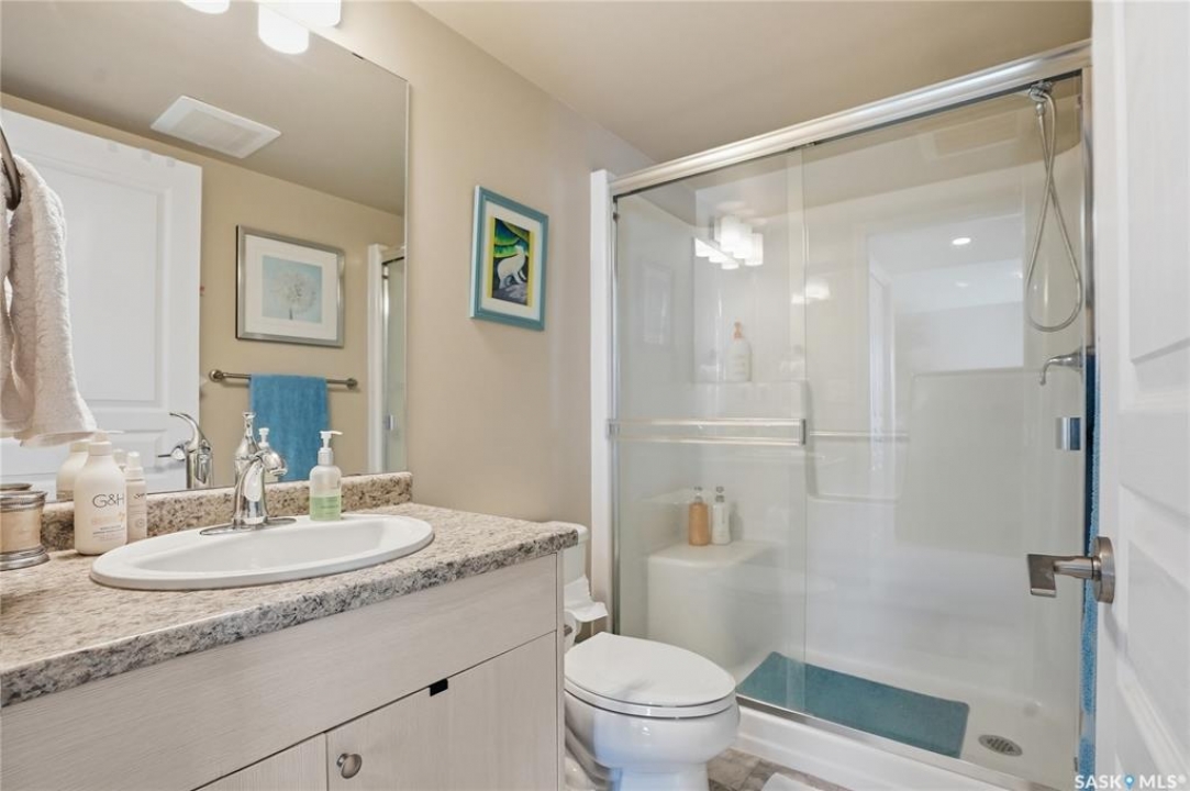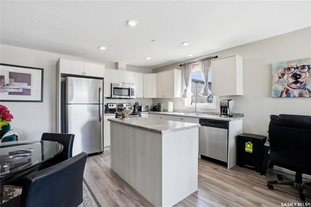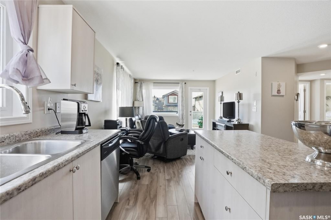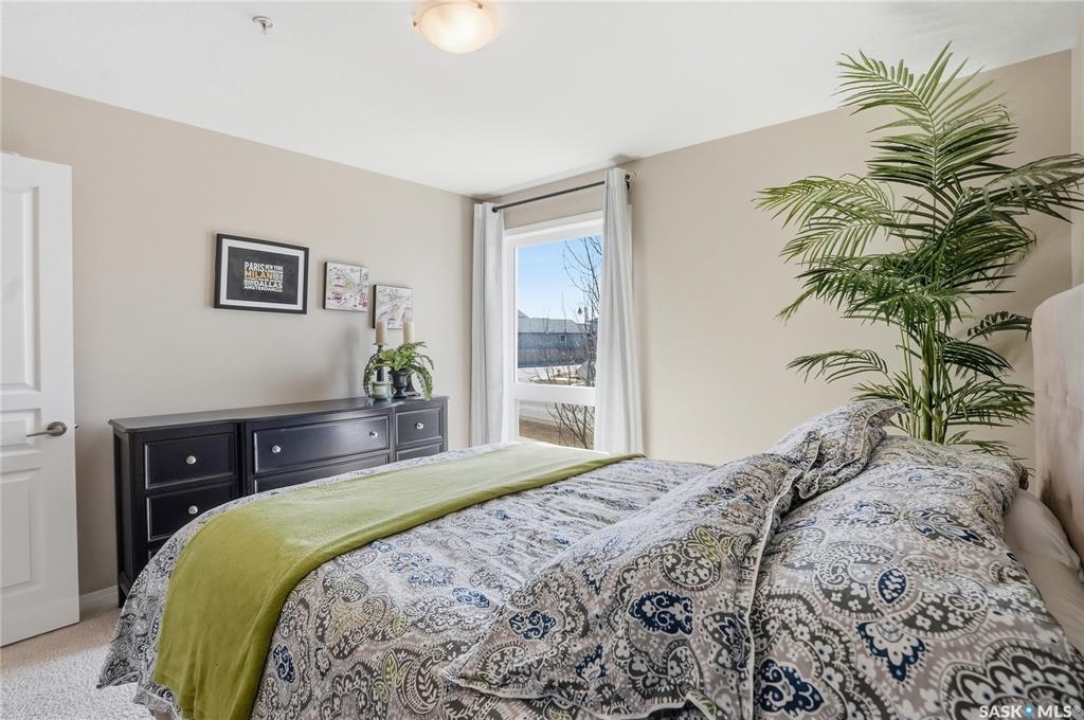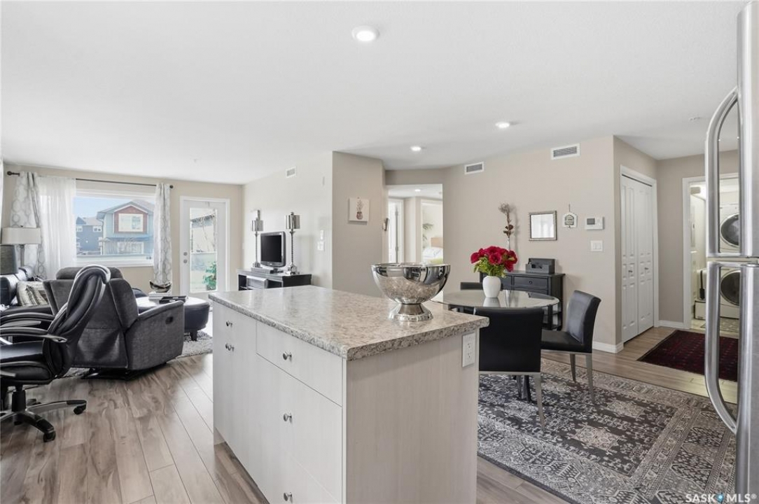 A condo that truly checks every box! This bright and spacious 2-bedroom, 2-bathroom corner unit offers comfort, convenience, and incredible value with two parking stalls and in-floor heat throughout. Step inside to a welcoming entry featuring a coat closet and a dedicated in-suite laundry room complete with a brand new washer and dryer. The open-concept layout showcases a generous dining area with plenty of space for a large table and even a home office setup. The kitchen is both functional and stylish, featuring an island with storage, stainless steel appliances, and a sunny window over the sink. The living room is filled with natural light thanks to oversized windows and offers direct access to the private balcony—perfect for relaxing or enjoying your morning coffee. Laminate flooring runs throughout the main living areas for a clean, modern feel. The primary bedroom includes a walk-through closet leading to a 3-piece ensuite with a walk-in shower. The second bedroom is equally impressive with its own walk-in closet. A full 4-piece bathroom with a tub completes the space. Each bedroom is equipped with its own heat controls, allowing for personalized comfort. This unit comes with one underground parking stall and storage locker, plus an additional above-ground titled parking stall—a rare and valuable bonus. Located in desirable Stonebridge, you're within walking distance to all amenities, making everyday living effortless. Opportunities like this don't come up often—don't miss your chance to call this exceptional condo home!