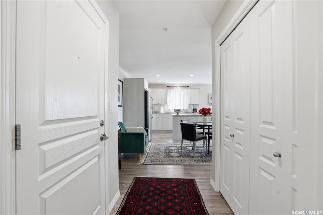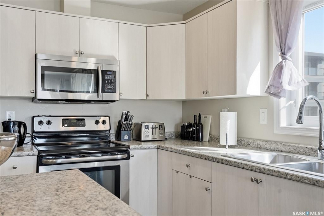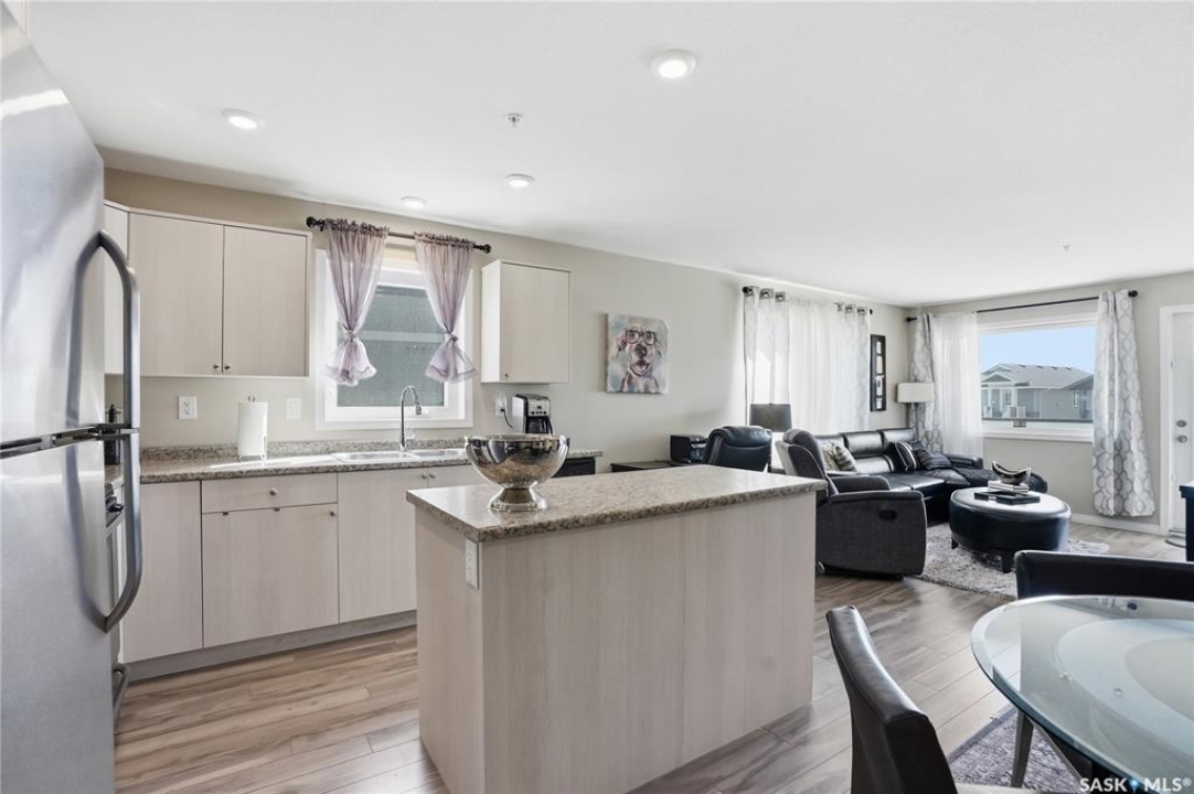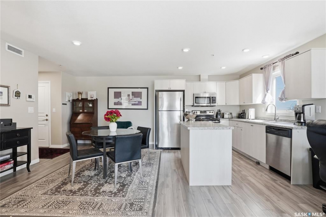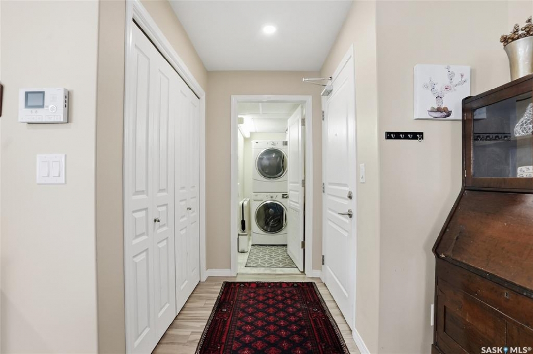 A condo that truly checks every box! This bright and spacious 2-bedroom, 2-bathroom corner unit offers comfort, convenience, and incredible value with two parking stalls and in-floor heat throughout. Step inside to a welcoming entry featuring a coat closet and a dedicated in-suite laundry room complete with a brand new washer and dryer. The open-concept layout showcases a generous dining area with plenty of space for a large table and even a home office setup. The kitchen is both functional and stylish, featuring an island with storage, stainless steel appliances, and a sunny window over the sink. The living room is filled with natural light thanks to oversized windows and offers direct access to the private balcony—perfect for relaxing or enjoying your morning coffee. Laminate flooring runs throughout the main living areas for a clean, modern feel. The primary bedroom includes a walk-through closet leading to a 3-piece ensuite with a walk-in shower. The second bedroom is equally impressive with its own walk-in closet. A full 4-piece bathroom with a tub completes the space. Each bedroom is equipped with its own heat controls, allowing for personalized comfort. This unit comes with one underground parking stall and storage locker, plus an additional above-ground titled parking stall—a rare and valuable bonus. Located in desirable Stonebridge, you're within walking distance to all amenities, making everyday living effortless. Opportunities like this don't come up often—don't miss your chance to call this exceptional condo home!