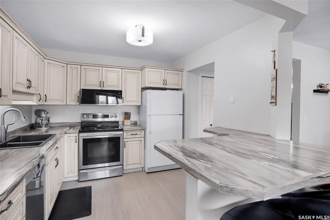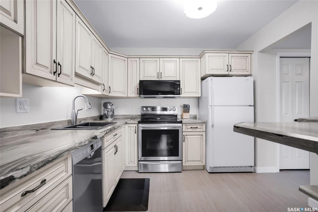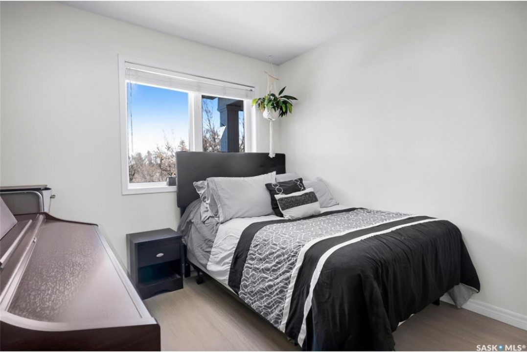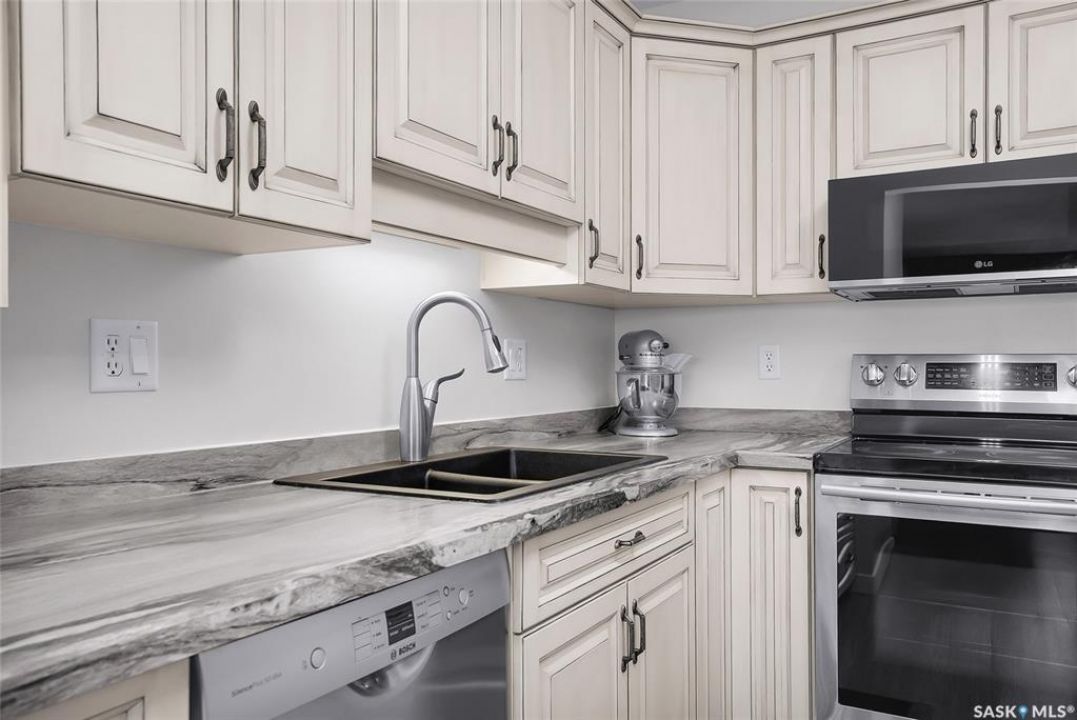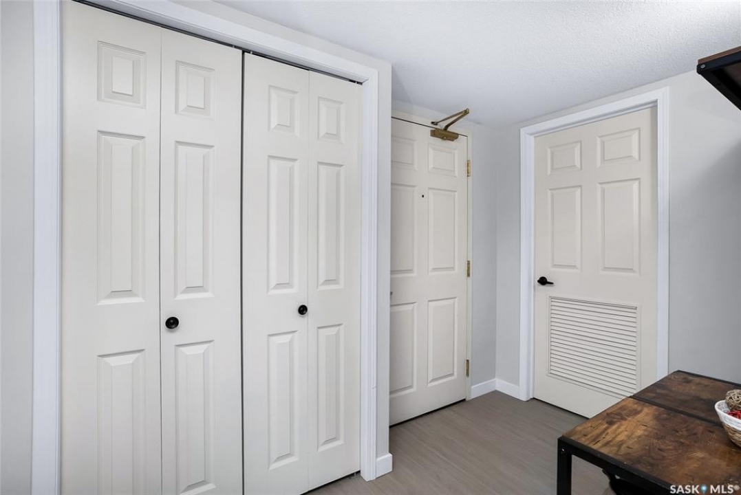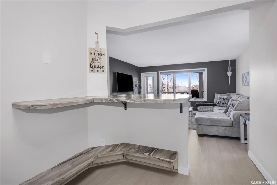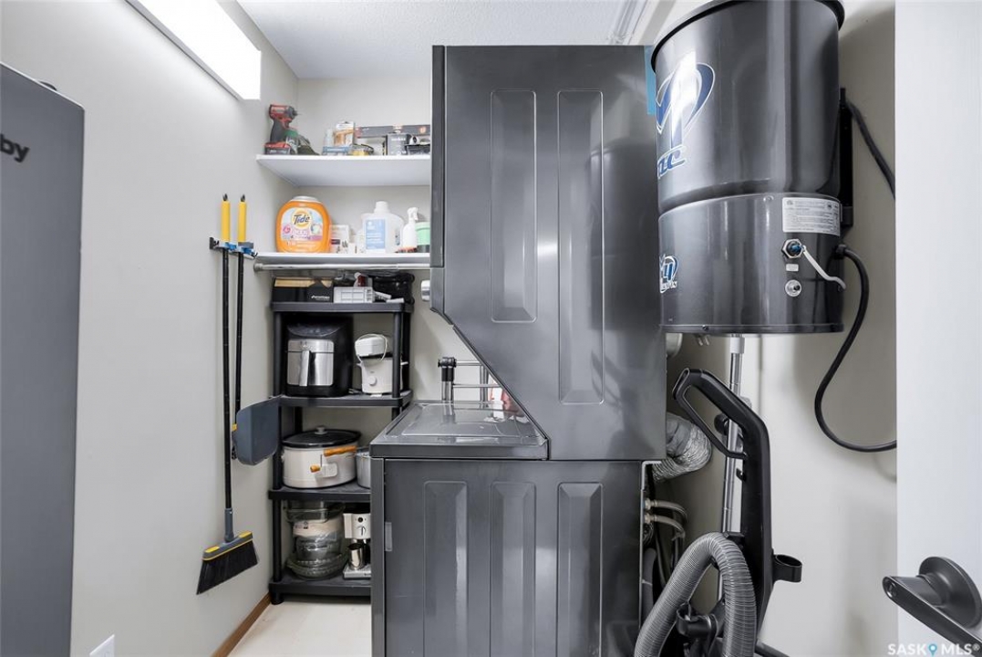 Welcome to this beautifully updated 2-bedroom, 2-bathroom top-floor condo offering comfort, privacy, and exceptional value. Situated on the quiet, north side of the building, this unit provides a peaceful setting with added privacy and minimal noise—enhanced further by solid construction between floors. Step inside to discover brand new vinyl plank flooring with in-floor heat, complemented by fresh paint throughout for a modern, move-in-ready feel. The kitchen features updated appliances, including a new s/s stove, s/s microwave and s/s dishwasher along with new taps and a stylish new shower system in the bathrooms. With over $10,000 in recent upgrades, this home is true Jem. Enjoy year-round comfort with central air conditioning and the convenience of central vacuum. Condo fees include both heat and water, offering excellent value and predictable monthly costs. Additional highlights include: 1 exclusive underground parking stall #18, Plus Sellers Rent a 2nd underground parking stall for $50/mo . 1 Spacious private storage directly in front of your parking space #18. Covered balcony for extended outdoor enjoyment. Ideally located near the University of Saskatchewan and the future Saskatchewan Polytechnic campus, this home offers excellent access to education, transit (bus stop right outside), Preston Crossing shopping, parks, and schools including Sutherland School. A fantastic opportunity for students, professionals, or investors seeking a quiet, upgraded unit in a highly accessible location.