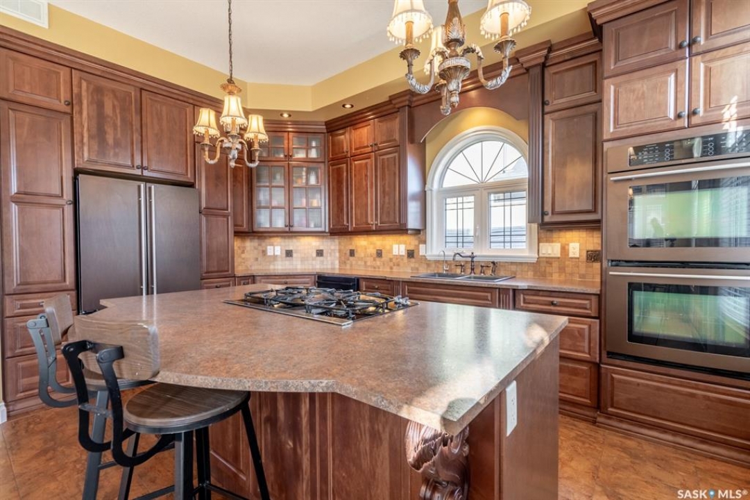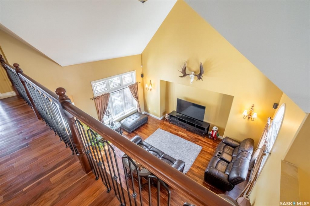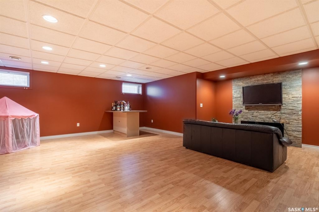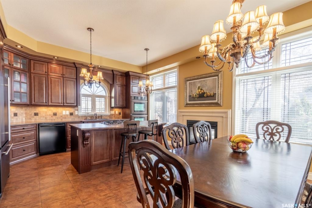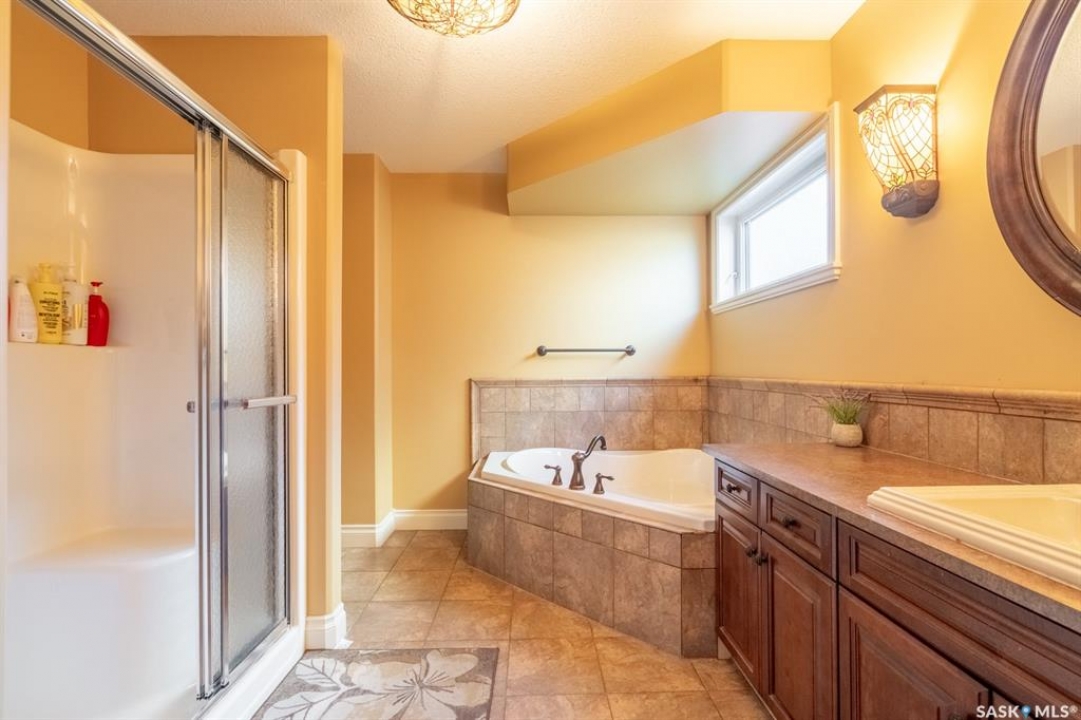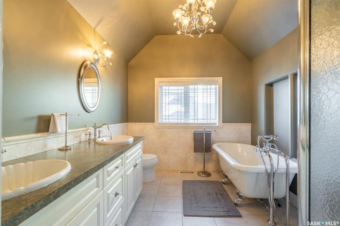 Built on piles, this exquisite custom-built home by Award Homes combines superior construction with high-end design. The home showcases unique high-pitch ceilings, premium walnut flooring across the upper levels, and an efficient 4-zone heating system. An entertainer's dream, the gourmet kitchen and dining area feature ample maple cabinetry, a massive island, top-tier bronze Jenn-Air appliances including a 5-burner gas cooktop and double wall ovens, and a stunning 2-way indoor/outdoor gas fireplace that seamlessly connects the space to the backyard. The main floor offers incredible versatility with a bright living room and a spacious bedroom, ideal for an in-law suite or office. The main floor bedroom features yard access and direct entry to a 4-piece bathroom with a jet tub and separate shower. Upstairs, the private primary bedroom is thoughtfully separated over the garage, boasting a walk-in closet and a luxurious 5-piece ensuite with a clawfoot tub, alongside two additional spacious bedrooms, a loft area, a 4-piece bath, and a dedicated laundry room. The fully developed basement provides a large family/games room accented by an electric fireplace, a fifth bedroom perfect for guests, a 4-piece bathroom, and extensive storage space. Outside, the professionally landscaped and fully fenced backyard oasis features a tile-covered deck, dual exposed aggregate patios, and a striking stacked-stone privacy wall complete with a waterfall. Completing this exceptional home is a premium 24' x 24' double-attached garage that is fully heated, insulated, and drywalled.