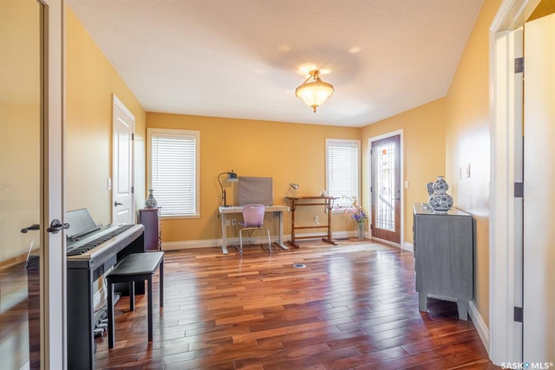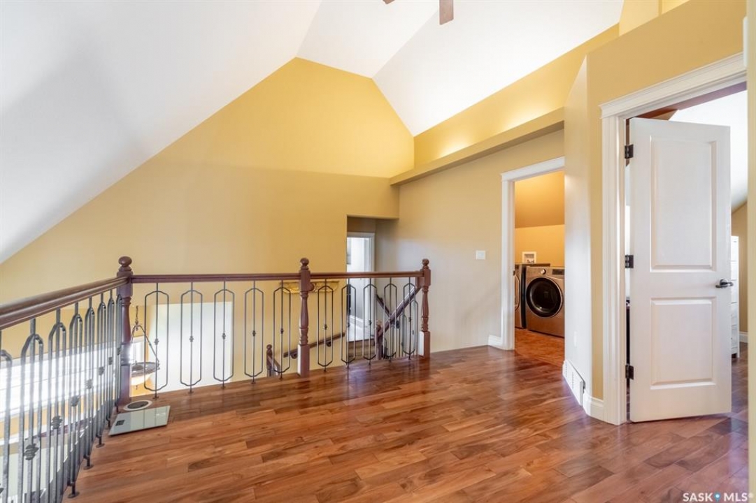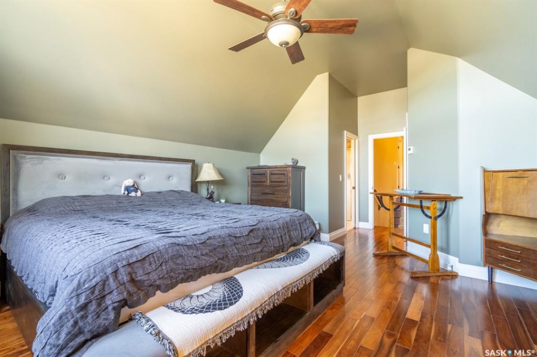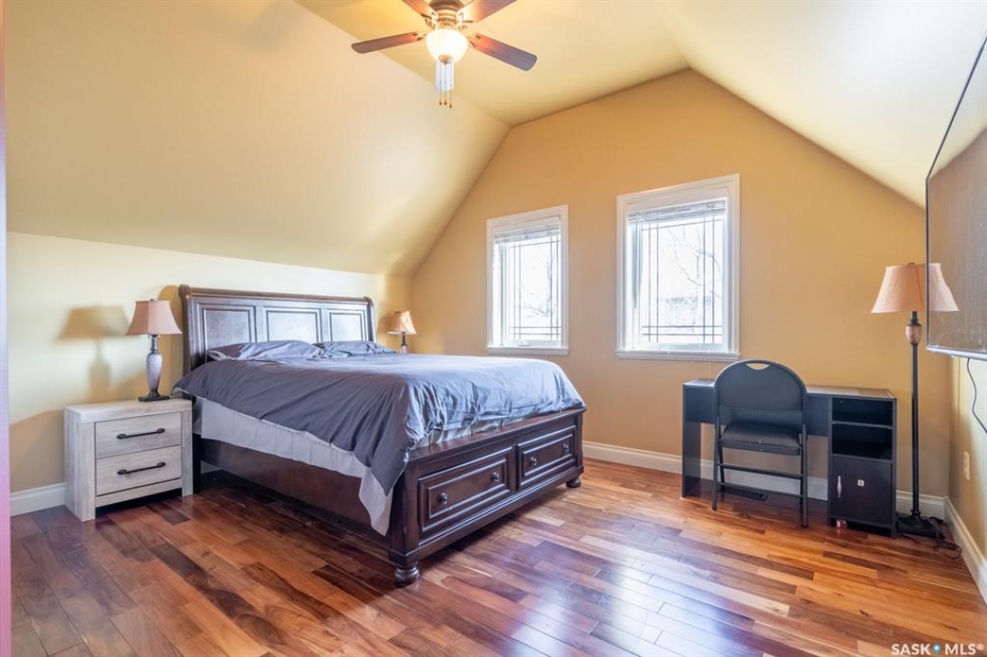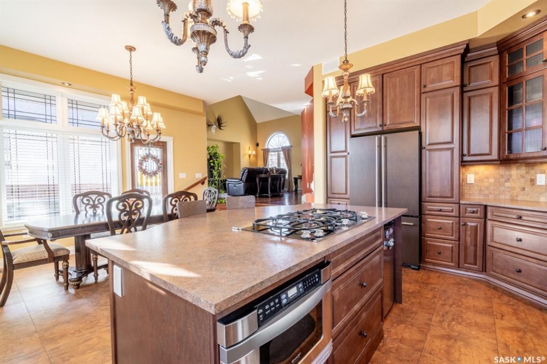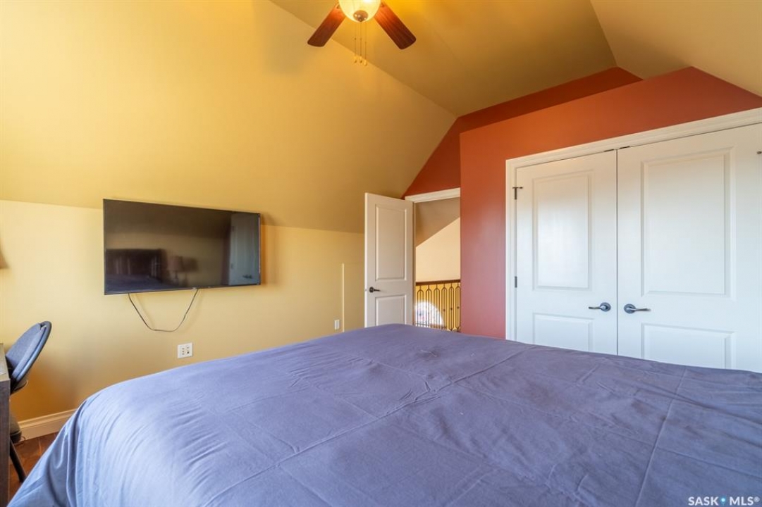 Built on piles, this exquisite custom-built home by Award Homes combines superior construction with high-end design. The home showcases unique high-pitch ceilings, premium walnut flooring across the upper levels, and an efficient 4-zone heating system. An entertainer's dream, the gourmet kitchen and dining area feature ample maple cabinetry, a massive island, top-tier bronze Jenn-Air appliances including a 5-burner gas cooktop and double wall ovens, and a stunning 2-way indoor/outdoor gas fireplace that seamlessly connects the space to the backyard. The main floor offers incredible versatility with a bright living room and a spacious bedroom, ideal for an in-law suite or office. The main floor bedroom features yard access and direct entry to a 4-piece bathroom with a jet tub and separate shower. Upstairs, the private primary bedroom is thoughtfully separated over the garage, boasting a walk-in closet and a luxurious 5-piece ensuite with a clawfoot tub, alongside two additional spacious bedrooms, a loft area, a 4-piece bath, and a dedicated laundry room. The fully developed basement provides a large family/games room accented by an electric fireplace, a fifth bedroom perfect for guests, a 4-piece bathroom, and extensive storage space. Outside, the professionally landscaped and fully fenced backyard oasis features a tile-covered deck, dual exposed aggregate patios, and a striking stacked-stone privacy wall complete with a waterfall. Completing this exceptional home is a premium 24' x 24' double-attached garage that is fully heated, insulated, and drywalled.