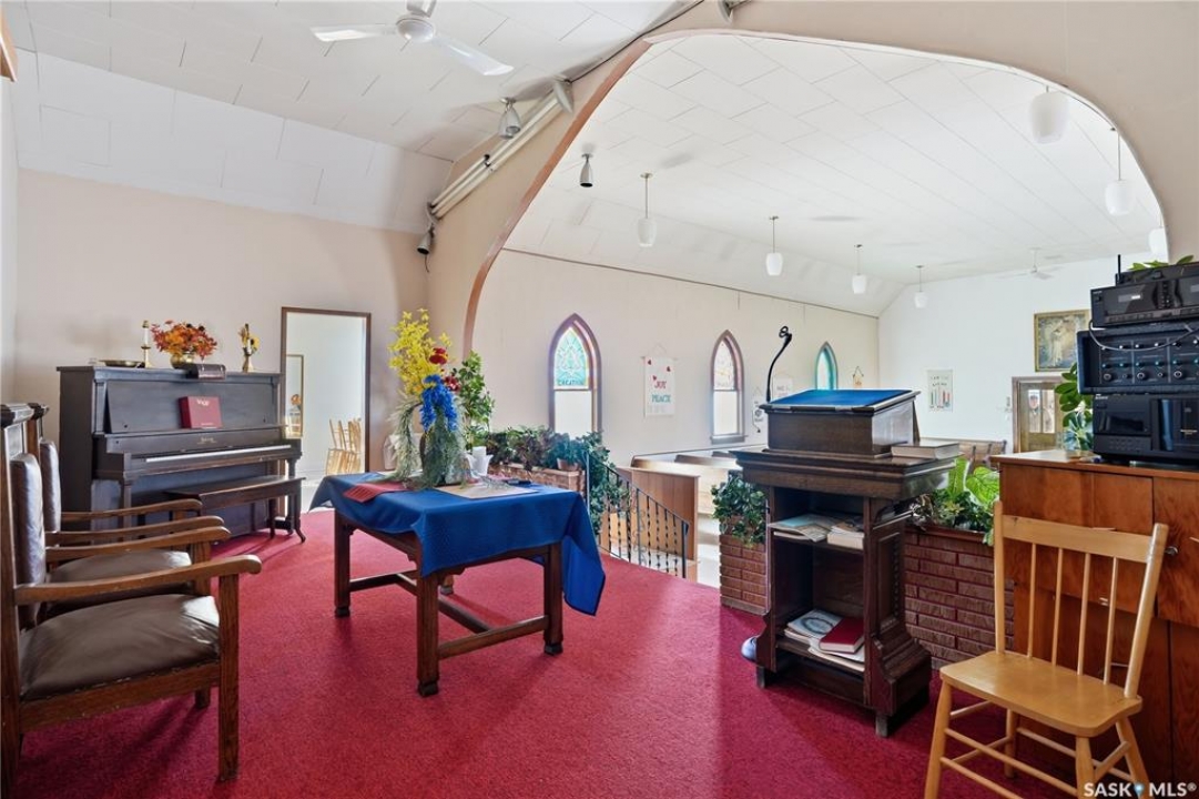 Unique opportunity here! This well maintained Church is located in the bustling town of Central Butte. Situated on a large corner lot with lots of parking and across the street from the school. Pride of ownership shows throughout as the facility has been well maintained. Heading inside we find a foyer / coat room with the first set of stairs to the basement. Next we find the main sanctuary with hardwood floors, vaulted ceilings and stained glass windows - the possibilities are endless for this space. Off the stage we find an office space with access to the side yard and to the basement. Downstairs we find a large open space as well as an office, a kitchen and 2 bathrooms. Whether you are looking for a Church, a commercial space or a beautiful building to convert into a custom home. Opportunities like this don't come along very often. Reach out today to book your viewing!