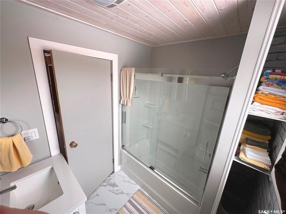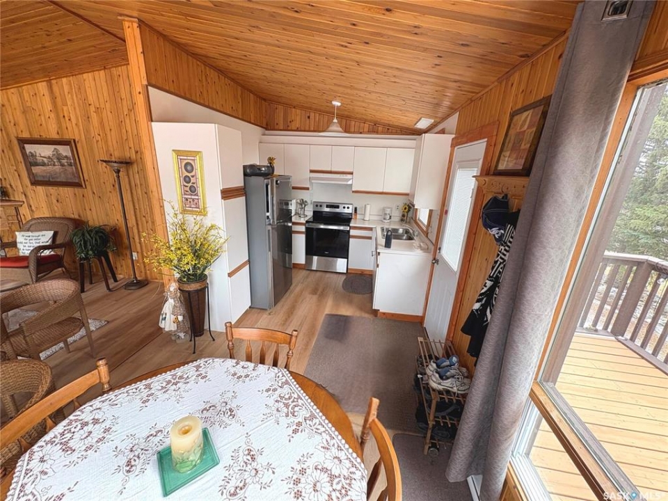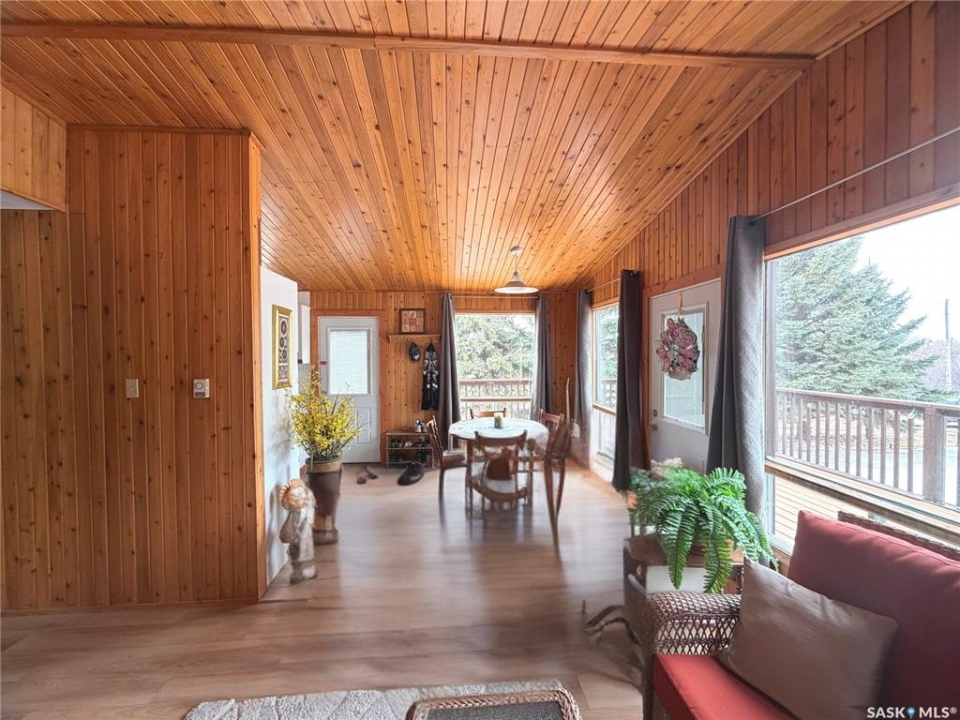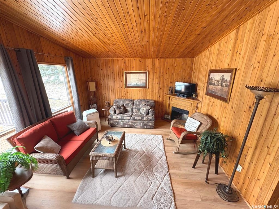 Welcome to 517 Demaer Way in Katepwa Beach, a charming year-round getaway offering 912 sq. ft. of comfortable living space. This 3-bedroom, 1-bathroom home features upgraded flooring and stunning vaulted cedar ceilings. Nestled in a private setting on a spacious double lot—each with its own well—this property offers both space and flexibility. Ideally located right off the Trans Canada Trail and just steps from Breese Park, you'll enjoy access to a dog park, splash park, pickle-ball courts, playground, and skating rink. Plus, you're only minutes from the golf courses and Katepwa's main beach, making this the perfect spot for year-round living or a relaxing retreat.