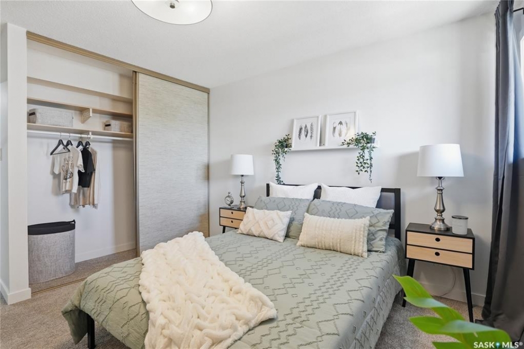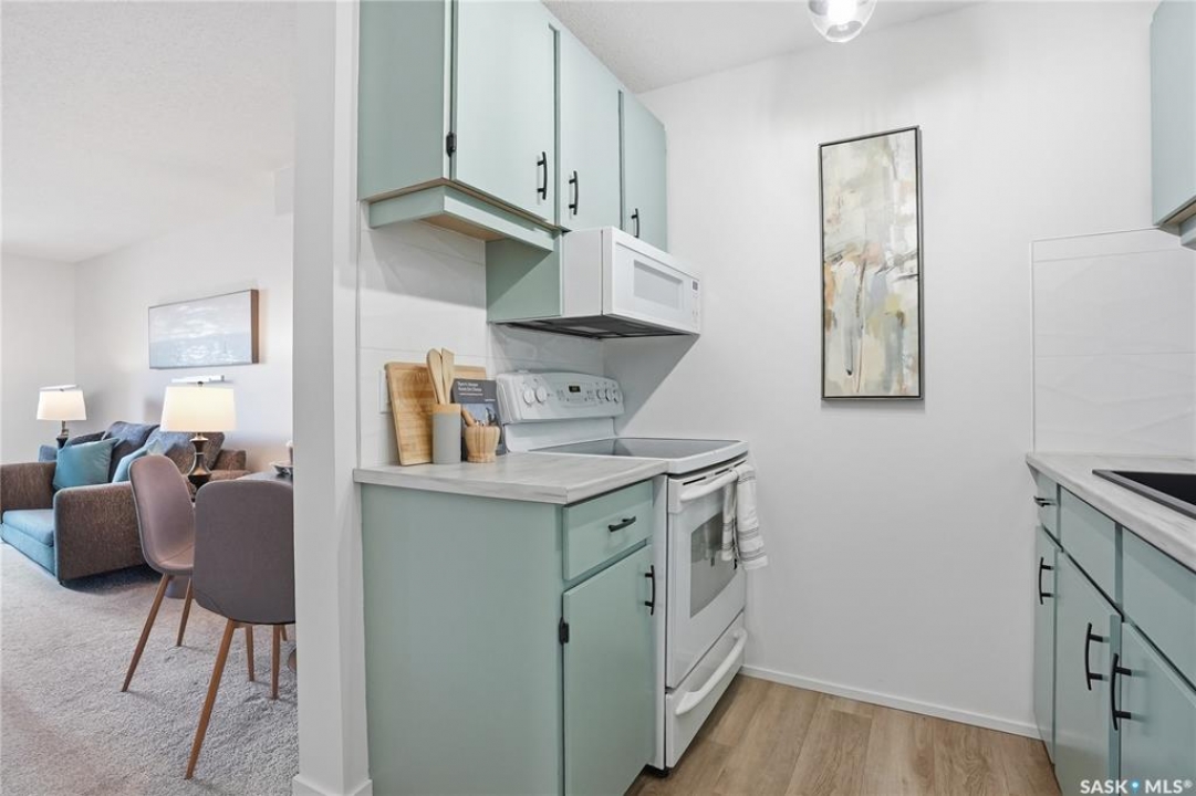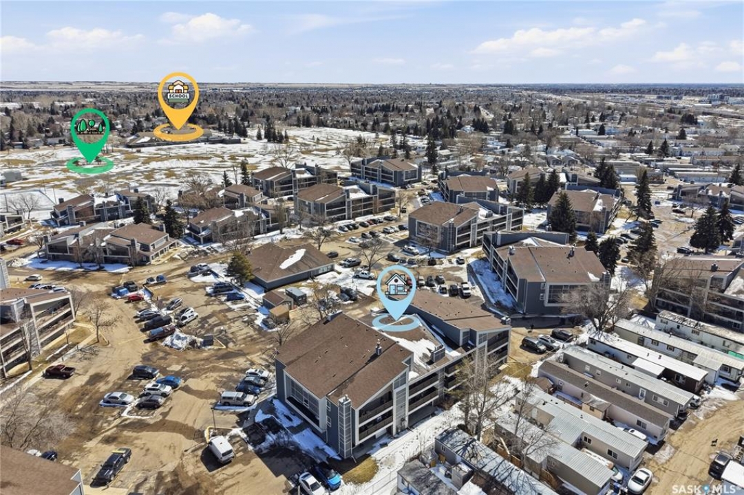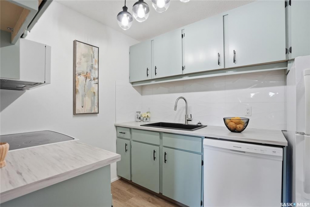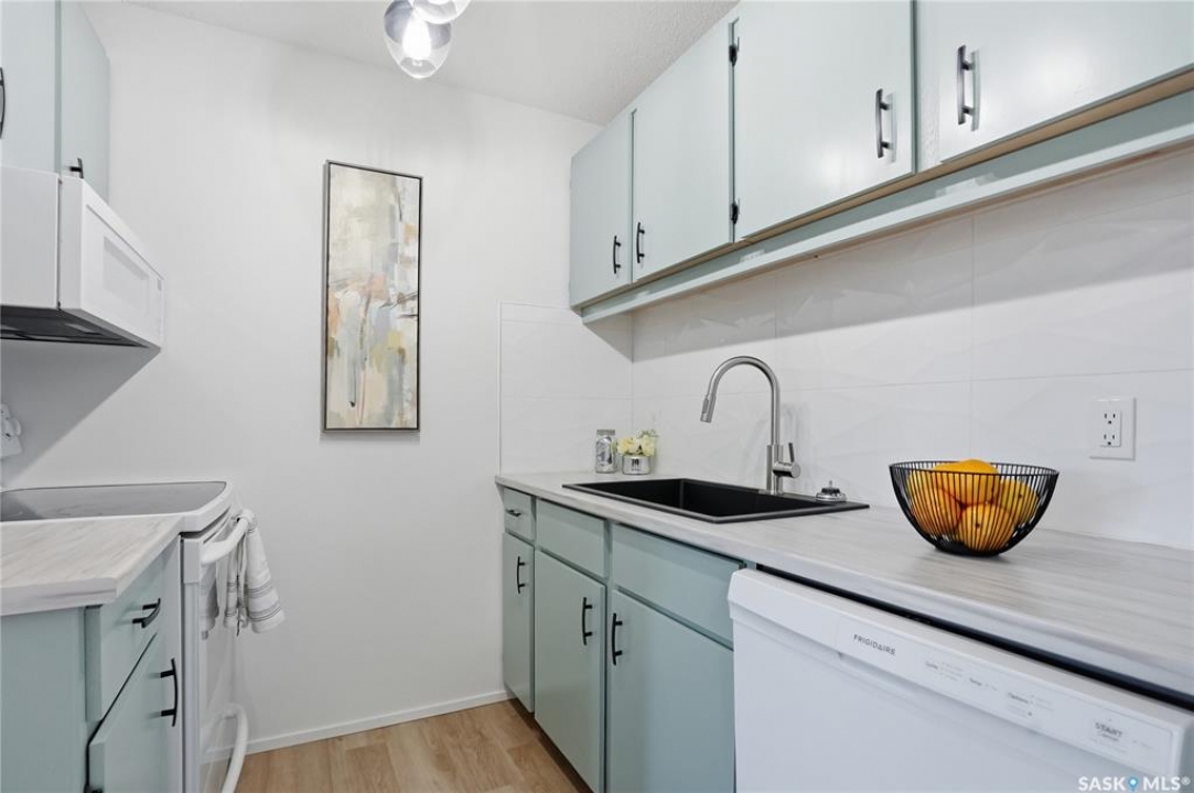 Welcome to this bright and beautifully updated move-in ready 1-bed 1-Bath condo in Forest Grove. This east facing unit invites you in with its functional layout, perfect for first time home buyers, students, downsizers, and more! It features a large bedroom, spacious and bright living room with dining area that opens to the balcony with storage room, gorgeous kitchen with tiled backsplash and fresh color, 4-pc bathroom with tiled floor and tub surround, and large laundry/storage room with built in shelving for all your storage needs. One electrified surface parking stall is included with the unit located in front of the building for ease of access, with visitor parking very close as well. There is a recreation centre located directly across from this building that offers a pool and ping pong table, various exercise equipment, and sports court. Conveniently located nears parks, shopping and amenities, transit, and the University of Saskatchewan. Don't miss your opportunity to own this beautifully updated, move-in-ready condo! Book your showing today!