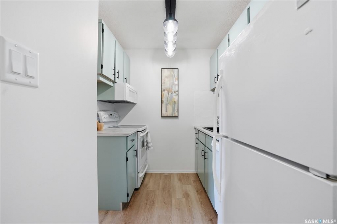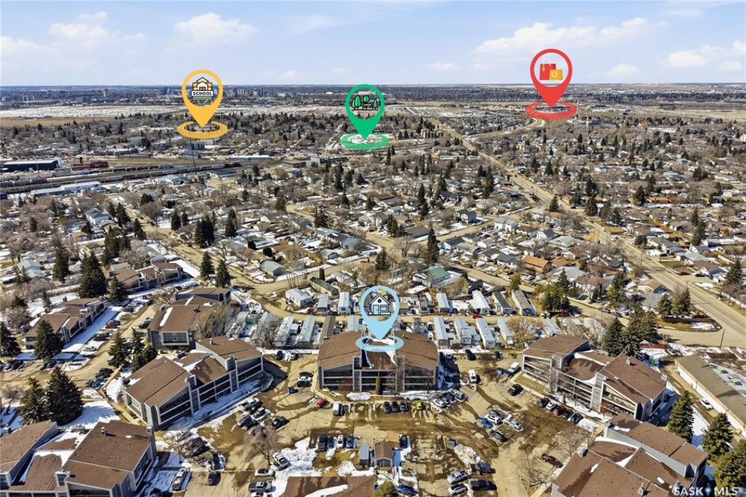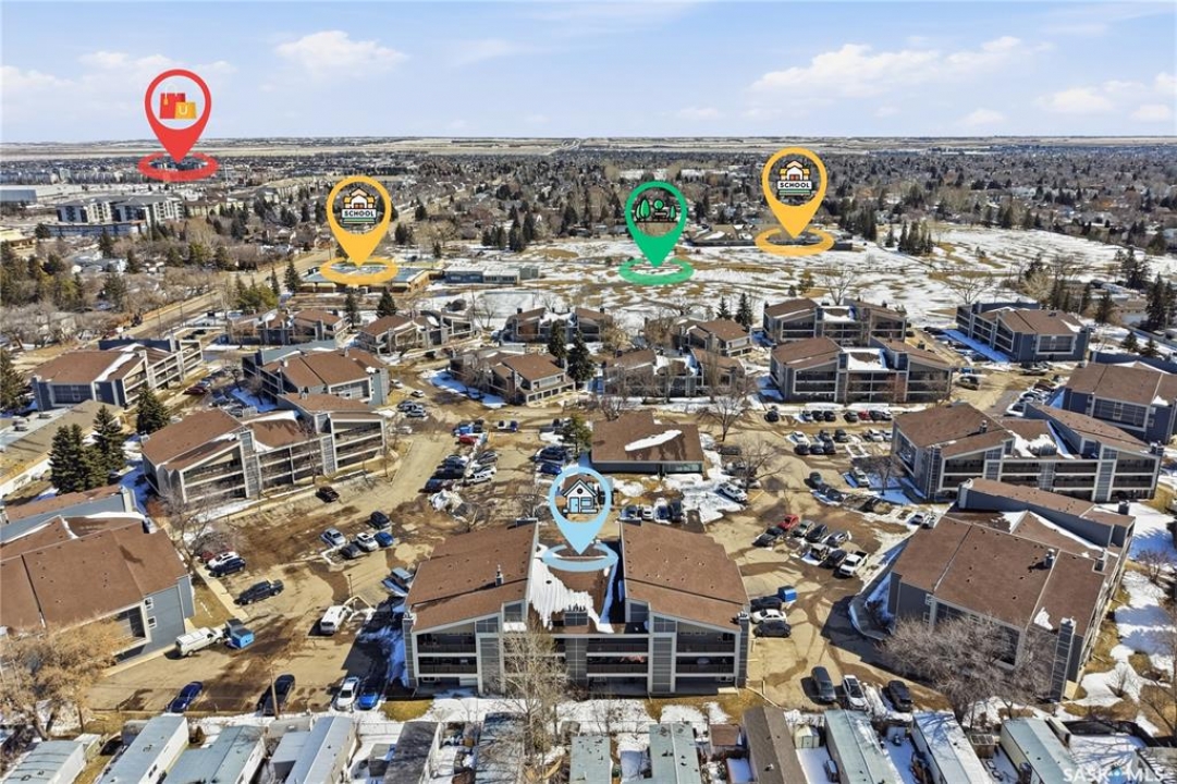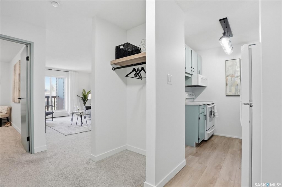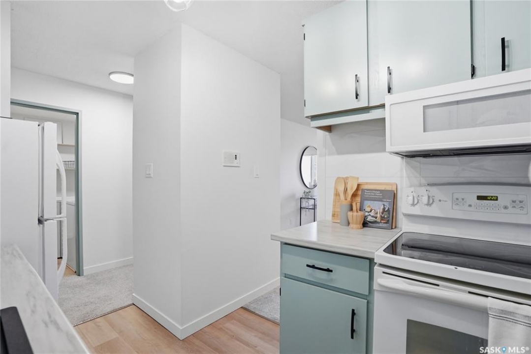 Welcome to this bright and beautifully updated move-in ready 1-bed 1-Bath condo in Forest Grove. This east facing unit invites you in with its functional layout, perfect for first time home buyers, students, downsizers, and more! It features a large bedroom, spacious and bright living room with dining area that opens to the balcony with storage room, gorgeous kitchen with tiled backsplash and fresh color, 4-pc bathroom with tiled floor and tub surround, and large laundry/storage room with built in shelving for all your storage needs. One electrified surface parking stall is included with the unit located in front of the building for ease of access, with visitor parking very close as well. There is a recreation centre located directly across from this building that offers a pool and ping pong table, various exercise equipment, and sports court. Conveniently located nears parks, shopping and amenities, transit, and the University of Saskatchewan. Don't miss your opportunity to own this beautifully updated, move-in-ready condo! Book your showing today!