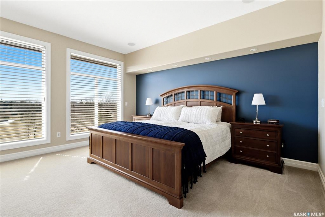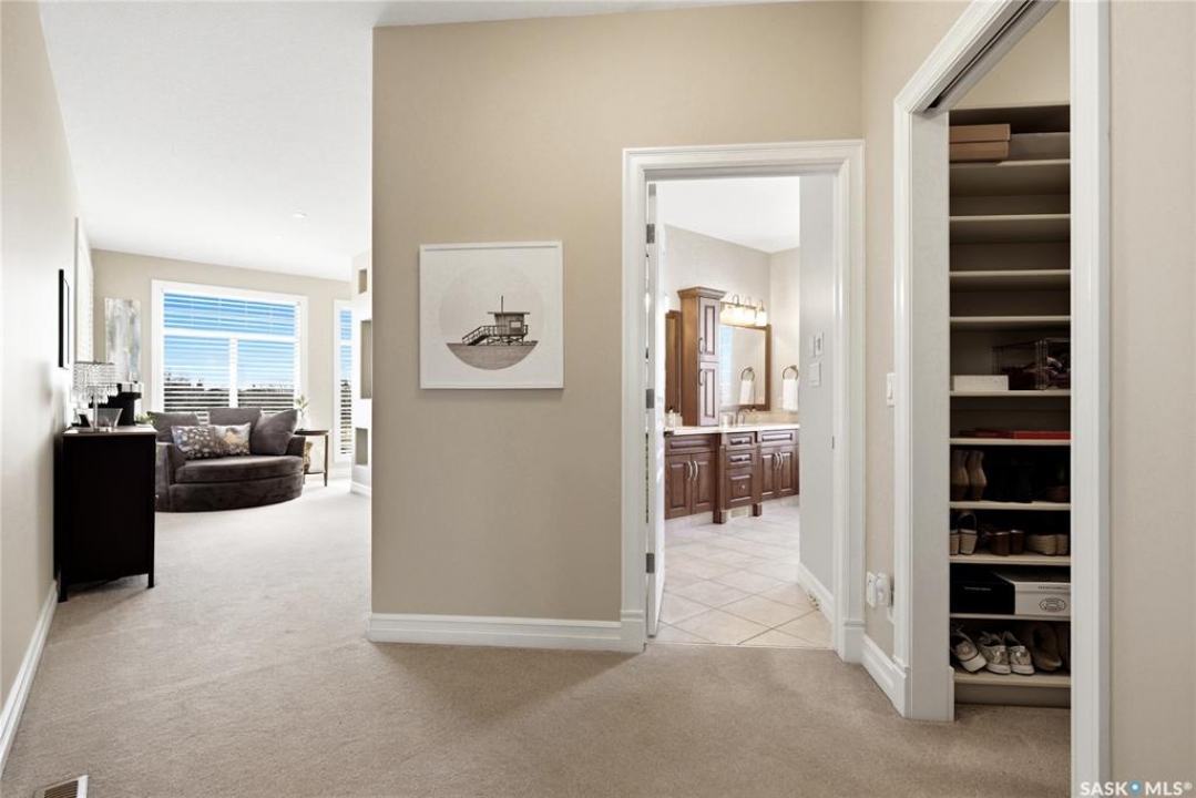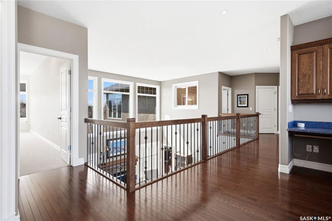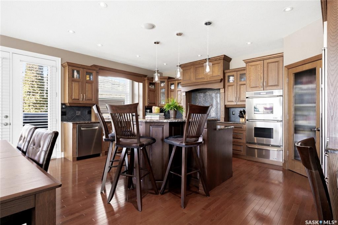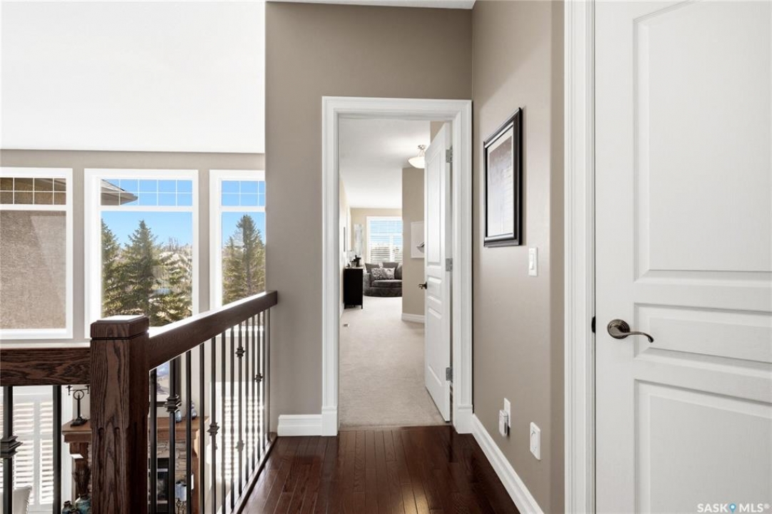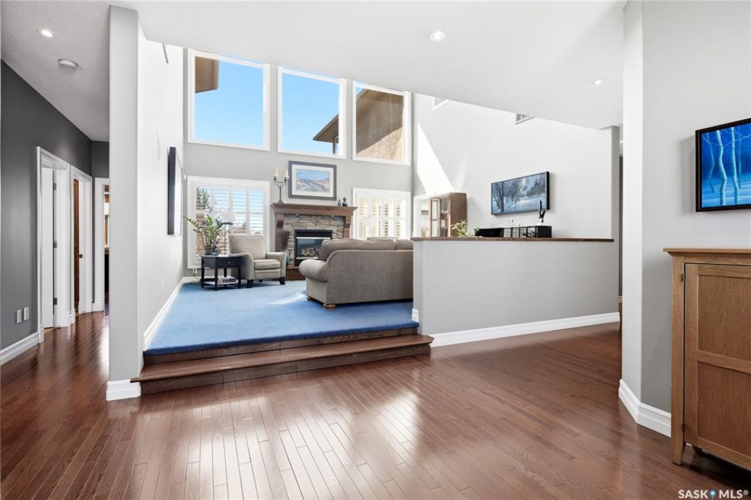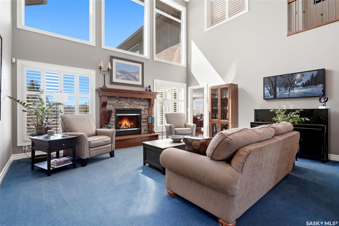 Original-owner custom Munro Homes walkout backing greenspace, walking paths & offering beautiful lake views. This fully developed home showcases quality craftsmanship throughout with hardwood flooring, soaring ceilings & large windows that fill the space with natural light. Triple attached garage & triple-wide driveway provide ample parking & storage. The main floor features a bright great room with gas fireplace & access to a deck with glass railing—perfect for enjoying sunsets. The kitchen offers granite countertops, custom cabinetry, corner pantry & high-end appliances, and flows into a spacious dining area with access to a side deck with BBQ hookup. Main floor also includes a bedroom, full bath, dedicated office & functional mudroom with built-ins, sink & additional storage. Upstairs you'll find a spacious primary suite with sitting area, large dressing area & ensuite with dual sinks, soaker tub & separate shower. Three additional bedrooms each include walk-in closets & private ensuites. Convenient upper-level laundry & built-in workspace complete this level. The walkout basement with in-floor heat is ideal for entertaining, featuring a theatre room, games room with wet bar & patio access to the backyard with hot tub. A standout feature is the indoor pool area with cedar finishes, tile surround & dedicated ventilation system, creating a private year-round retreat. Fully landscaped yard with underground sprinklers, multiple patio spaces, mature trees, shrubs, and direct access to the pathway system and lake. Additional features include in-floor heating, multiple furnaces & A/C units, HRV systems, and extensive built-in storage throughout. Exceptional location, space & design—ideal for family living, entertaining, and multi-generational living.