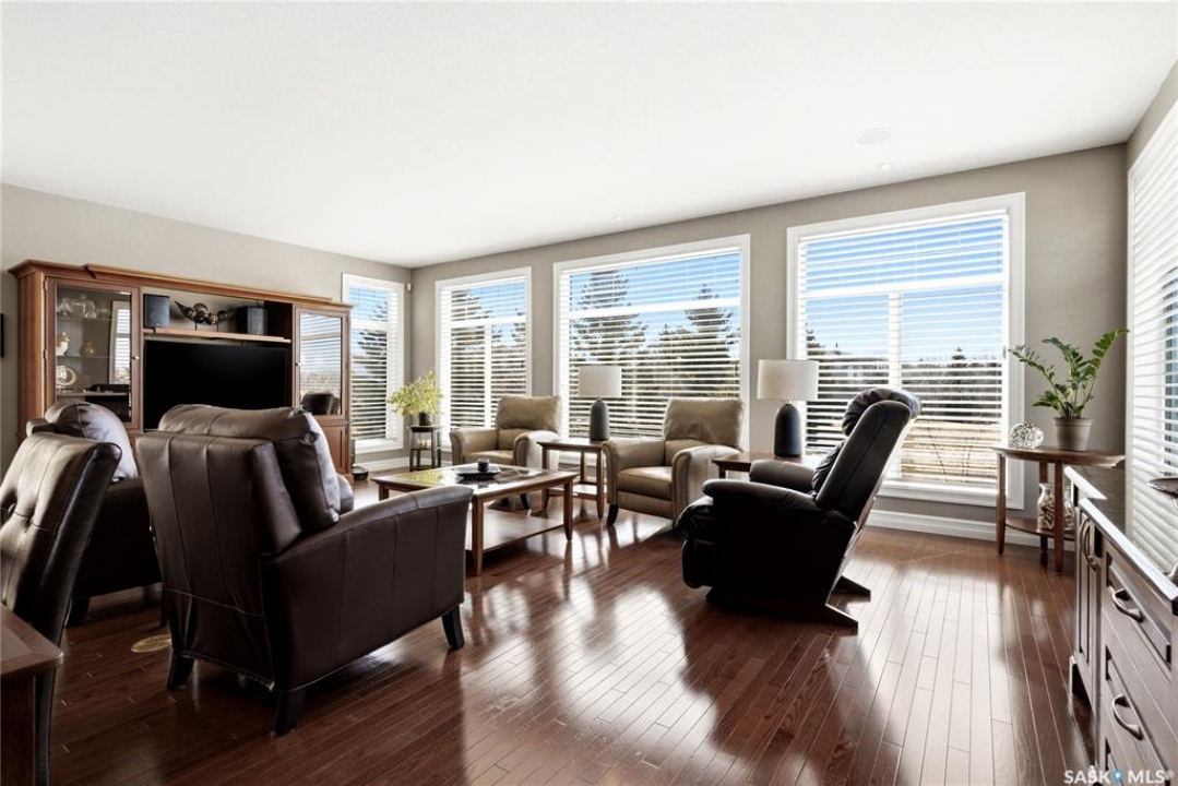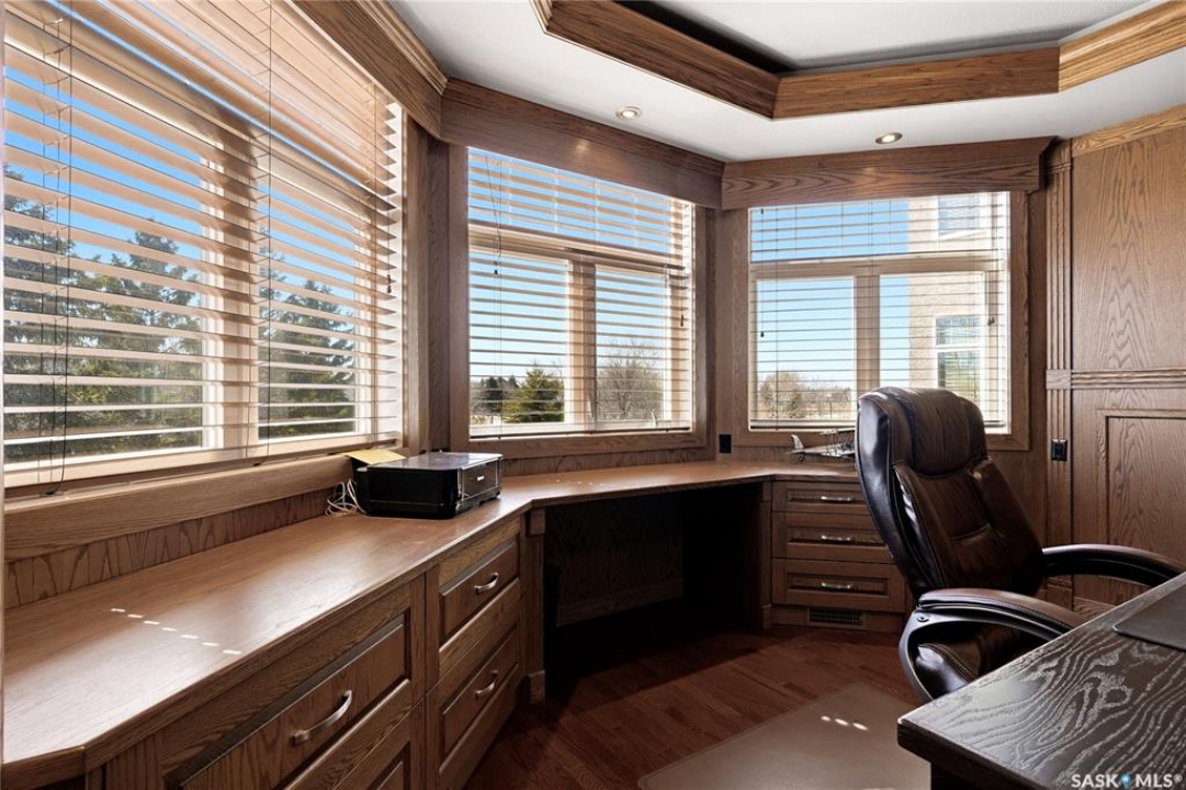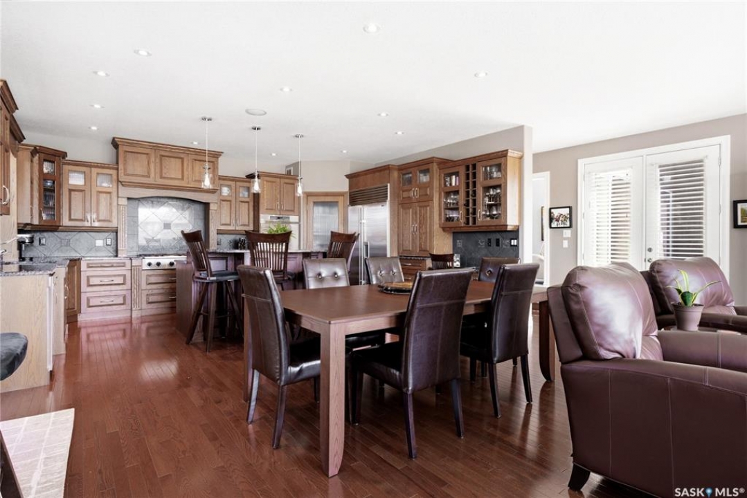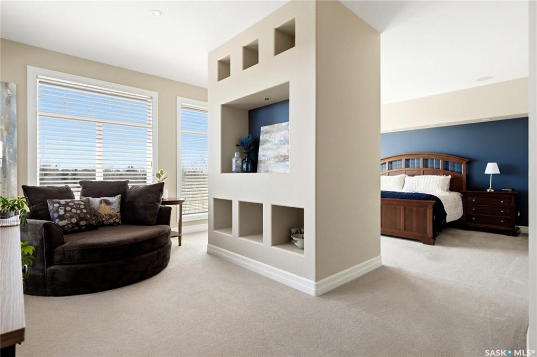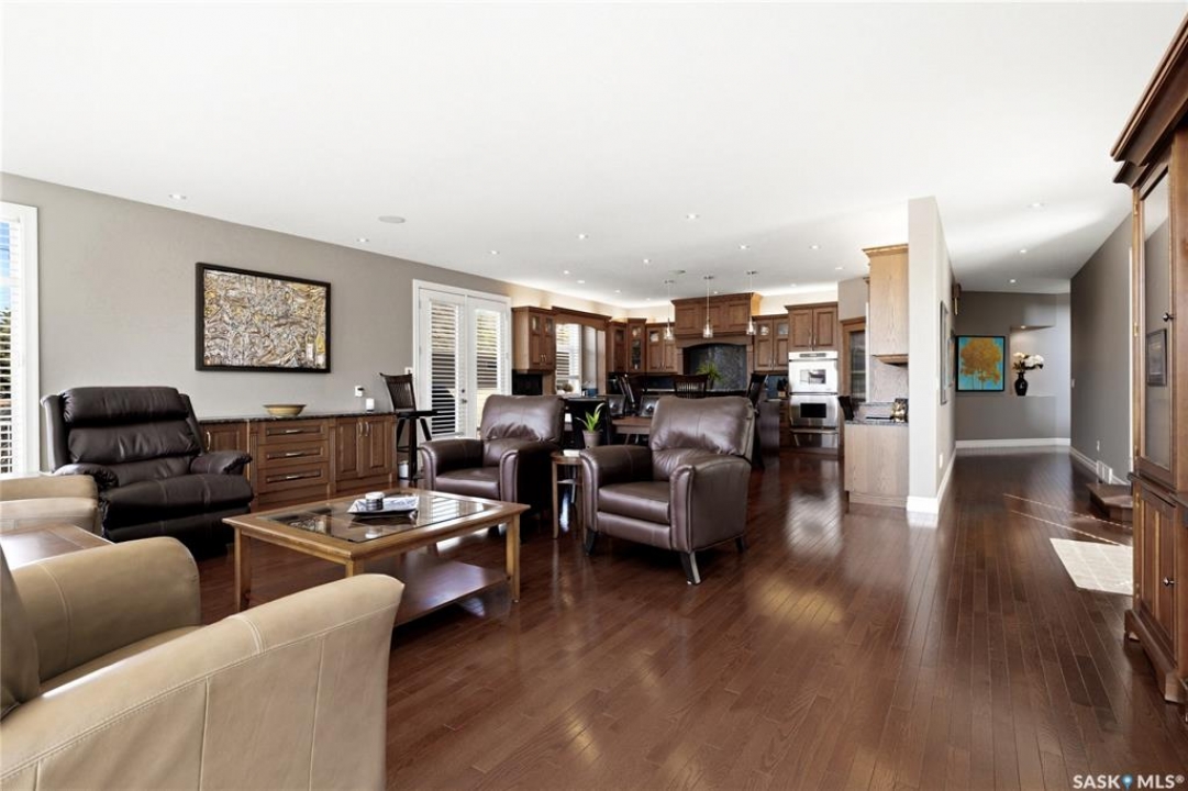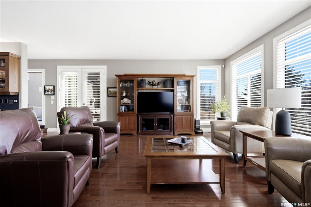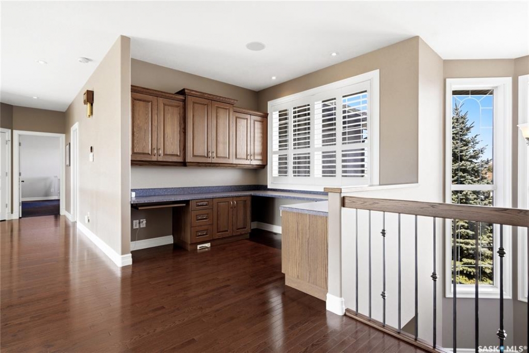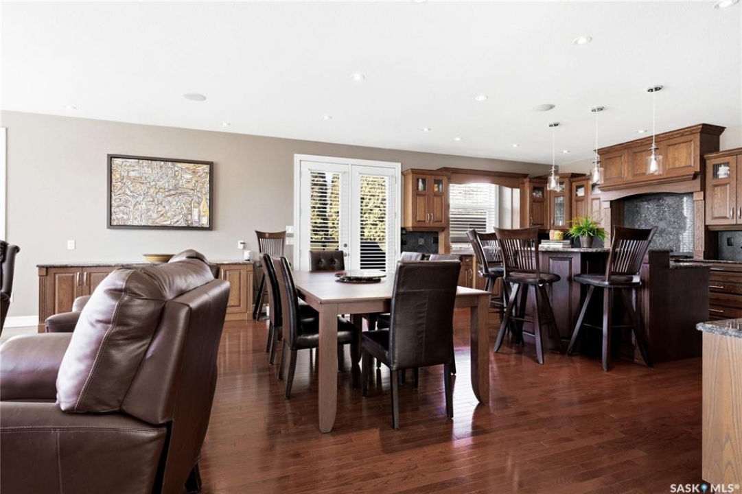 Original-owner custom Munro Homes walkout backing greenspace, walking paths & offering beautiful lake views. This fully developed home showcases quality craftsmanship throughout with hardwood flooring, soaring ceilings & large windows that fill the space with natural light. Triple attached garage & triple-wide driveway provide ample parking & storage. The main floor features a bright great room with gas fireplace & access to a deck with glass railing—perfect for enjoying sunsets. The kitchen offers granite countertops, custom cabinetry, corner pantry & high-end appliances, and flows into a spacious dining area with access to a side deck with BBQ hookup. Main floor also includes a bedroom, full bath, dedicated office & functional mudroom with built-ins, sink & additional storage. Upstairs you'll find a spacious primary suite with sitting area, large dressing area & ensuite with dual sinks, soaker tub & separate shower. Three additional bedrooms each include walk-in closets & private ensuites. Convenient upper-level laundry & built-in workspace complete this level. The walkout basement with in-floor heat is ideal for entertaining, featuring a theatre room, games room with wet bar & patio access to the backyard with hot tub. A standout feature is the indoor pool area with cedar finishes, tile surround & dedicated ventilation system, creating a private year-round retreat. Fully landscaped yard with underground sprinklers, multiple patio spaces, mature trees, shrubs, and direct access to the pathway system and lake. Additional features include in-floor heating, multiple furnaces & A/C units, HRV systems, and extensive built-in storage throughout. Exceptional location, space & design—ideal for family living, entertaining, and multi-generational living.