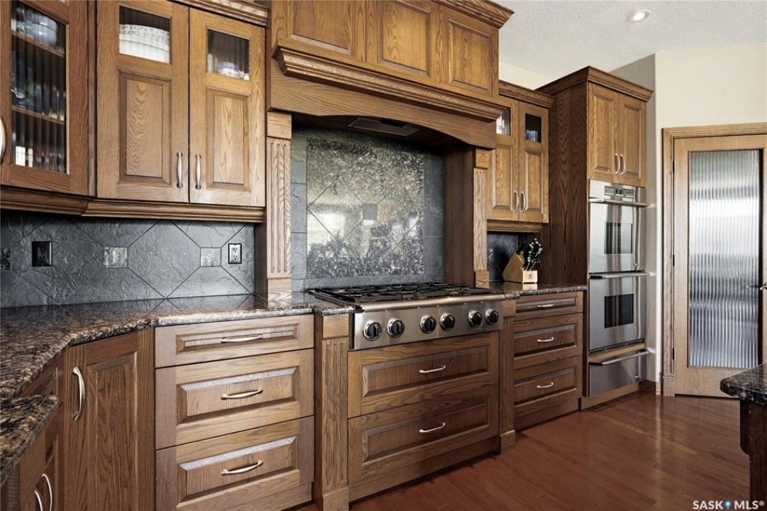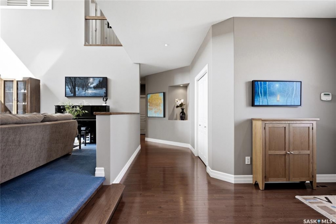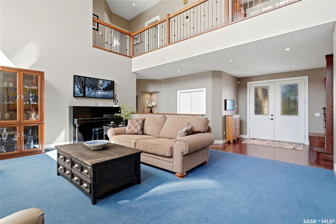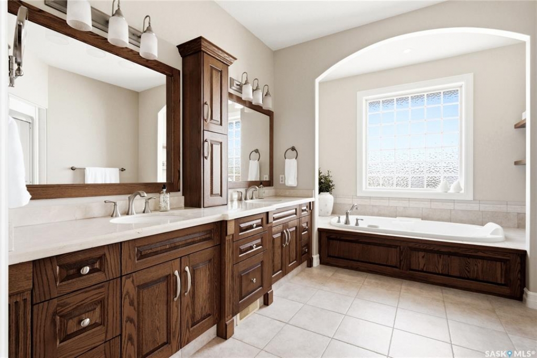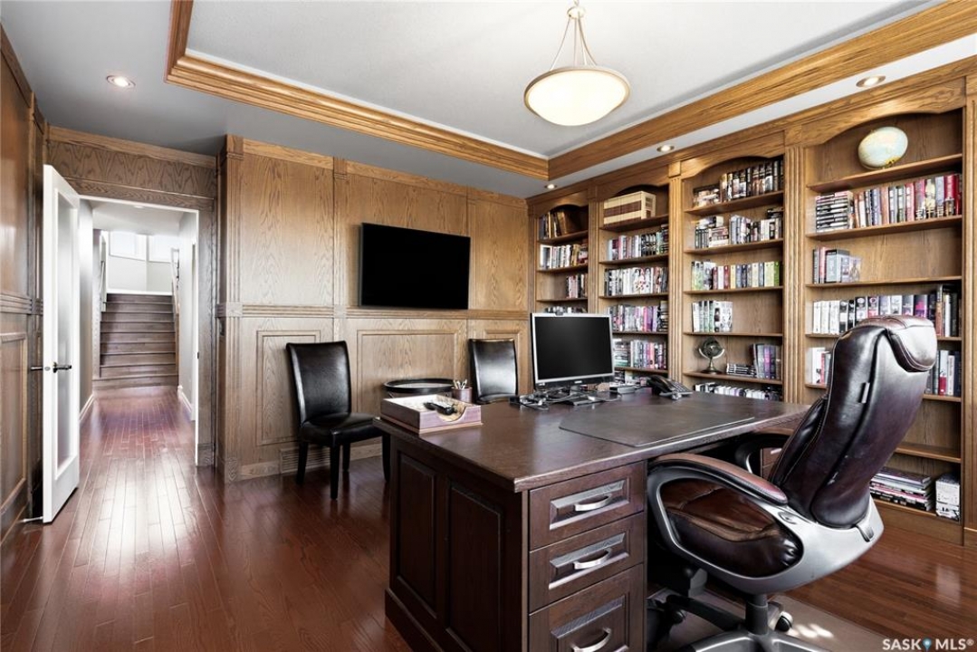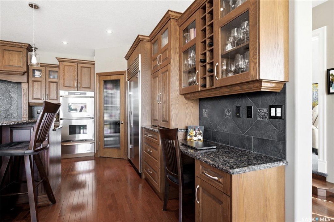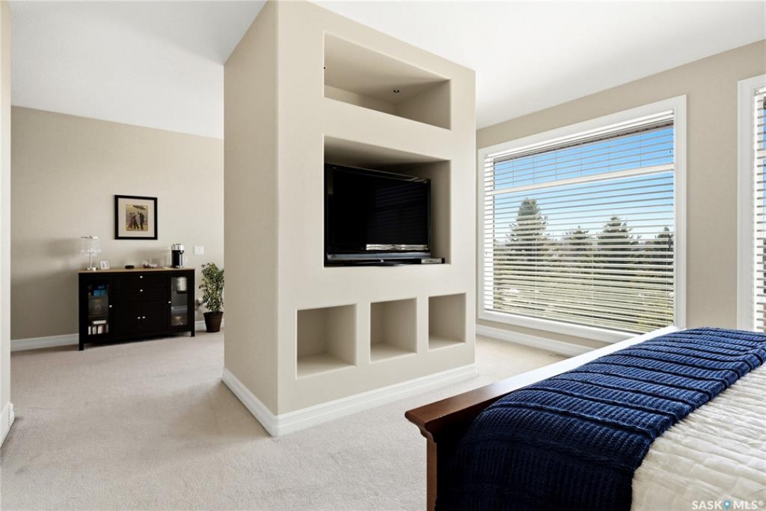 Original-owner custom Munro Homes walkout backing greenspace, walking paths & offering beautiful lake views. This fully developed home showcases quality craftsmanship throughout with hardwood flooring, soaring ceilings & large windows that fill the space with natural light. Triple attached garage & triple-wide driveway provide ample parking & storage. The main floor features a bright great room with gas fireplace & access to a deck with glass railing—perfect for enjoying sunsets. The kitchen offers granite countertops, custom cabinetry, corner pantry & high-end appliances, and flows into a spacious dining area with access to a side deck with BBQ hookup. Main floor also includes a bedroom, full bath, dedicated office & functional mudroom with built-ins, sink & additional storage. Upstairs you'll find a spacious primary suite with sitting area, large dressing area & ensuite with dual sinks, soaker tub & separate shower. Three additional bedrooms each include walk-in closets & private ensuites. Convenient upper-level laundry & built-in workspace complete this level. The walkout basement with in-floor heat is ideal for entertaining, featuring a theatre room, games room with wet bar & patio access to the backyard with hot tub. A standout feature is the indoor pool area with cedar finishes, tile surround & dedicated ventilation system, creating a private year-round retreat. Fully landscaped yard with underground sprinklers, multiple patio spaces, mature trees, shrubs, and direct access to the pathway system and lake. Additional features include in-floor heating, multiple furnaces & A/C units, HRV systems, and extensive built-in storage throughout. Exceptional location, space & design—ideal for family living, entertaining, and multi-generational living.