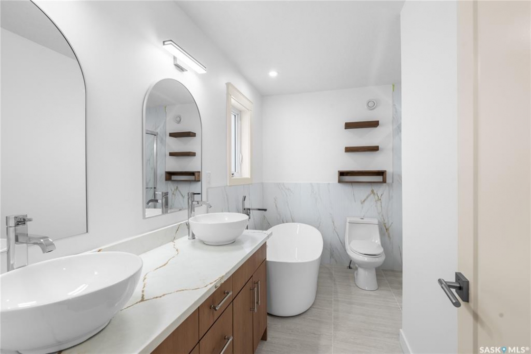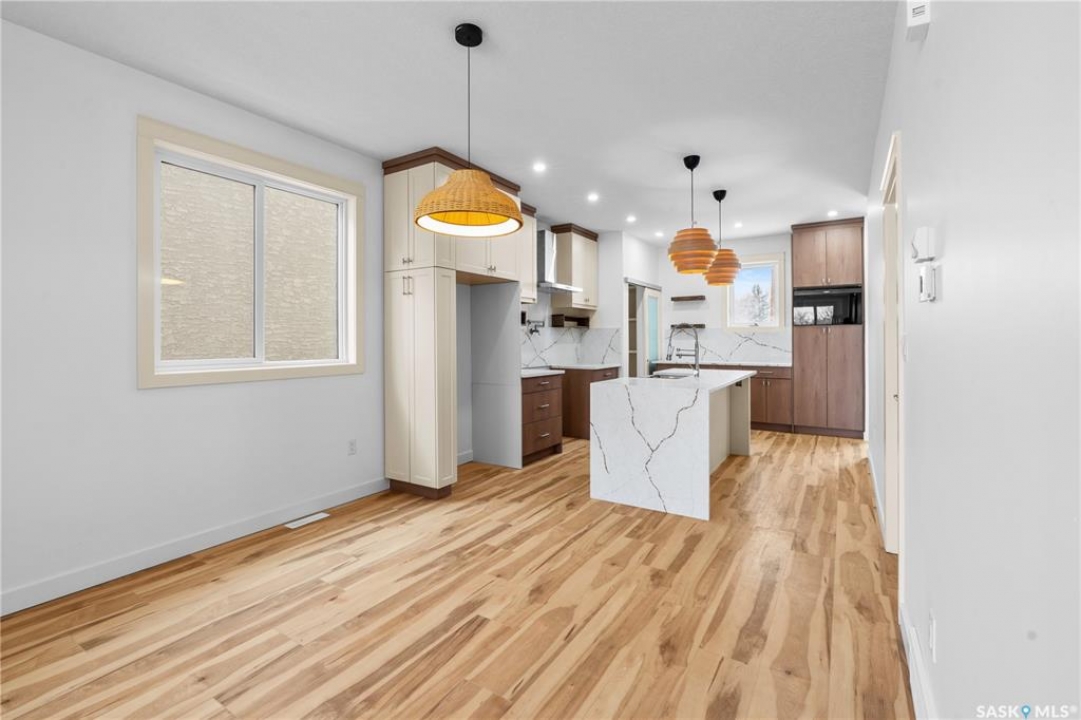 Modern Infill in North Park – Legal Suite & Prime Location! Welcome to 424 Empress Street—a beautifully designed new infill in the heart of North Park, one of Saskatoon's most desirable walkable neighborhoods. This 2-storey home offers over 1600 sqft of thoughtfully planned living space. The exterior showcases a bold modern design featuring durable Hardie board siding, sleek metal cladding, and clean architectural lines that stand out on this quiet street. Inside, you're greeted with an open-concept main floor that boasts 9' ceilings, a cozy fireplace, spacious living and dining areas, and a stunning kitchen with full-height cabinets, pantry, and dedicated office space. Flooded with natural light from oversized windows throughout, this home feels bright, airy, and inviting in every season. Upstairs on the 2nd floor, you'll find 3 bedrooms including a vaulted-ceiling primary suite with walk-in closet and ensuite, plus a full bath and convenient laundry. The fully finished basement features a legal 2-bedroom suite with its own entrance, kitchen, laundry, and living area—perfect for rental income or extended family. Located just minutes from the river, Meewasin Trail, and downtown with no neighbour at the back. Don't miss this opportunity to own a stylish, income-generating home in a mature, central neighborhood. Contact your favourite REALTOR � for more details!