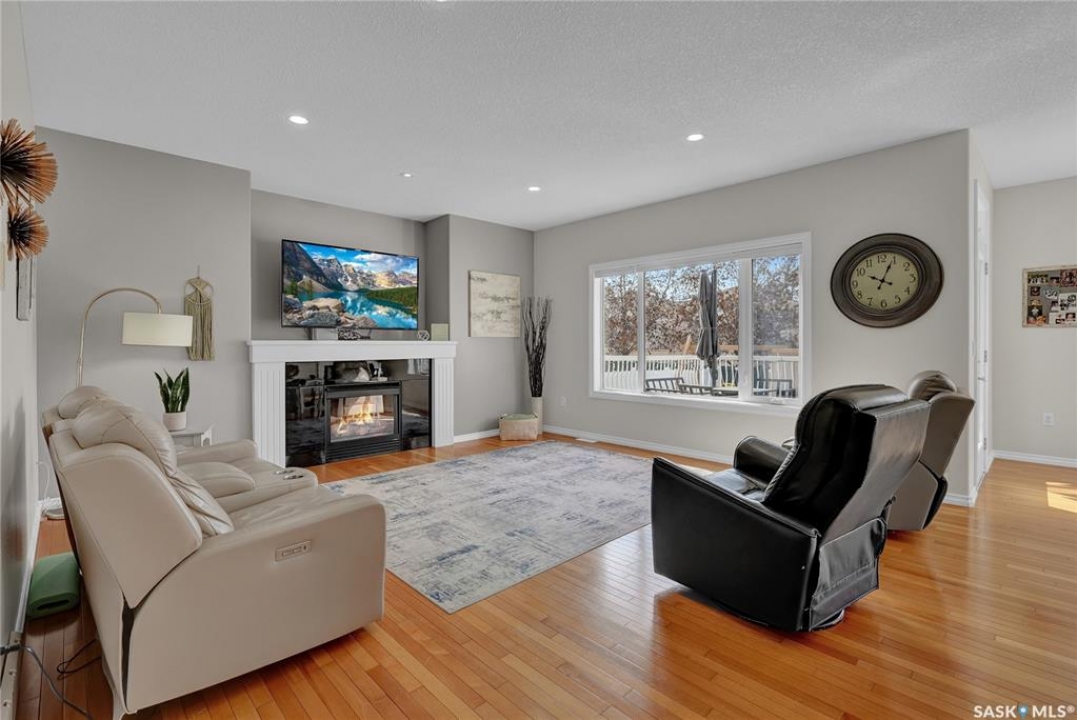 Excellently maintained home in sought-after Windsor Park offering a bright, open-concept layout and exceptional family living. A spacious front foyer welcomes you into the oversized great room, highlighted by rich hardwood flooring and a cozy gas fireplace. The stunning kitchen features an abundance of cabinetry, HW floors, quartz countertops, a large centre island, and stainless-steel appliances—perfect for both everyday living and entertaining. The family-sized eating area overlooks the deck and beautifully landscaped backyard. A main floor den/office with hardwood flooring provides a great workspace, while a convenient laundry room and separate half bath complete the level. Upstairs, you'll find three generously sized bedrooms with new carpets and a full bathroom. The primary suite includes a walk-in closet and a luxurious ensuite with a large soaker tub and separate walk-in shower with rain head. New carpets on staircase to upper floor. The fully developed basement adds even more living space with a spacious rec room, two additional bedrooms, and a � bathroom—ideal for guests or a growing family. The nicely landscaped yard completes this fantastic property. A truly wonderful place to call home!