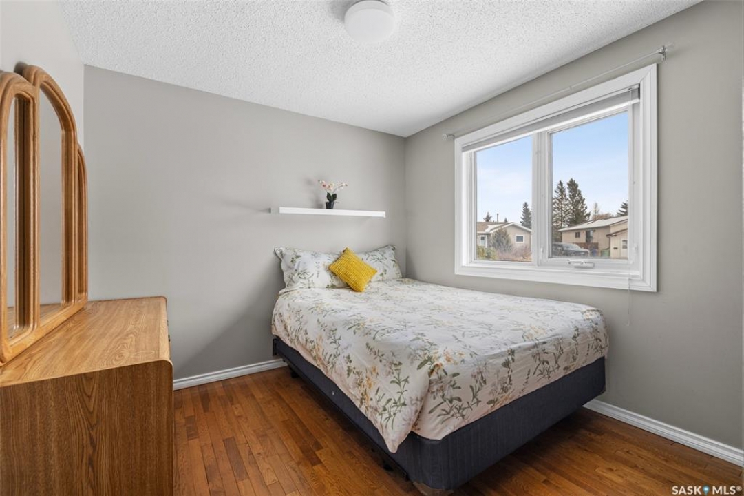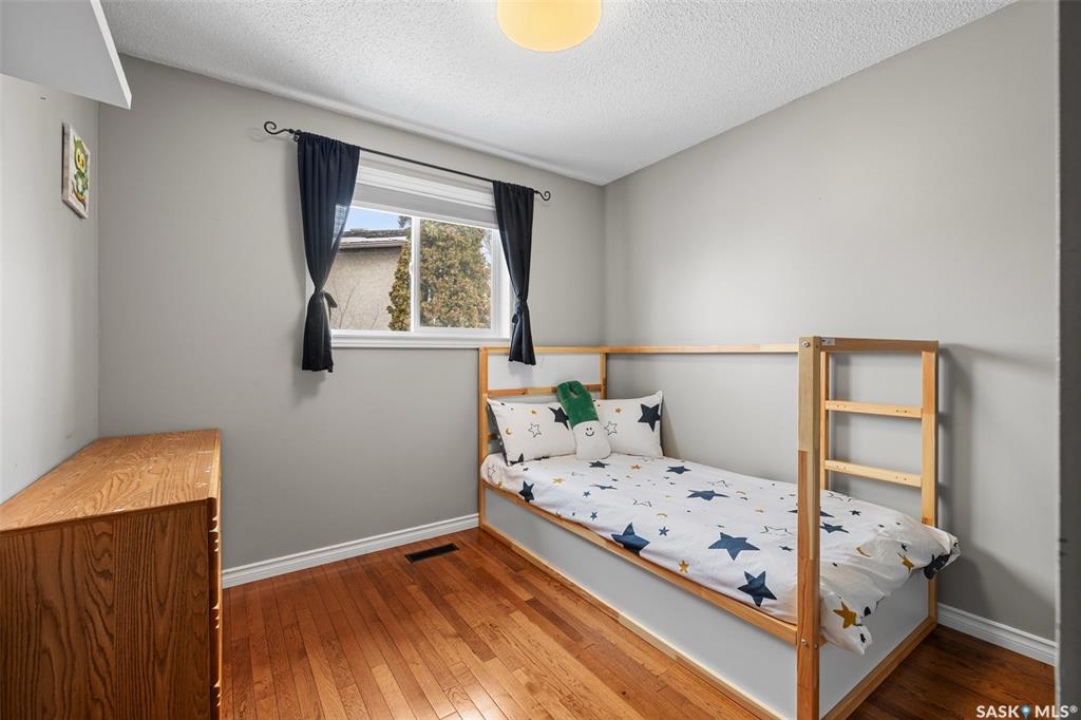 Welcome to 918 East Bay—tucked away on a quiet bay in Regina's east end, offering a great balance of comfort, updates, and location. Walking distance to parks, schools, and amenities, this is a home designed for everyday convenience. Inside, this 4-bedroom, 3-bathroom home features hardwood flooring throughout the main level, upgraded windows, and a bright, functional layout. The kitchen has been updated with modern countertops, backsplash, and sink, and opens into the living space enhanced by added downlighting. The main floor includes three bedrooms, including a primary suite with a private 2-piece ensuite, plus a full bathroom. Downstairs, the fully finished basement offers a fourth bedroom, additional living space, and a dedicated bar area—perfect for relaxing, entertaining, or a kids' zone. A basement play structure is included if desired. Key updates include shingles, siding, and stone exterior (2016), high-efficiency furnace (2018), water heater (2020, rented), and a series of appliance and lighting updates through to 2026. The exterior features a large deck, underground sprinklers, and a generous driveway with parking for four vehicles and space for a future garage.