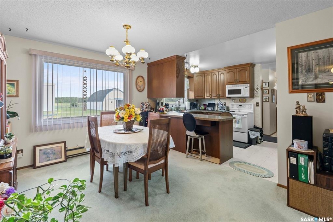 Discover 55.92 acres of opportunity on pavement just minutes from Saskatoon. This well-located property offers an excellent setup for a hobby farm, ideally suited for small livestock such as sheep or goats, with fenced and cross-fenced pasture and watering bowls already in place. The yard site is well-equipped with a massive 40' x 66' Quonset with concrete floor, multiple outbuildings, and established shelters to support a variety of agricultural uses. Functional and versatile, it's ready to accommodate your operation from day one. The solid 1,617 sq ft bungalow, built in 1973, offers generous living space and has seen key updates including siding, windows, and roof providing added efficiency and curb appeal. Nestled among mature trees with expansive prairie views, it's a comfortable and inviting place to call home. With pavement right to the driveway and close proximity to city amenities, this property delivers the perfect balance of rural living and convenience. A rare opportunity to own a well-appointed acreage in a highly desirable location.