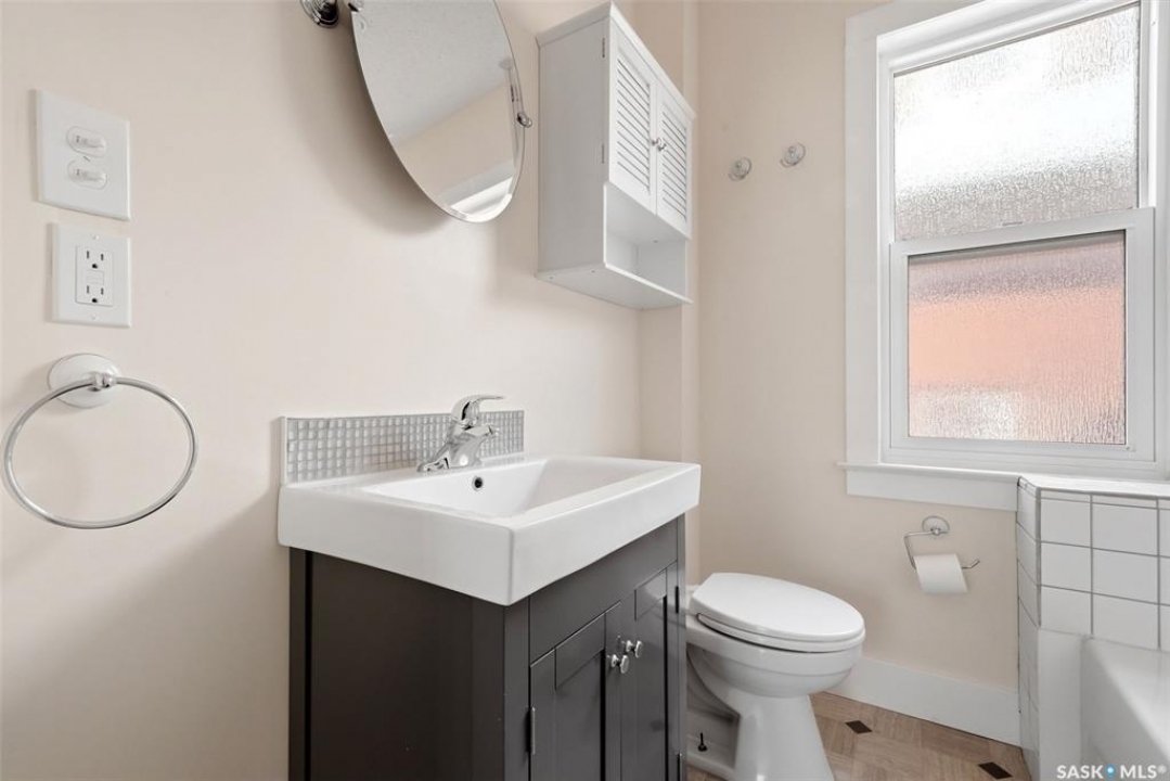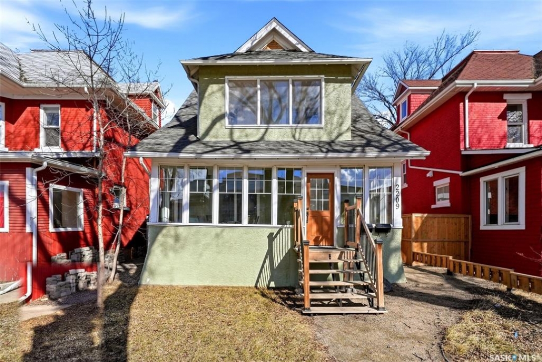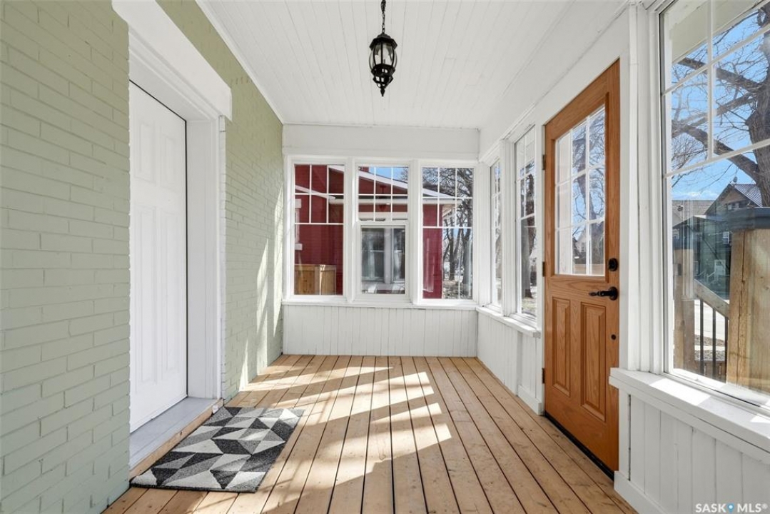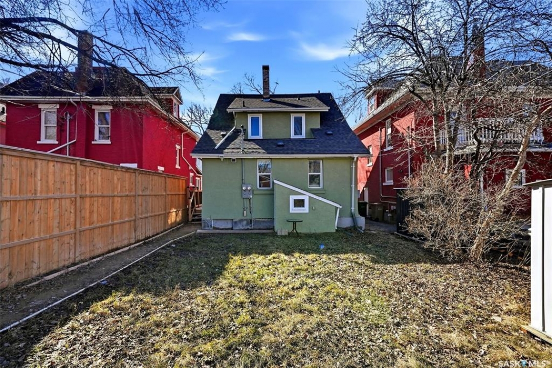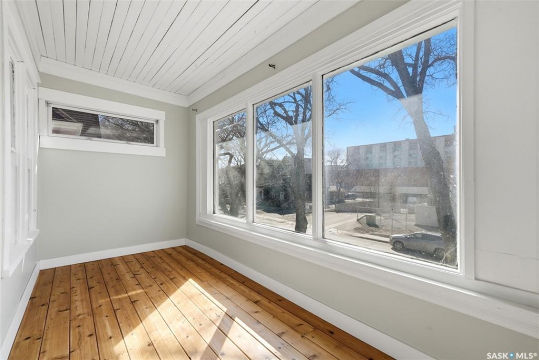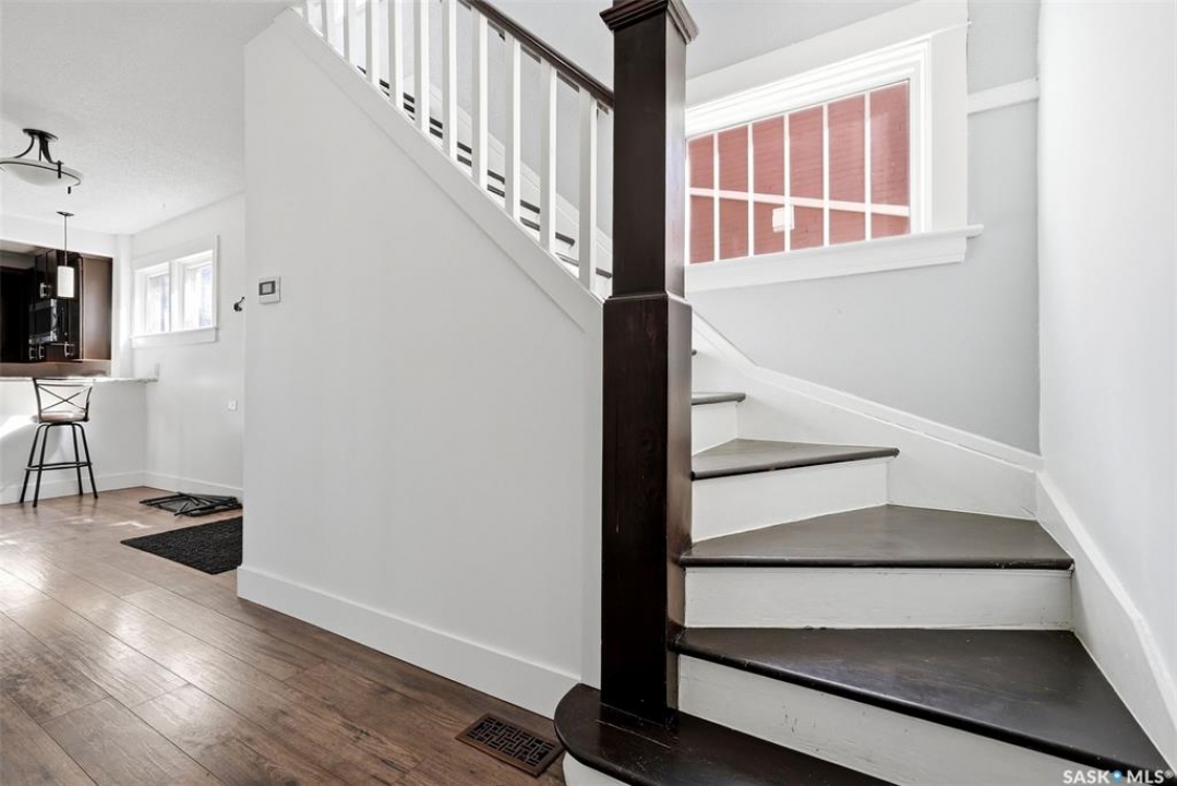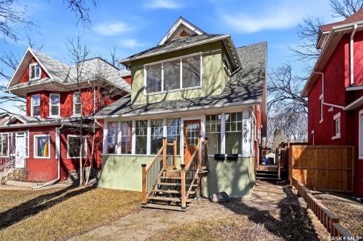 Beautifully updated character home in the Heritage neighbourhood! This lovely home is just steps away from the new Maple Leaf Pool and offers quick access to Wascana Park and all downtown amenities! The inviting covered front porch is the perfect place to relax with friends, enjoy your morning coffee or store your bikes after a cruise. Inside, the functional main floor features a bright and spacious living area that flows seamlessly into the dining space. The renovated kitchen features rich maple cabinetry, a corner pantry, farm house sink, stainless steel appliances and a large peninsula with an eat-up bar. Rounding out the main floor is an updated 3-piece bathroom. Upstairs, you'll find two generously sized bedrooms and a 4-piece bathroom with a custom tiled surround. The west bedroom also offers an oversized closet and a private sunroom, creating the perfect reading nook or quiet space to unwind. The basement studio is a rare and versatile bonus, offering its own separate entry and separate power meter for added income potential. This studio is perfect for students, nurses, or anyone needing accommodations close to the hospital. This space includes a captains bed, white cabinetry, modern vinyl plank flooring and its own 3-piece bathroom. A shared laundry room with stacked washer and dryer adds convenience. The studio has been previously rented for $800 per month. Numerous updates have been completed over the years, including many windows, updated plumbing, electrical, and A/C. The backyard offers 3 parking spaces that can be used by the owner or potentially rented for additional income at $100 per month. This move-in ready home offers excellent value and flexibility!