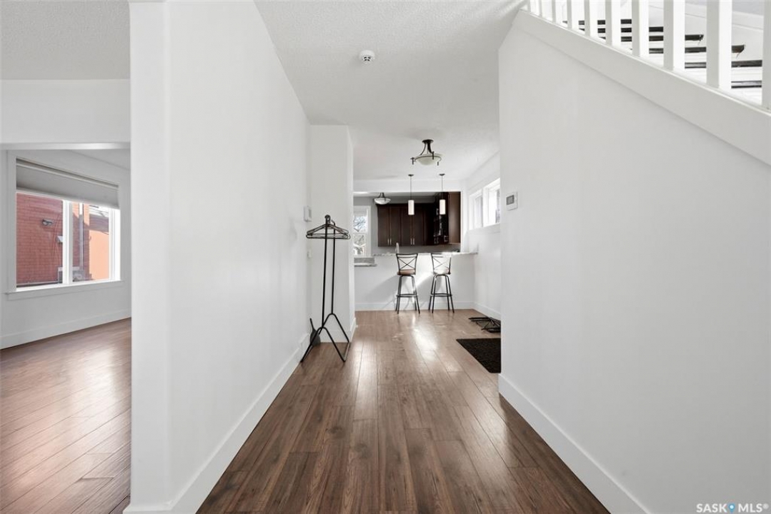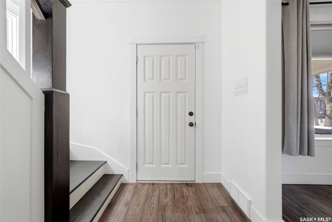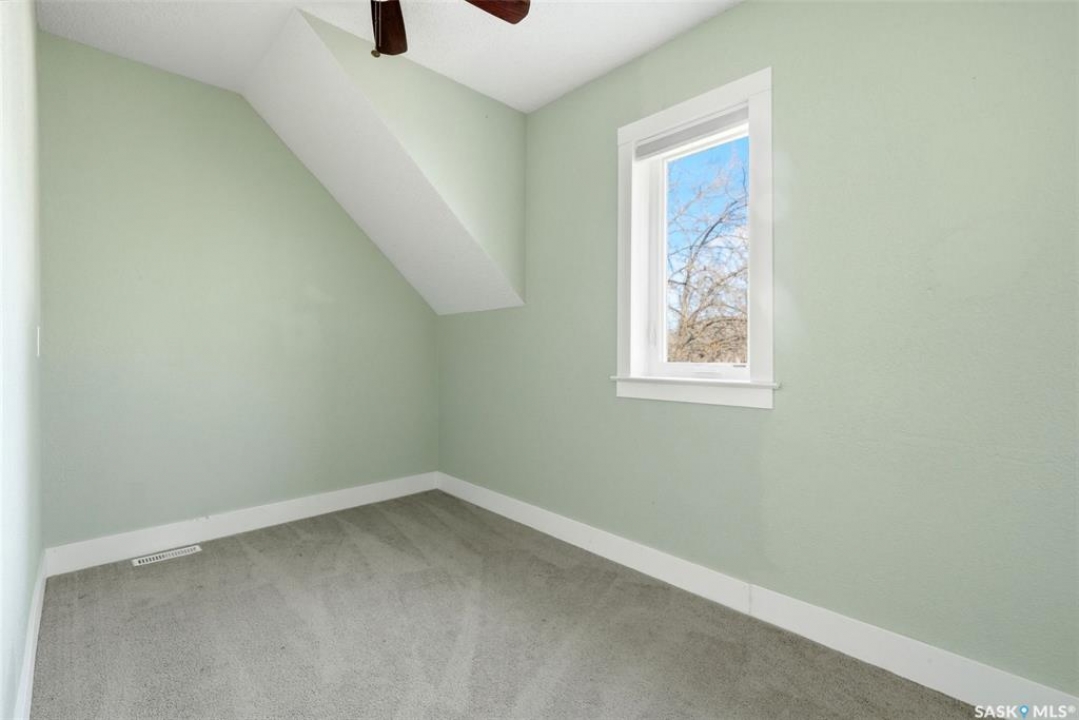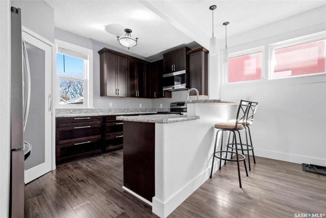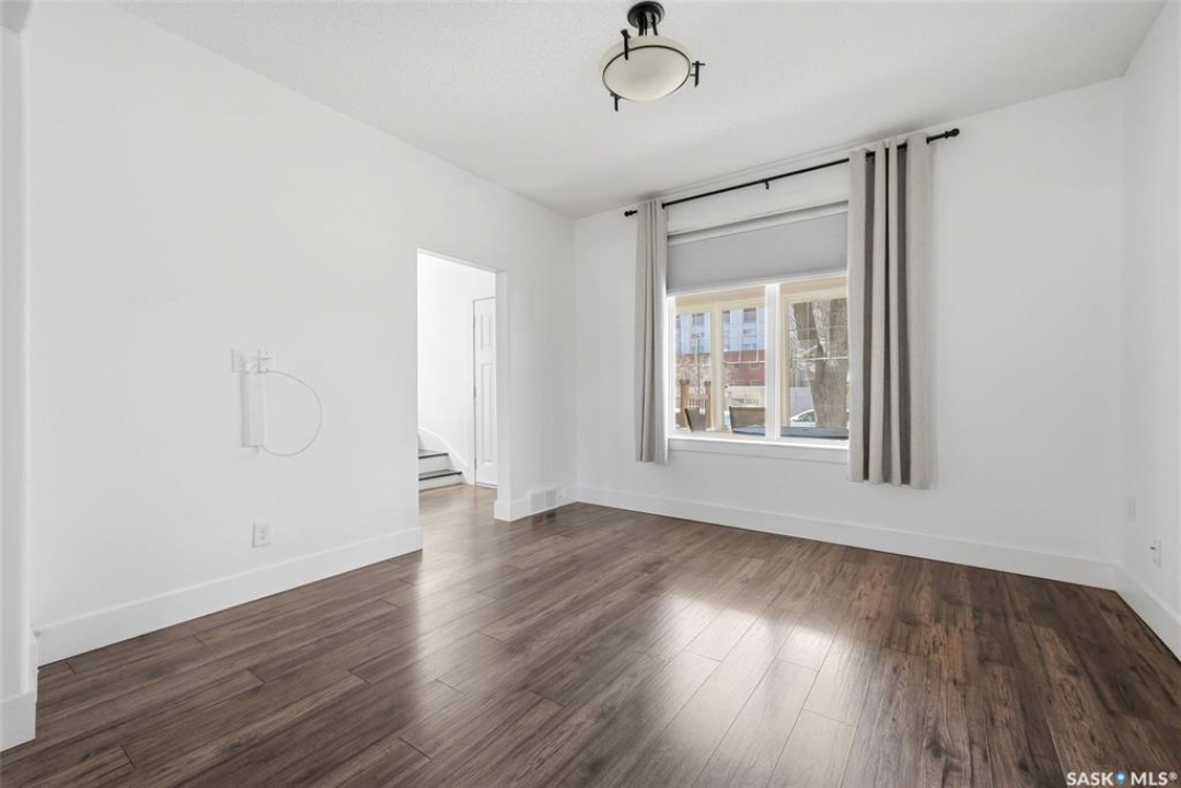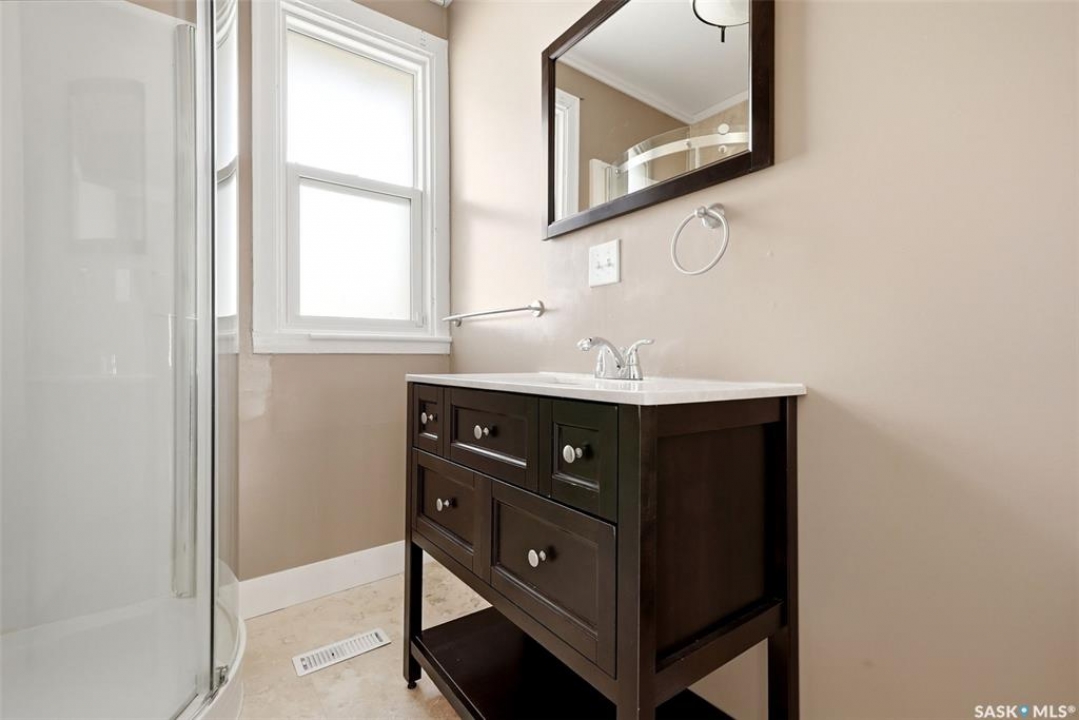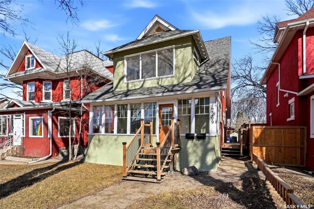 Beautifully updated character home in the Heritage neighbourhood! This lovely home is just steps away from the new Maple Leaf Pool and offers quick access to Wascana Park and all downtown amenities! The inviting covered front porch is the perfect place to relax with friends, enjoy your morning coffee or store your bikes after a cruise. Inside, the functional main floor features a bright and spacious living area that flows seamlessly into the dining space. The renovated kitchen features rich maple cabinetry, a corner pantry, farm house sink, stainless steel appliances and a large peninsula with an eat-up bar. Rounding out the main floor is an updated 3-piece bathroom. Upstairs, you'll find two generously sized bedrooms and a 4-piece bathroom with a custom tiled surround. The west bedroom also offers an oversized closet and a private sunroom, creating the perfect reading nook or quiet space to unwind. The basement studio is a rare and versatile bonus, offering its own separate entry and separate power meter for added income potential. This studio is perfect for students, nurses, or anyone needing accommodations close to the hospital. This space includes a captains bed, white cabinetry, modern vinyl plank flooring and its own 3-piece bathroom. A shared laundry room with stacked washer and dryer adds convenience. The studio has been previously rented for $800 per month. Numerous updates have been completed over the years, including many windows, updated plumbing, electrical, and A/C. The backyard offers 3 parking spaces that can be used by the owner or potentially rented for additional income at $100 per month. This move-in ready home offers excellent value and flexibility!