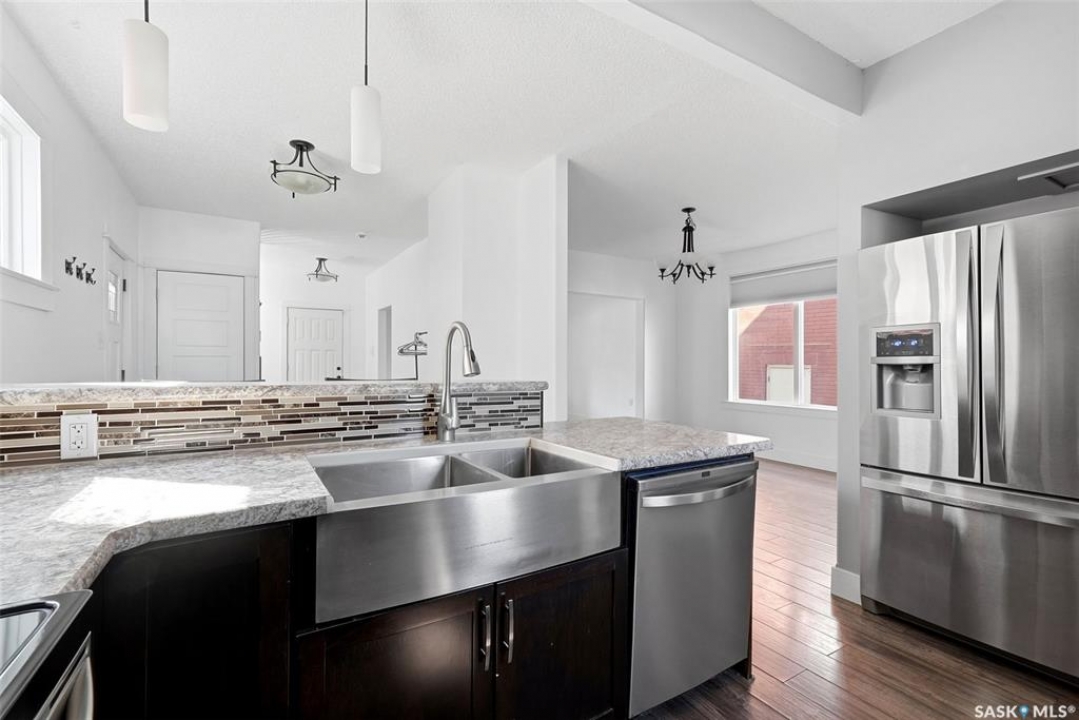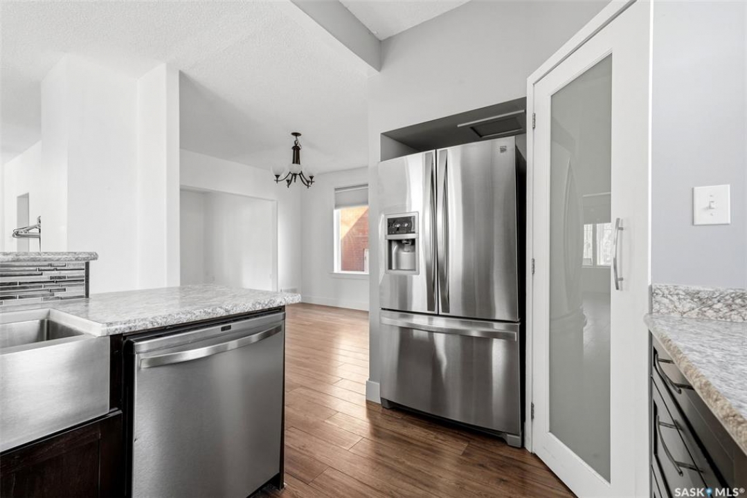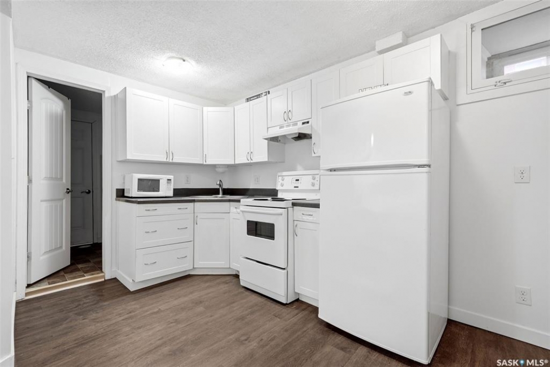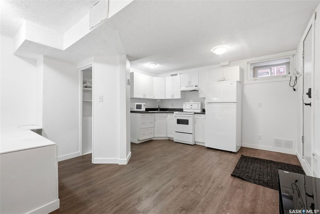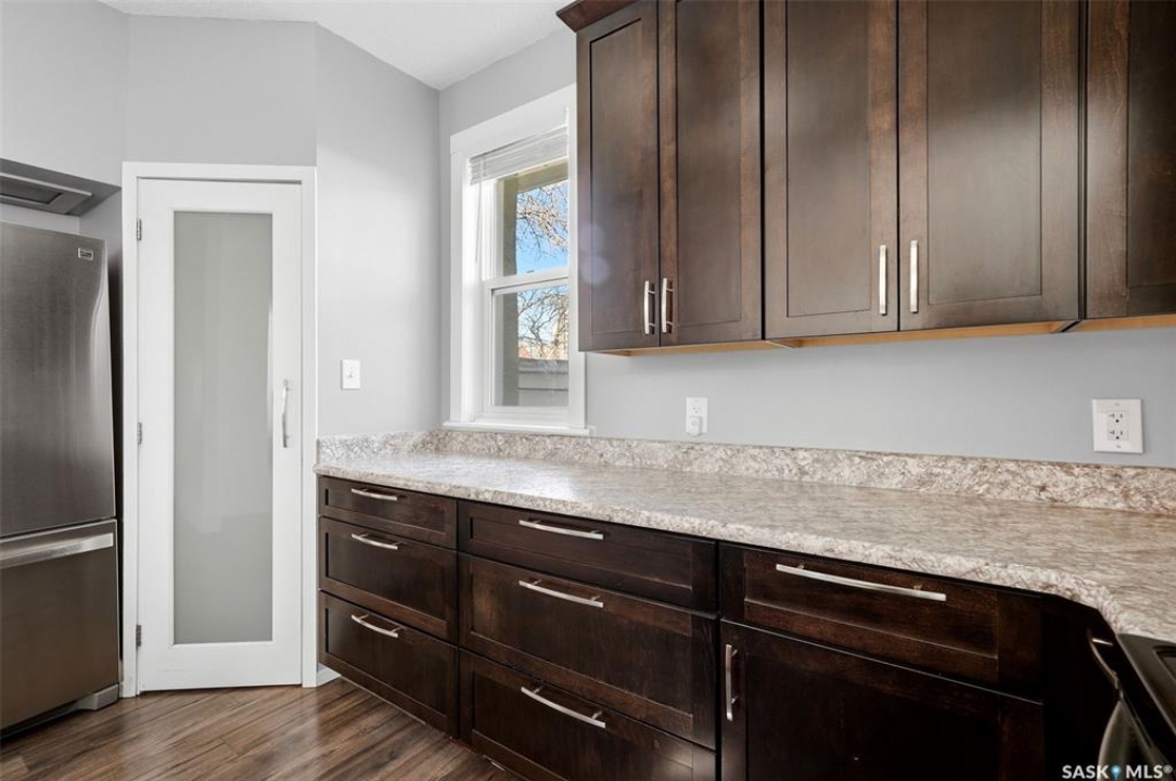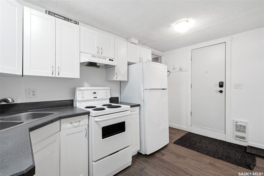 Beautifully updated character home in the Heritage neighbourhood! This lovely home is just steps away from the new Maple Leaf Pool and offers quick access to Wascana Park and all downtown amenities! The inviting covered front porch is the perfect place to relax with friends, enjoy your morning coffee or store your bikes after a cruise. Inside, the functional main floor features a bright and spacious living area that flows seamlessly into the dining space. The renovated kitchen features rich maple cabinetry, a corner pantry, farm house sink, stainless steel appliances and a large peninsula with an eat-up bar. Rounding out the main floor is an updated 3-piece bathroom. Upstairs, you'll find two generously sized bedrooms and a 4-piece bathroom with a custom tiled surround. The west bedroom also offers an oversized closet and a private sunroom, creating the perfect reading nook or quiet space to unwind. The basement studio is a rare and versatile bonus, offering its own separate entry and separate power meter for added income potential. This studio is perfect for students, nurses, or anyone needing accommodations close to the hospital. This space includes a captains bed, white cabinetry, modern vinyl plank flooring and its own 3-piece bathroom. A shared laundry room with stacked washer and dryer adds convenience. The studio has been previously rented for $800 per month. Numerous updates have been completed over the years, including many windows, updated plumbing, electrical, and A/C. The backyard offers 3 parking spaces that can be used by the owner or potentially rented for additional income at $100 per month. This move-in ready home offers excellent value and flexibility!