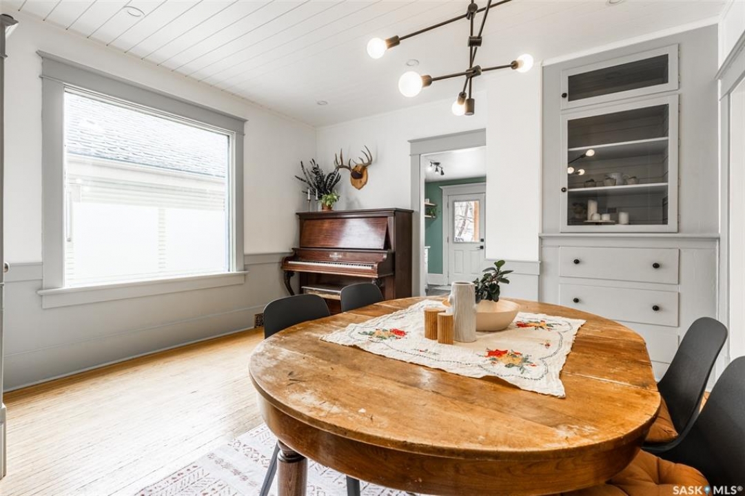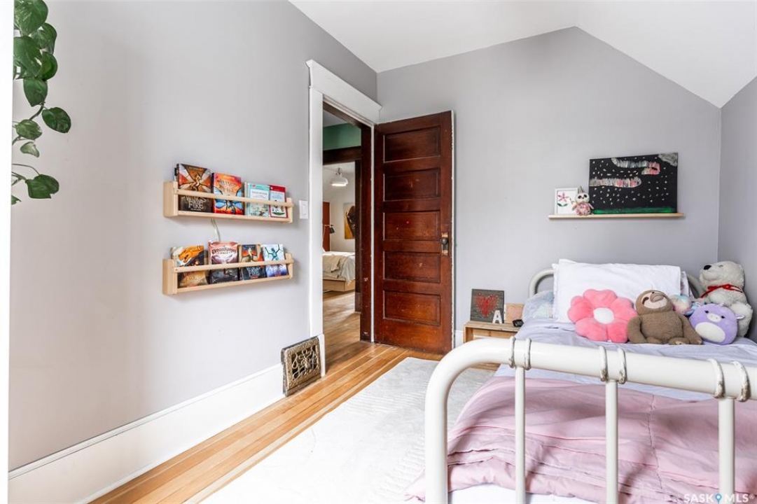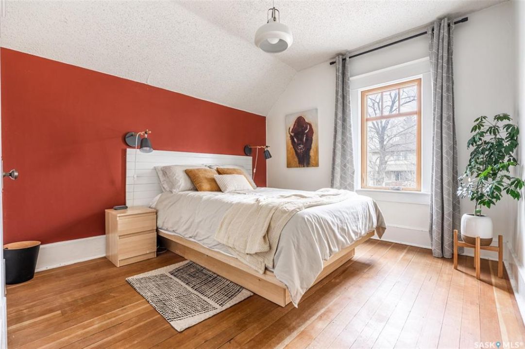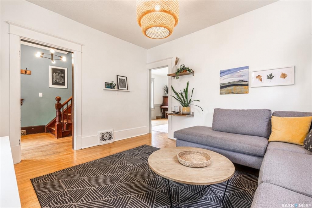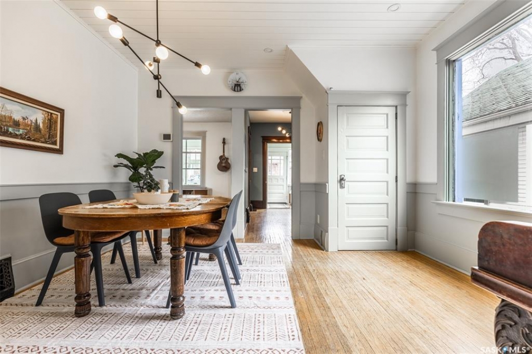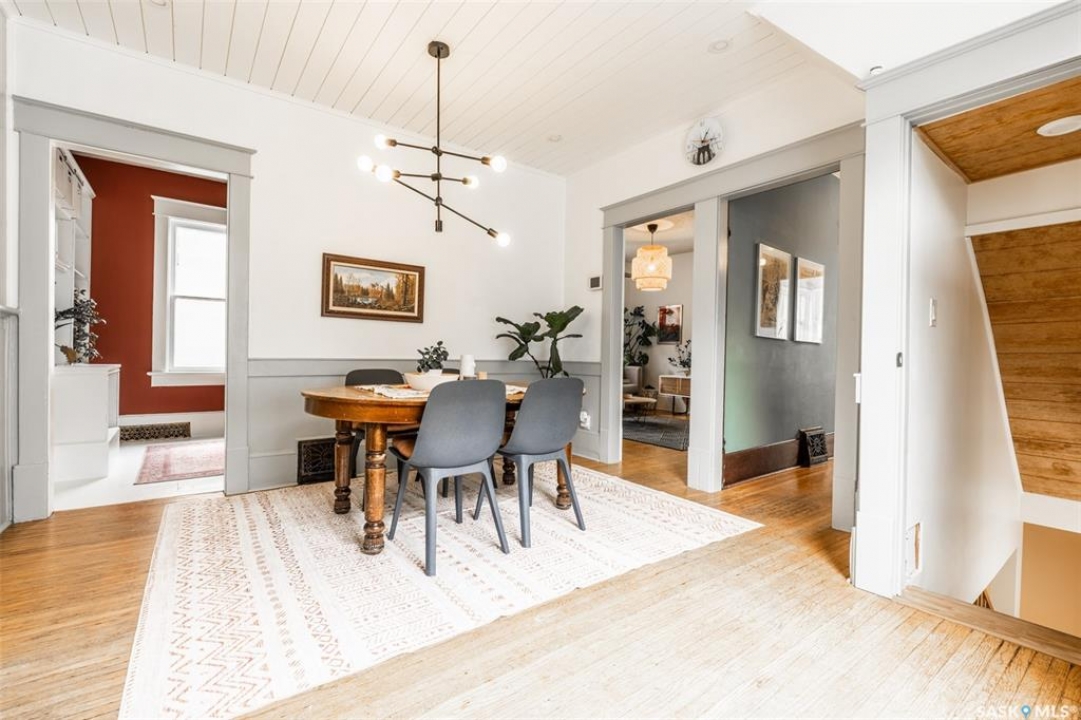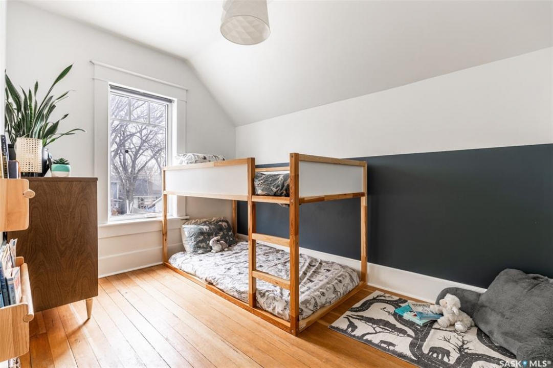 Welcome to 215 27th Street west in Saskatoon's Caswell Hill neighbourhood. The front porch is sunny and warm, it has been reinforced, is a beautiful space to read a book or greet guests, and it's heated. Rustic hardwood floors greet you throughout the main floor. The living room and dining room have big windows allowing for lots of natural lights and tall ceilings making it feel spacious. The dining room is large so get ready to host many gatherings when you live here. This home has a charming scandi vibe works well with the original character. Also on the main is a large space off the dining room. It's a bonus room on the main floor: could be an office, a playroom, a craft room...lots of options. The kitchen was an addition to the back of the house so it's much larger than most character home kitchens and has the modern comforts of a dishwasher. It overlooks the backyard so you can see the goings on while prepping meals. Up on the second floor there's a primary bedroom as well as 3 other bedrooms - for a total of 4. This is where you will find the 4 piece bathroom, it has a deep a cast iron tub/shower and it is vented. The basement is where most older homes fail, but not this one! It's full height and there's cozy in floor heat throughout. A welcoming family room with built in speakers and a wet bar so you can have snacks while watching movies with friends and family. Down here you must check out the stylish 3 piece bathroom and feel the warmth of the heated floors! There's also laundry with storage and separate storage room at the end of the hall. Out in the south facing backyard you'll find a sturdy deck, a shed, a patio, garden boxes to fill up this summer, and an adorable play structure. Book your showing today!