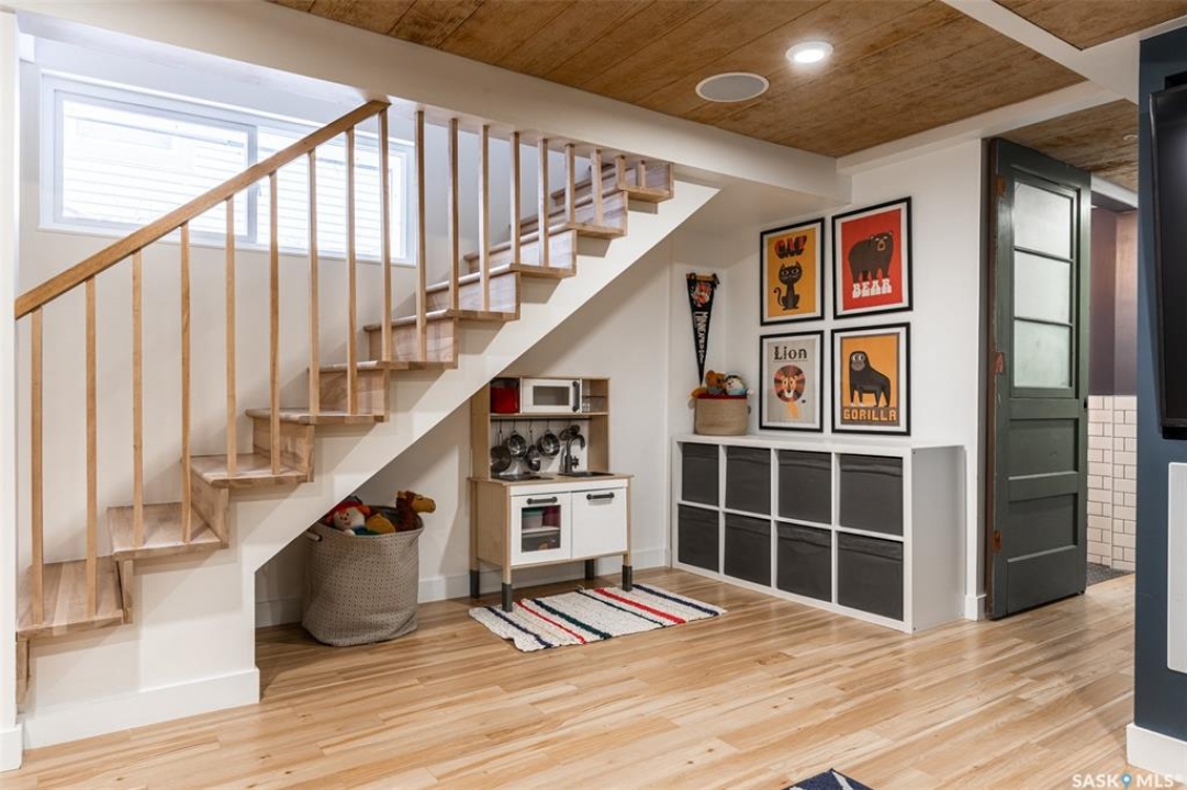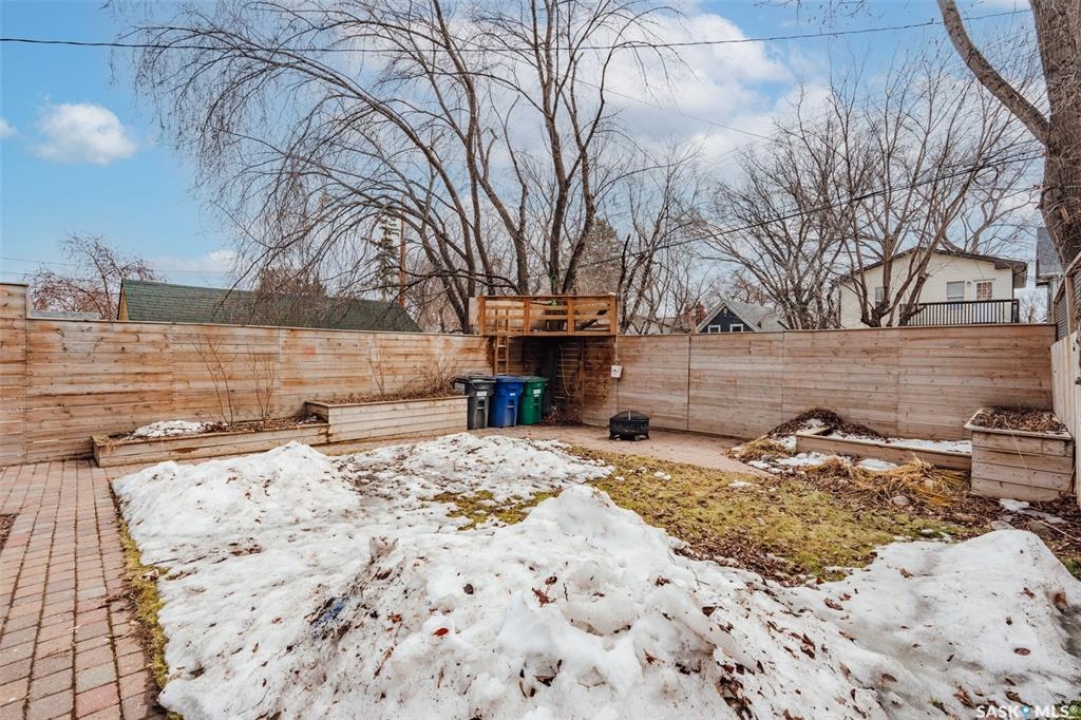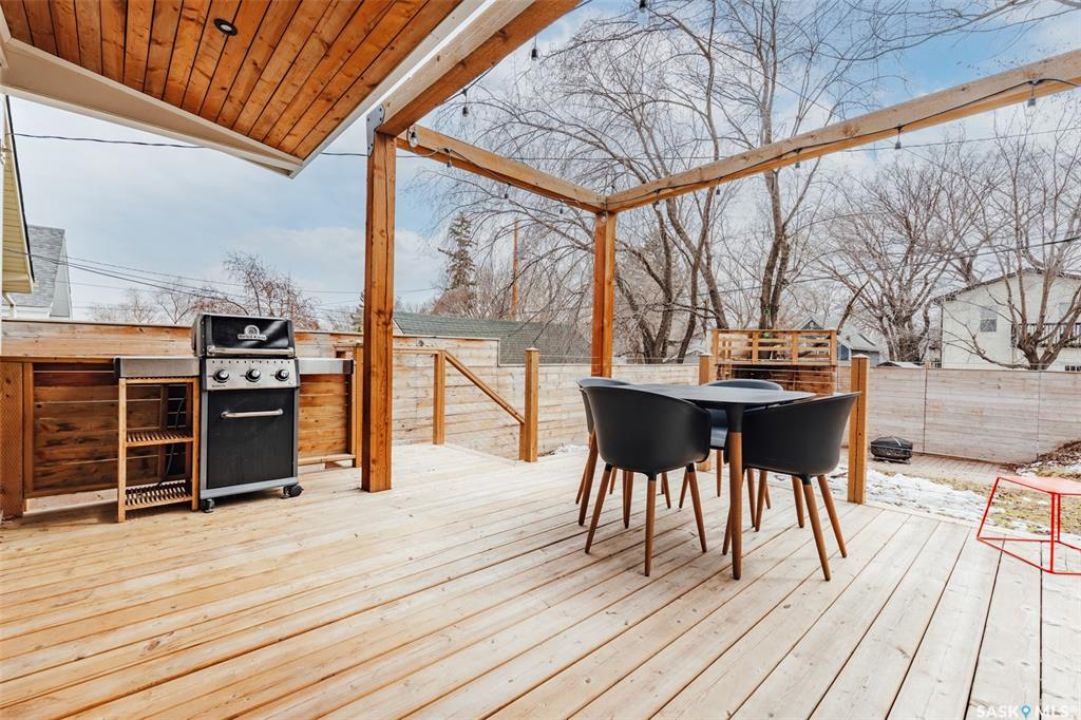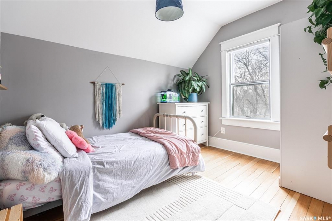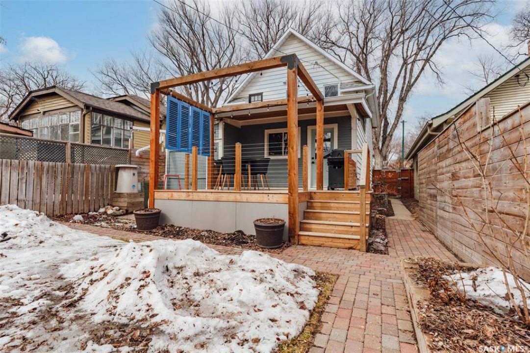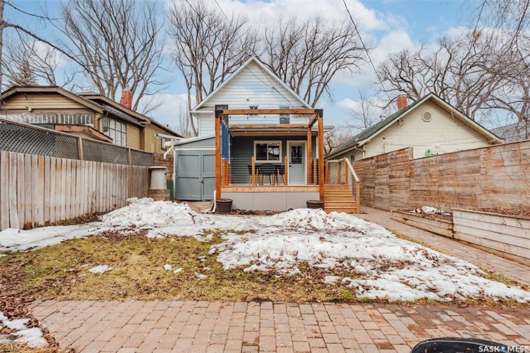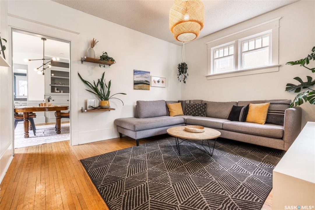 Welcome to 215 27th Street west in Saskatoon's Caswell Hill neighbourhood. The front porch is sunny and warm, it has been reinforced, is a beautiful space to read a book or greet guests, and it's heated. Rustic hardwood floors greet you throughout the main floor. The living room and dining room have big windows allowing for lots of natural lights and tall ceilings making it feel spacious. The dining room is large so get ready to host many gatherings when you live here. This home has a charming scandi vibe works well with the original character. Also on the main is a large space off the dining room. It's a bonus room on the main floor: could be an office, a playroom, a craft room...lots of options. The kitchen was an addition to the back of the house so it's much larger than most character home kitchens and has the modern comforts of a dishwasher. It overlooks the backyard so you can see the goings on while prepping meals. Up on the second floor there's a primary bedroom as well as 3 other bedrooms - for a total of 4. This is where you will find the 4 piece bathroom, it has a deep a cast iron tub/shower and it is vented. The basement is where most older homes fail, but not this one! It's full height and there's cozy in floor heat throughout. A welcoming family room with built in speakers and a wet bar so you can have snacks while watching movies with friends and family. Down here you must check out the stylish 3 piece bathroom and feel the warmth of the heated floors! There's also laundry with storage and separate storage room at the end of the hall. Out in the south facing backyard you'll find a sturdy deck, a shed, a patio, garden boxes to fill up this summer, and an adorable play structure. Book your showing today!