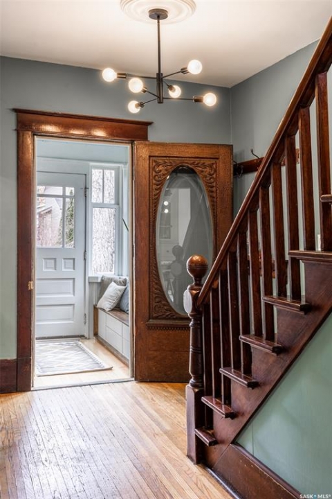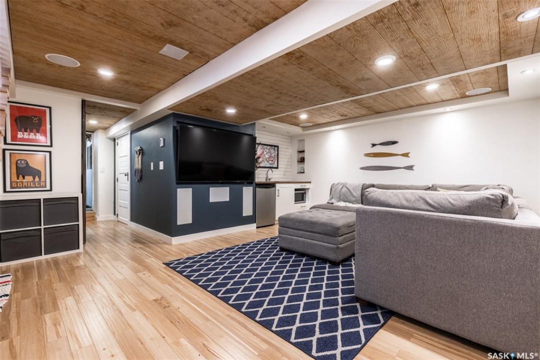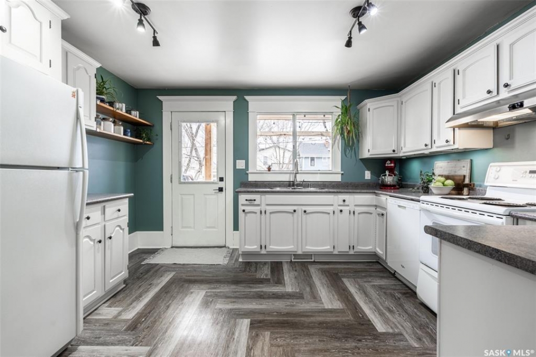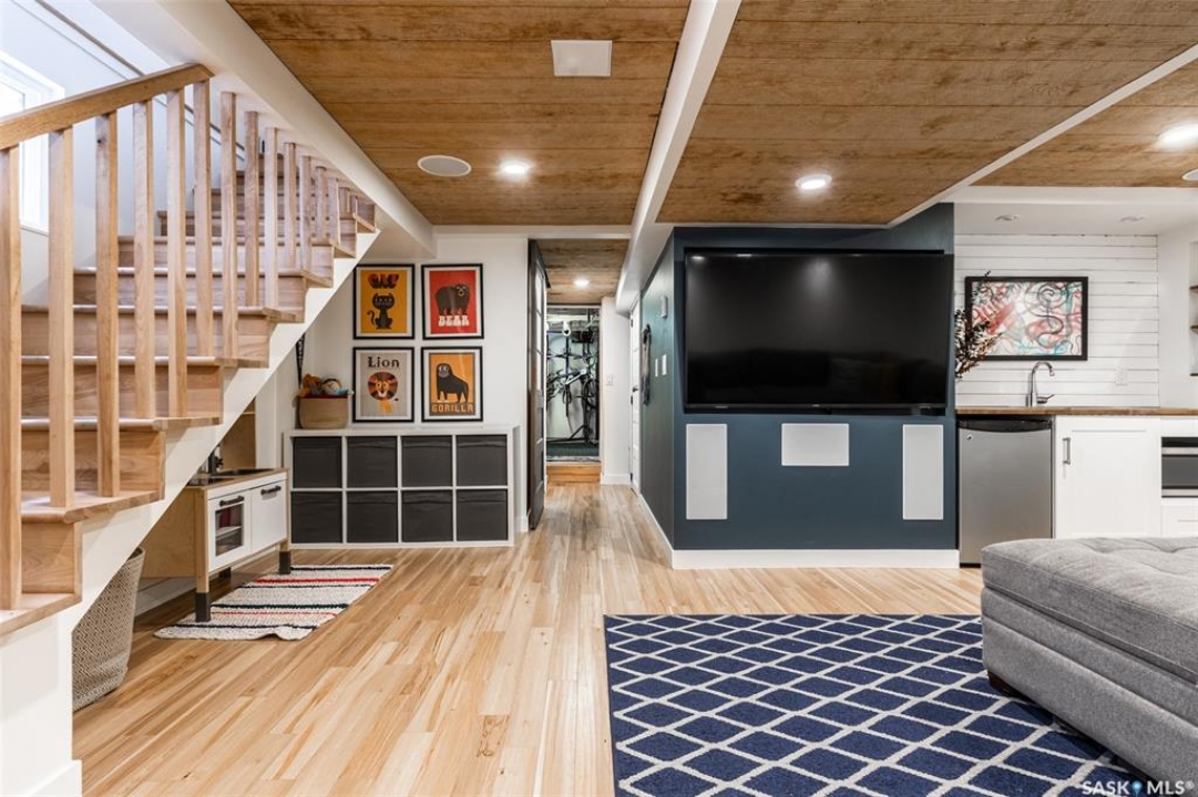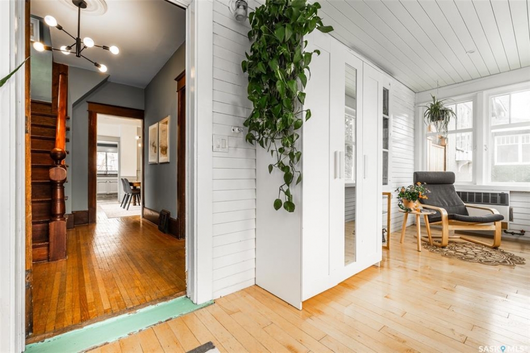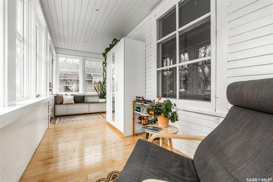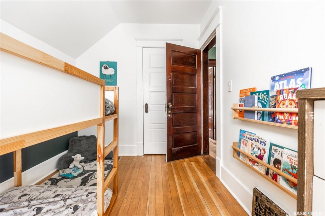 Welcome to 215 27th Street west in Saskatoon's Caswell Hill neighbourhood. The front porch is sunny and warm, it has been reinforced, is a beautiful space to read a book or greet guests, and it's heated. Rustic hardwood floors greet you throughout the main floor. The living room and dining room have big windows allowing for lots of natural lights and tall ceilings making it feel spacious. The dining room is large so get ready to host many gatherings when you live here. This home has a charming scandi vibe works well with the original character. Also on the main is a large space off the dining room. It's a bonus room on the main floor: could be an office, a playroom, a craft room...lots of options. The kitchen was an addition to the back of the house so it's much larger than most character home kitchens and has the modern comforts of a dishwasher. It overlooks the backyard so you can see the goings on while prepping meals. Up on the second floor there's a primary bedroom as well as 3 other bedrooms - for a total of 4. This is where you will find the 4 piece bathroom, it has a deep a cast iron tub/shower and it is vented. The basement is where most older homes fail, but not this one! It's full height and there's cozy in floor heat throughout. A welcoming family room with built in speakers and a wet bar so you can have snacks while watching movies with friends and family. Down here you must check out the stylish 3 piece bathroom and feel the warmth of the heated floors! There's also laundry with storage and separate storage room at the end of the hall. Out in the south facing backyard you'll find a sturdy deck, a shed, a patio, garden boxes to fill up this summer, and an adorable play structure. Book your showing today!