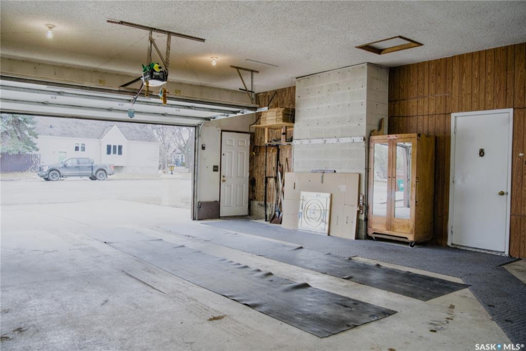 Welcome to 802 7th Street East. This spacious bungalow sits on two city lots, offering outstanding space and future potential. The main floor features a large living room, formal dining area, and a functional kitchen with oak cabinetry, complete with fridge, stove, and dishwasher. There are three generously sized bedrooms with ample closet space, including a large primary bedroom with a 3-piece ensuite, along with a 4-piece main bathroom. The fully developed basement adds even more living space with a family room, games area, and bar—ideal for entertaining—plus two additional bedrooms, a 3-piece bathroom, and a large laundry/utility room. A true mechanic's dream, the property includes a huge 26' x 32' attached garage with an 18-foot door. The large side yard offers RV parking, perfect for trailers or recreational vehicles, along with a garden shed. Key updates include a furnace and water heater (2018). Ideally located with easy access to 8th Street, Broadway, transit, schools, parks, Lathey Pool, and J.S. Wood Library, this property is a fantastic opportunity for families needing space or investors looking to maximize a double lot in a desirable neighbourhood.