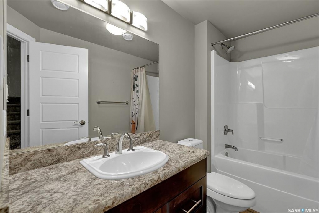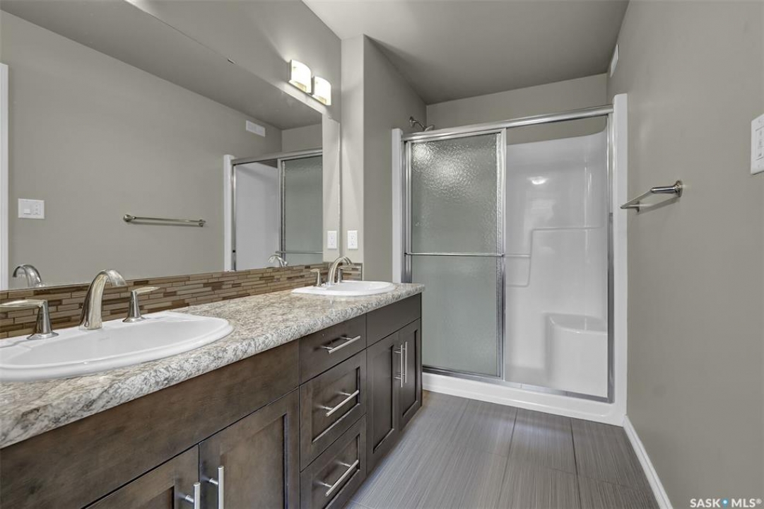 Welcome to this town home in The Creeks in terrific condition. Large foyer upon entering with conveinient direct entry door to single attached garage, also a 2 piece powder room. Main floor open concept. Kitchen with granite counters and back splash stainless steel appliances included. Combined DR/ LR. Garden door leading to back private yard. 2nd floor has 2 good sized bedrooms both with 4 piece ensuites one with soaker tub and double sinks , walk in closet. Second bedroom also a good size. Laundry area on this level also. Nicely finished lower level offers additional space for living, features a gas fireplace. A 4 piece bath on this level as well. Condo is in excellent move in condition.
