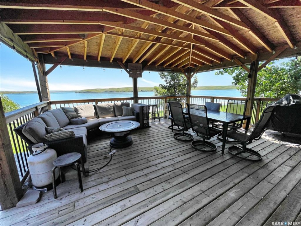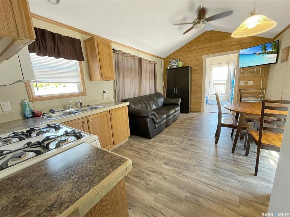 Welcome to this stunning lakefront property situated on the serene Reid Lake. This charming cottage offers a multitude of features that are sure to impress. As you step onto the oversized deck, spanning the entire front of the cabin, you will be captivated by the breathtaking views. The deck itself is a perfect blend of covered and open space, providing an idyllic oasis to enjoy the tranquil surroundings. From here, you can take in the picturesque vista of the lake, with a glimpse of your private dock and the lush green grass along the shoreline, thanks to the underground irrigation system. The cabin's strategic location also offers unobstructed views of the expansive river hills in the distance. Convenience is not compromised at this lakeside retreat, as ample parking is available on the gravel parking pad, ensuring hassle-free access. Additionally, a storage shed provides convenient space for your belongings. Inside the cabin, you will find three well-appointed bedrooms, including a master suite, as well as a tastefully designed four-piece washroom. The main living room boasts an open concept layout, accentuated by elegant vinyl flooring. The kitchen is equipped with a three-piece appliance set, and the dining room offers a delightful space to savour meals while overlooking the sparkling lake. A cozy living room completes the interior, providing a comfortable area to relax and unwind. Constructed in 2009, this modern cabin exudes a rustic charm with its cedar siding, adding to its allure. Located a mere 35 minutes from Swift Current, this family-owned and operated resort serves as the ultimate destination for fishing and boating enthusiasts. Don't miss out on this incredible opportunity to own a piece of paradise. Call today for more information or to arrange a private viewing.