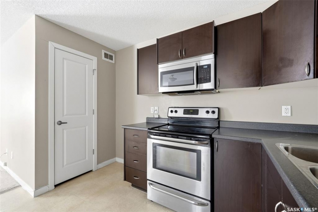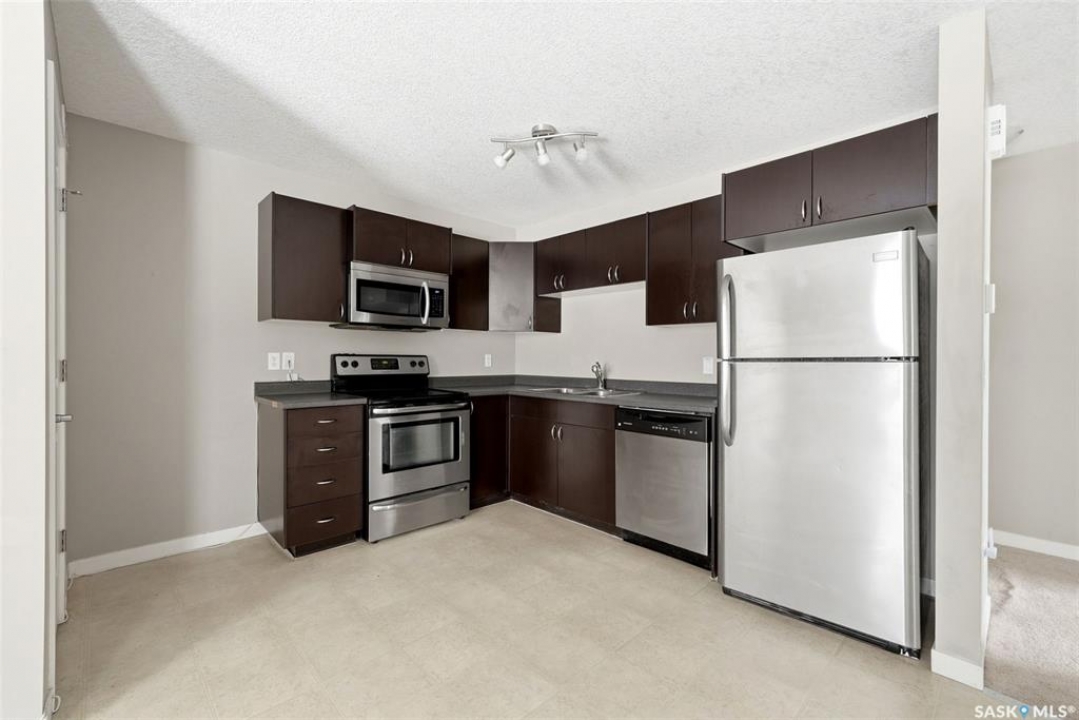 Great location in Harbour Landing! This 2 bedroom townhouse condo is a main floor corner unit with West exposure. This property includes the Fridge, Stove, Built-in Dishwasher, Built-in Microwave Hood Fan combo, Blinds, In-Wall Air Conditioner Unit, Washer/Dryer and an owned On-Demand Boiler. This condo includes 1 parking stall (#97) which is conveniently close to the unit. The complex offers ample visitor parking spaces. The condo fees are only $229.97/month. Located very close to parks/greenspace & within walking distance to the multitude of amenities offered in Harbour Landing. Quick possession is available. Please call for more information or to schedule a viewing of this great condo.