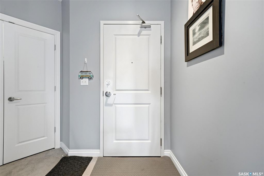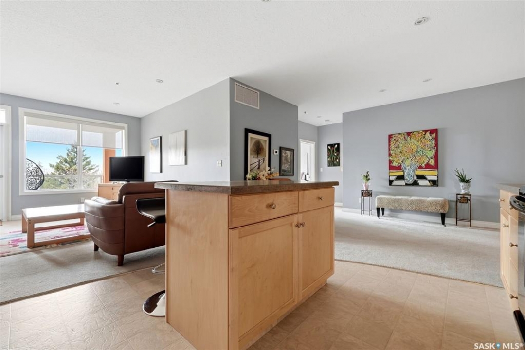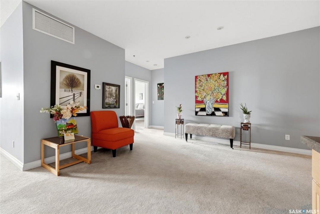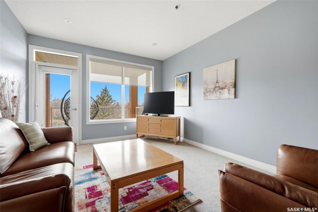 Location, location, location! Units rarely come available in this well-maintained building, constructed in 2007, so act fast! This beautifully maintained 2-bed, 2-bath condo in Regina is ideally located in a highly sought-after, south-end neighbourhood. This move-in ready condo is directly across from Kiwanis Park with walking paths & a waterfall, just minutes from downtown, the airport, the vibrant Cathedral area & all south-end amenities. Enjoy being within walking distance to scenic Wascana Park, perfect for an active, connected lifestyle. This Regina condo offers an exceptional blend of style, comfort & convenience. The bright, open-concept layout features 9' ceilings and pot lighting for a warm, modern feel. The kitchen is both stylish & functional, with plenty of counter & cupboard space along with a centre island. The spacious living room opens onto a NE-facing private deck, ideal for enjoying your morning coffee and favourite book while overlooking a quiet, tree-lined residential area and beautiful park across the street. Both bedrooms are generously sized with large windows. The primary bedroom includes a large walk-through closet and a well-appointed 4-piece ensuite. Additional highlights include a generous entryway and dining area, 2 heated underground parking stalls with extra storage & surface guest parking available near front door. A dedicated laundry/storage room off the main entryway includes a front-loading washer and dryer. Condo fees are very reasonable, adding to the overall value. This upgraded condo in Regina delivers exceptional quality, thoughtful finishes, and an unbeatable location - perfect for professionals, downsizers, or investors.