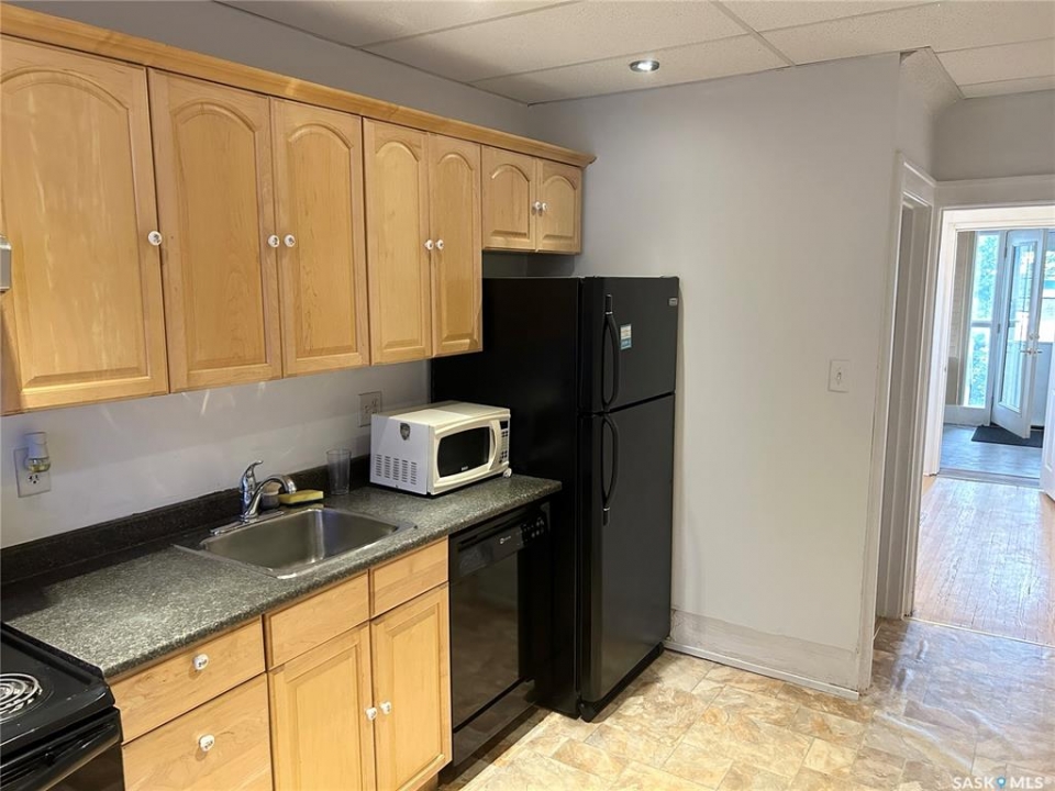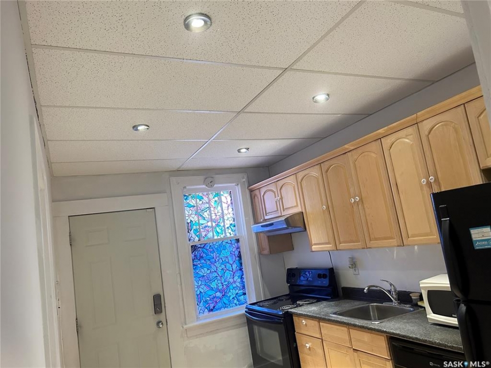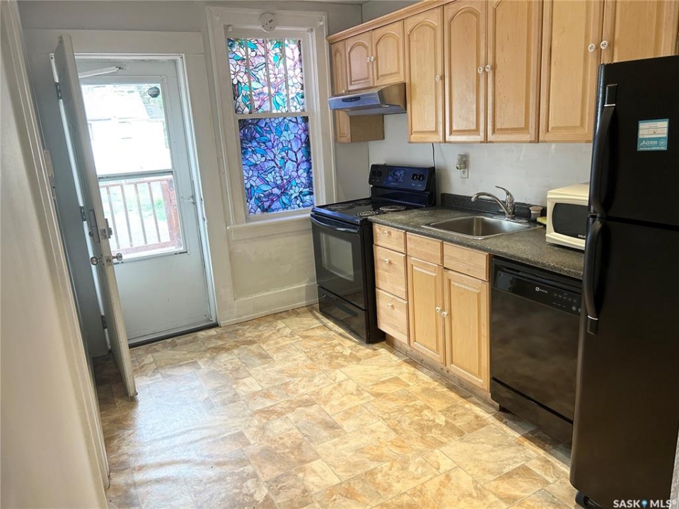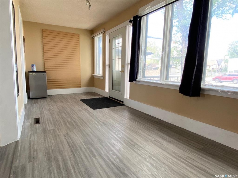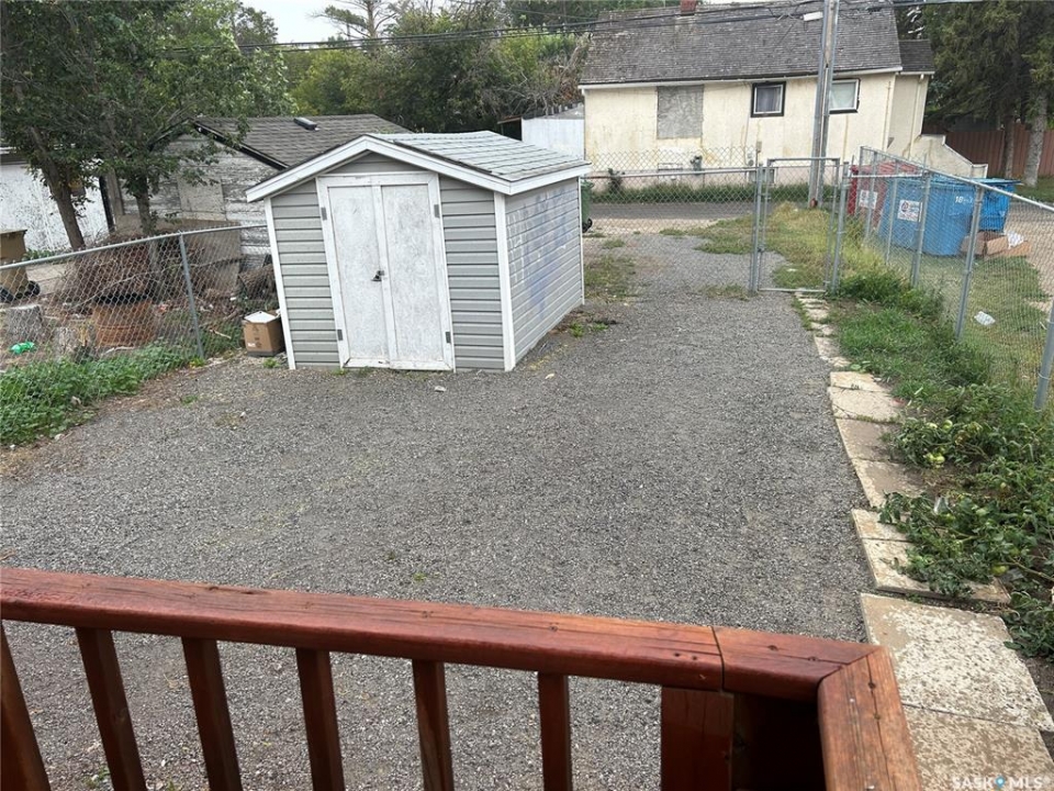 Wellcome to 3033 Dewdney Ave, this home features main floor store space with full kitchen. -- Upstairs 3 bedroom suite with separate entrance. -- All foundation walls are braced. -- newly renovated kitchen. -- newly renovated full bathroom. -- newer PVC windows throughout. -- fully fenced yard with new chain link fences. --backyard is fully graveled, lots of parking. Centrally located in city and on busy Dewdney street, perfect for a small retail business, or personal service business. Main floor has a large store space plus a full kitchen. Upstairs is 3 bedroom residence plus a full bathroom. Upstairs residence has separate entrance, so you have the option of using the main floor store and renting out the residence, or use the entire building as a single house. This home / store has retained its charm, character while undergoing renovations. The main floor has a spacious store area. The large sunporch has been used as a den. From the sunporch you will see a separate entrance to the upstairs as well as main floor kitchen. The kitchen was renovated a few years ago with newer cabinets and appliances remain (fridge, stove, dishwasher). The back door leads to a newer deck. There are 3 bedrooms upstairs and a renovated bathroom. All basement foundation walls are braced with H beams, so the basement is solid and dry. Shingles were replaced in 2015. Newer electrical and plumbing. Backyard is fully fenced with new chain link fences (2023). This could be your great starter home or home business.
