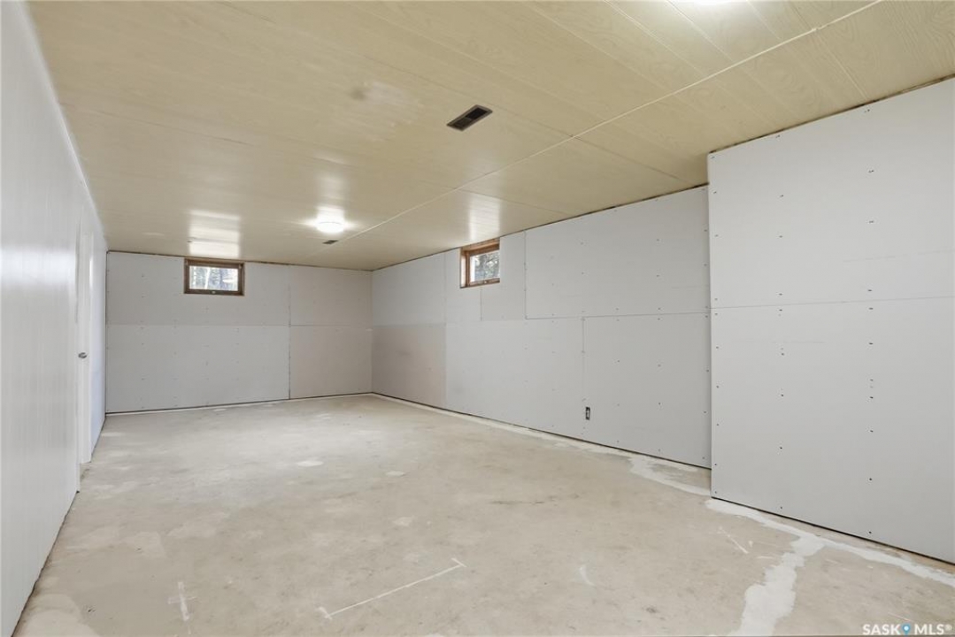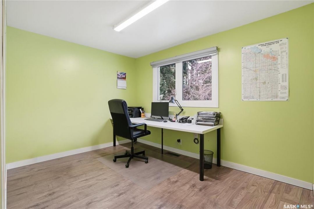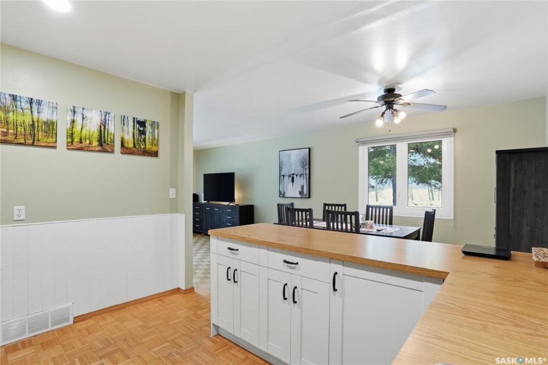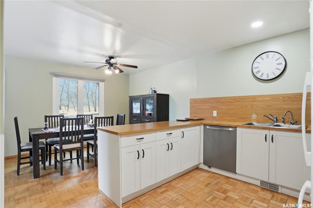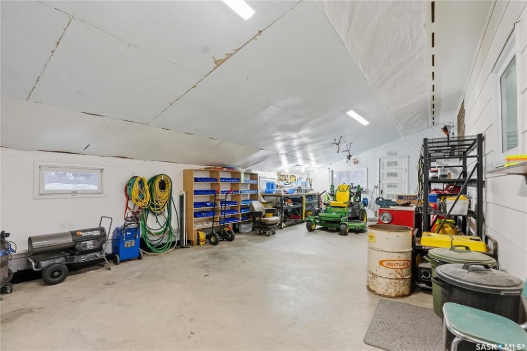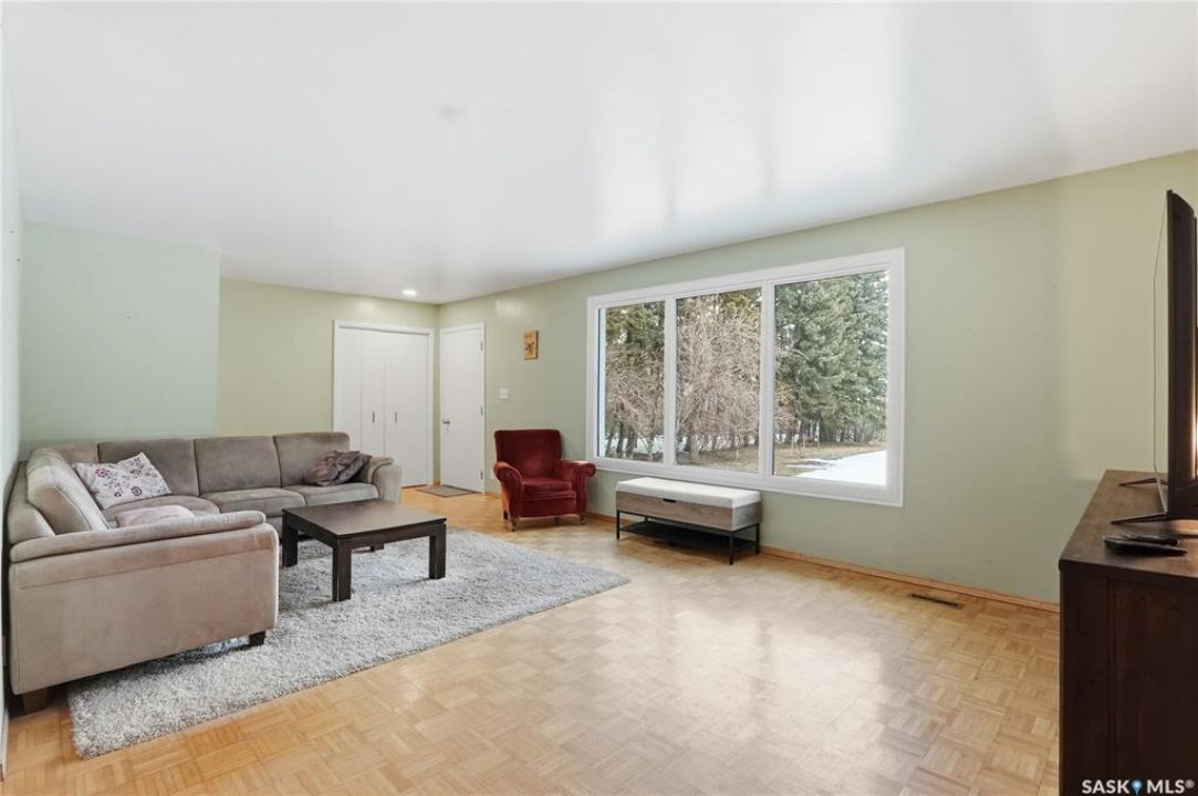 Welcome to this beautifully treed 23.16-acre acreage located just 10 minutes south of Foam Lake, offering privacy, functionality, and peaceful rural living. Surrounded by mature shelterbelt trees, the yard site is incredibly private with open prairie views beyond. The 1,346 sq ft bungalow is move-in ready with numerous updates. Entering through the massive attached garage, you're welcomed into a practical laundry and mudroom area with a newer washer. The main floor features an updated kitchen (2021) with modern finishes and appliances, flowing into the dining area and a bright, spacious living room filled with natural light. Down the hall are two guest bedrooms, a 4-piece bathroom, and a primary bedroom with a 2-piece ensuite. Flooring throughout the main level was updated between 2020 and 2022. The partially finished basement offers a large recreation room, fourth bedroom, 3-piece bathroom, and a versatile den, along with a large utility room, additional storage, and cold storage. Major updates include triple-pane windows (2021), attic insulation (2022), and shingles (2018–2019). Outside, the mature yard is beautifully maintained with expansive lawn space and established trees. The property includes a large quonset at 75ft x 48ft x 14ft tall (concrete foundation with gravel floor, 100amp power with 220v outlet) and two dugouts, ideal for animals or hobby farm use. With natural gas heating, power, a large bore well, and school bus pickup, this acreage offers rural living with everyday convenience.