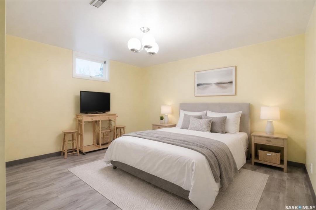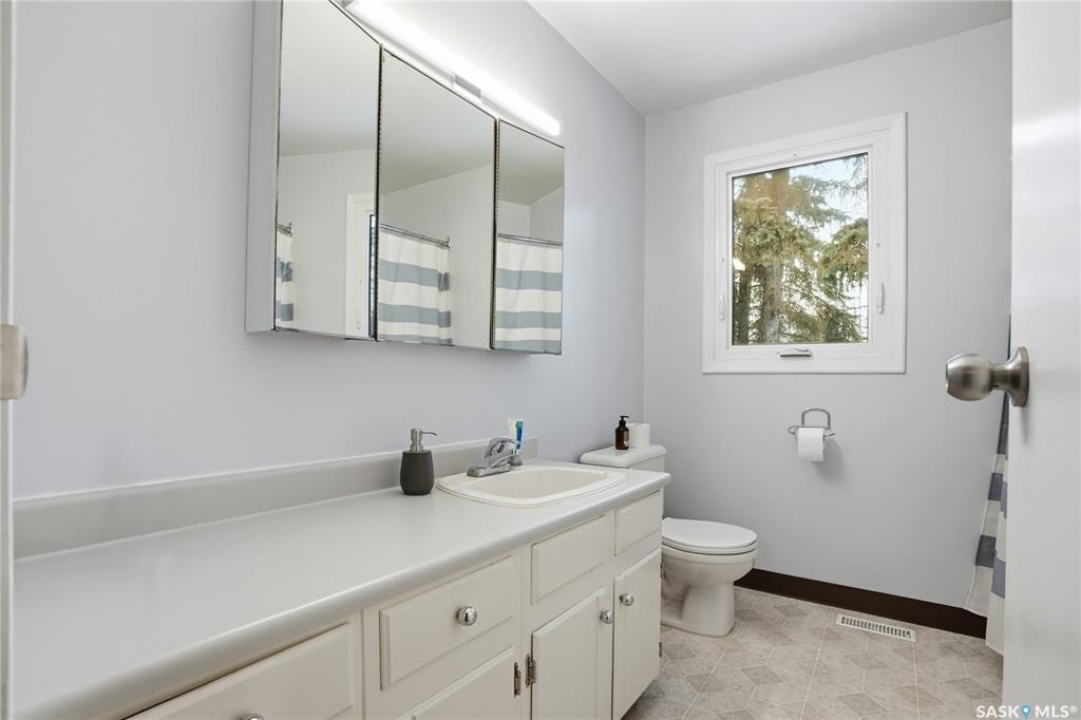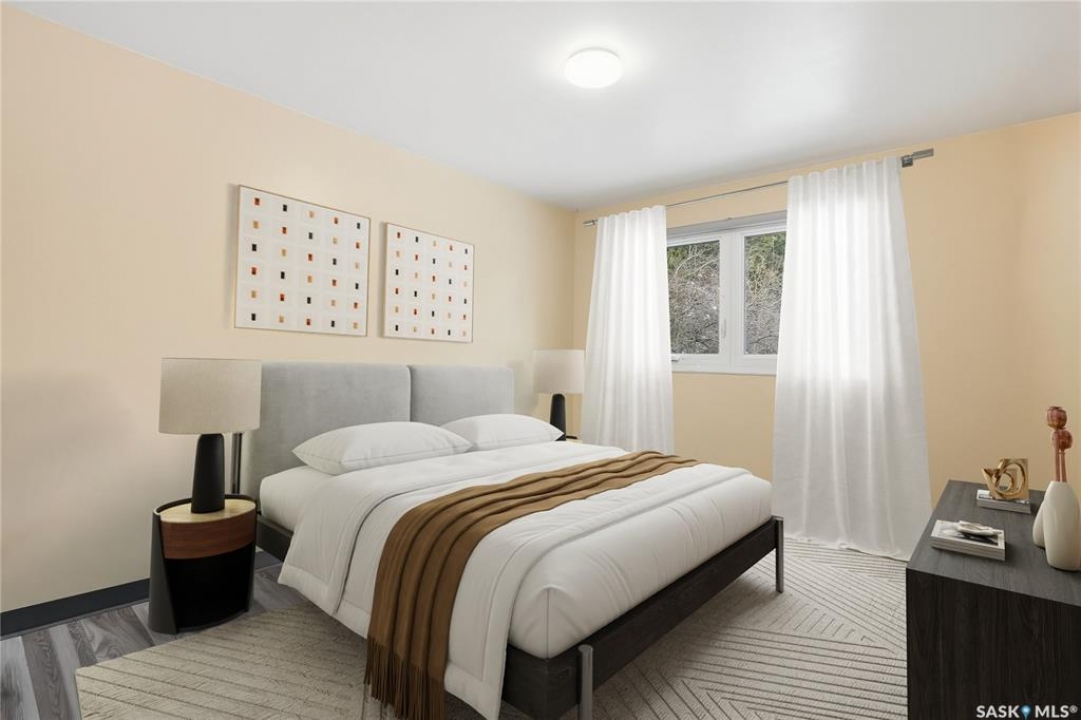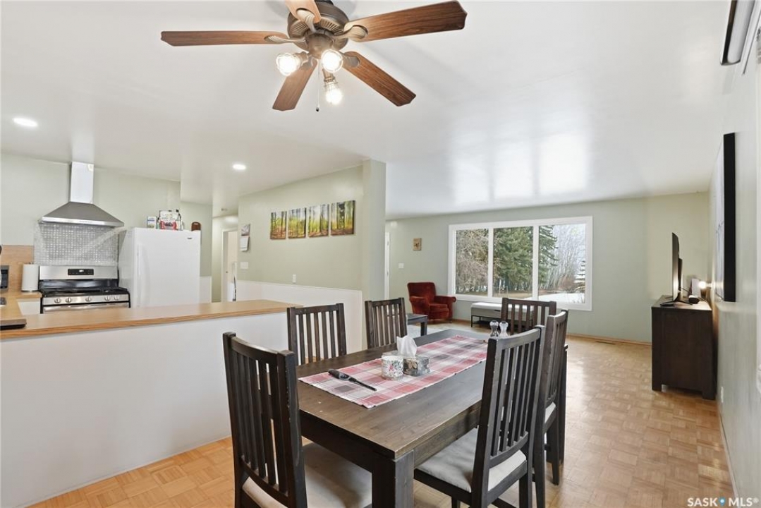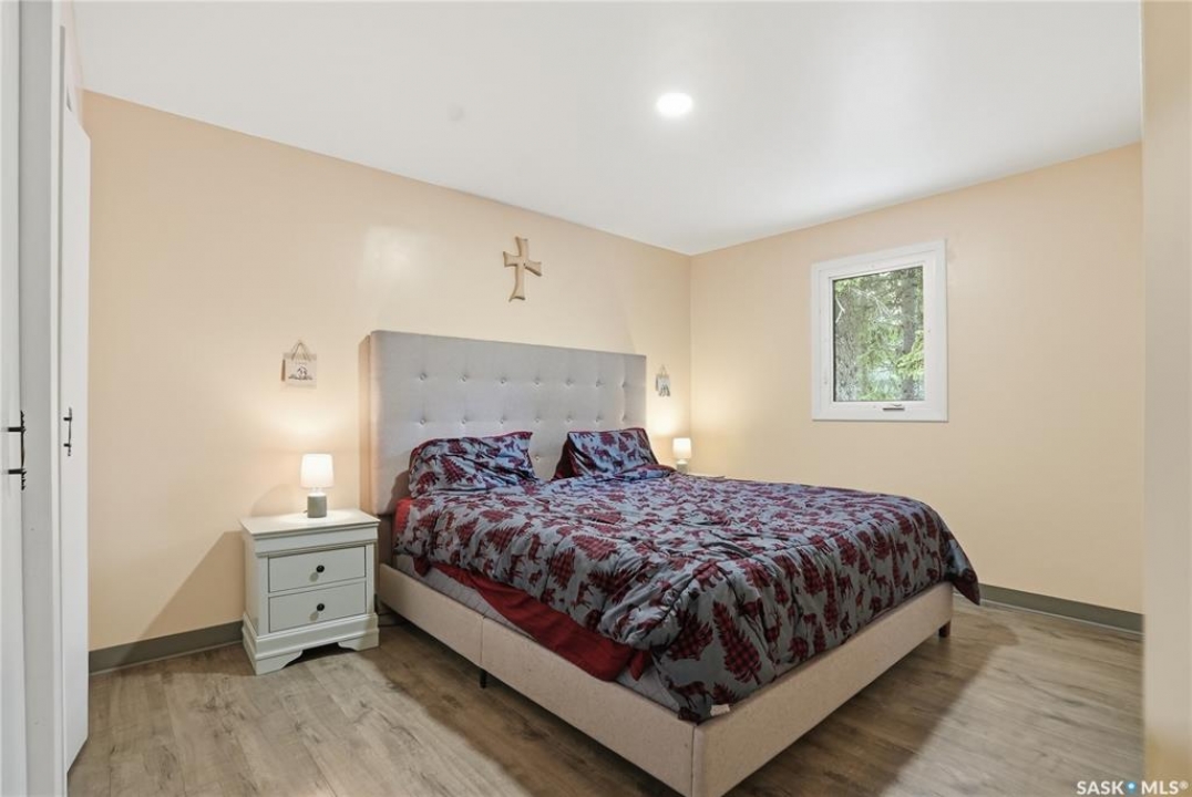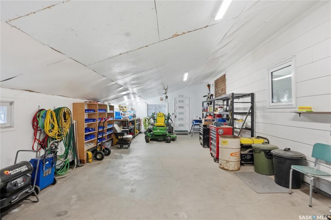 Welcome to this beautifully treed 23.16-acre acreage located just 10 minutes south of Foam Lake, offering privacy, functionality, and peaceful rural living. Surrounded by mature shelterbelt trees, the yard site is incredibly private with open prairie views beyond. The 1,346 sq ft bungalow is move-in ready with numerous updates. Entering through the massive attached garage, you're welcomed into a practical laundry and mudroom area with a newer washer. The main floor features an updated kitchen (2021) with modern finishes and appliances, flowing into the dining area and a bright, spacious living room filled with natural light. Down the hall are two guest bedrooms, a 4-piece bathroom, and a primary bedroom with a 2-piece ensuite. Flooring throughout the main level was updated between 2020 and 2022. The partially finished basement offers a large recreation room, fourth bedroom, 3-piece bathroom, and a versatile den, along with a large utility room, additional storage, and cold storage. Major updates include triple-pane windows (2021), attic insulation (2022), and shingles (2018–2019). Outside, the mature yard is beautifully maintained with expansive lawn space and established trees. The property includes a large quonset at 75ft x 48ft x 14ft tall (concrete foundation with gravel floor, 100amp power with 220v outlet) and two dugouts, ideal for animals or hobby farm use. With natural gas heating, power, a large bore well, and school bus pickup, this acreage offers rural living with everyday convenience.