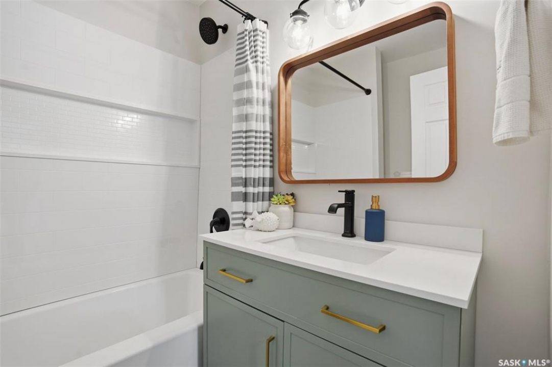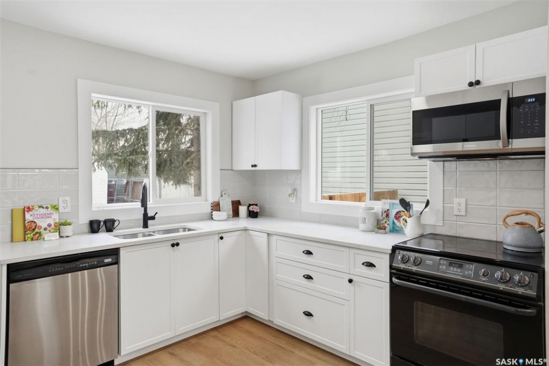 Charming and fully redeveloped 878 sq. ft. character bungalow in the heart of King George! This beautifully updated home blends timeless charm with modern upgrades, offering 3 bedrooms plus a den and 2 full bathrooms. Step inside to an inviting open-concept layout filled with natural light from the abundance of windows. The spacious primary bedroom features patio doors leading to a private front deck with some privacy fencing—perfect for enjoying your morning coffee. The brand-new kitchen is a standout, complete with quartz countertops, stainless steel appliances, a stylish tile backsplash, and a large pantry cabinet, all flowing seamlessly into a generous dining area. The living room showcases a cozy fireplace with a striking accent wall, while the newly finished 4-piece bathroom includes all the modern touches. Extensive upgrades throughout the home include new flooring (carpet, laminate, and vinyl tile), fresh paint, trim, doors, most windows, shingles, siding, electrical (brand new 100amp panel and service), plumbing (newer water and sewer lines from the street), and full basement development. Downstairs offers even more living space with two additional bedrooms, a family room, laundry area, and a beautifully finished bathroom. Outdoor features include a newly built 14x10 treated wood front deck with aluminum railing, a spacious 15x16 back deck, a large 8x16 shed with new siding and shingles, charming picket fencing and a beautifully mature yard for exceptional curb appeal. Located on a quiet street just steps from parks, a pool, waterslides, tennis courts, the river, and walking paths, this home offers both tranquility and convenience.Vacant and move-in ready—this stunning property is waiting for its new owner!