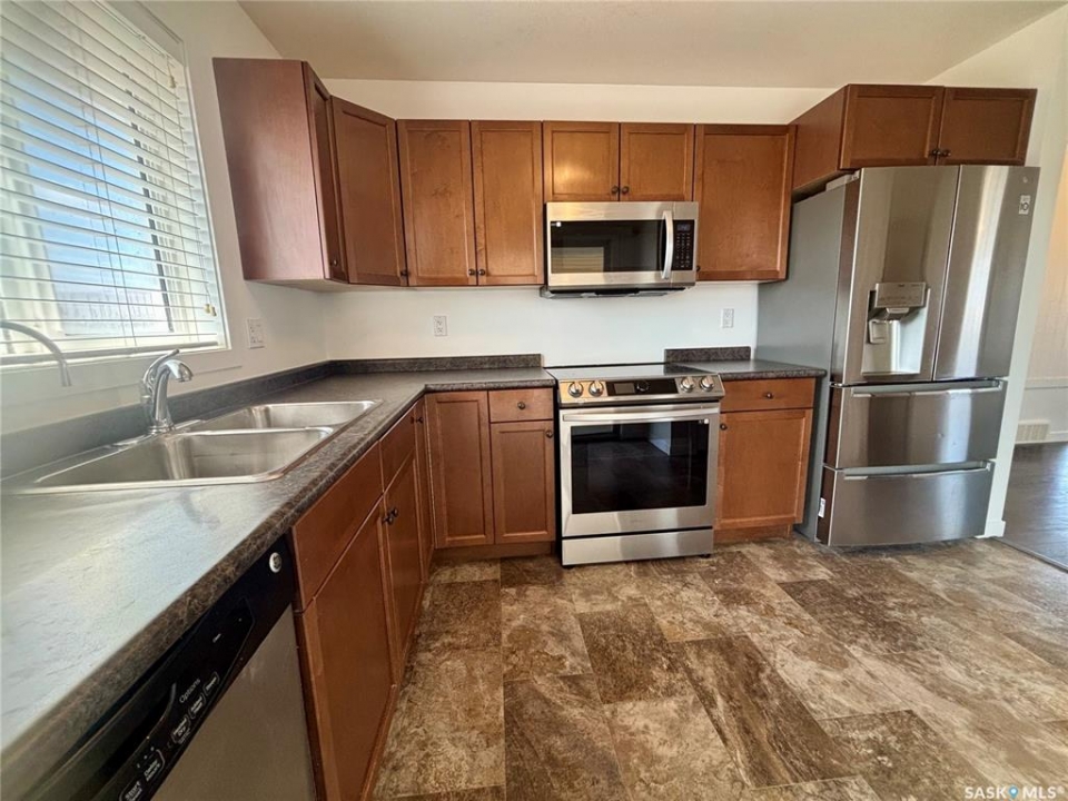 Well-kept top-floor condo in Harbour Landing. This roomy unit provides 1,066 sq ft of cozy living space — and with no neighbors above, you'll appreciate the tranquility of no footsteps overhead. Inside, you'll discover a bright and practical layout featuring an open concept main living area and contemporary kitchen equipped with newer stainless steel appliances; including a refrigerator, stove, dishwasher, and microwave. The high-efficiency furnace and Central A/C enhance efficiency and year round comfort. Additional features include: In-suite laundry for daily convenience and two dedicated parking stalls with guest parking just a few steps away as well. Step outside and you're only minutes from restaurants, coffee shops, grocery stores, parks, and all the amenities that Harbour Landing has to offer.