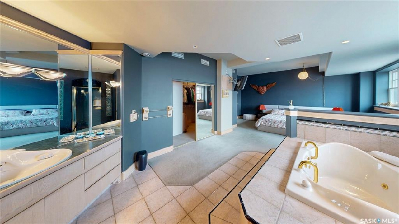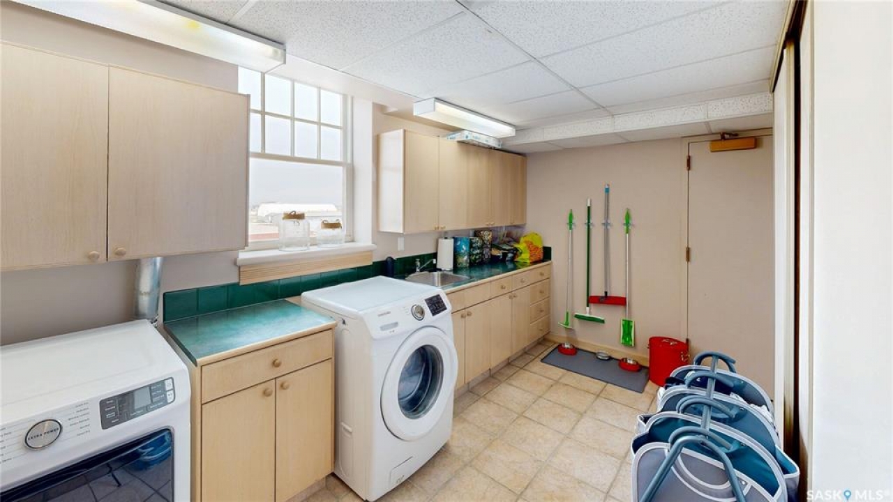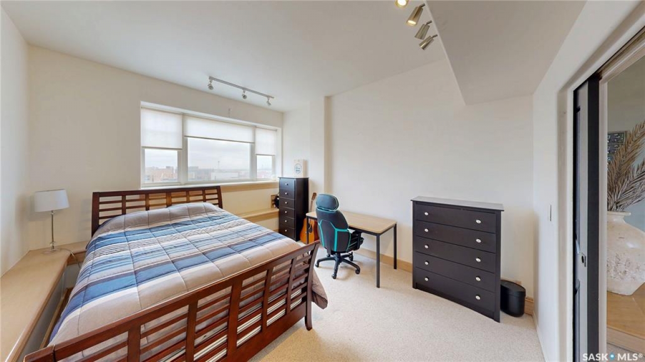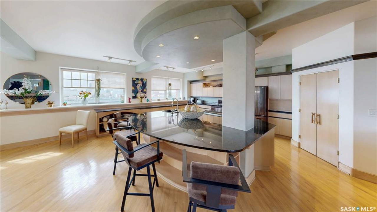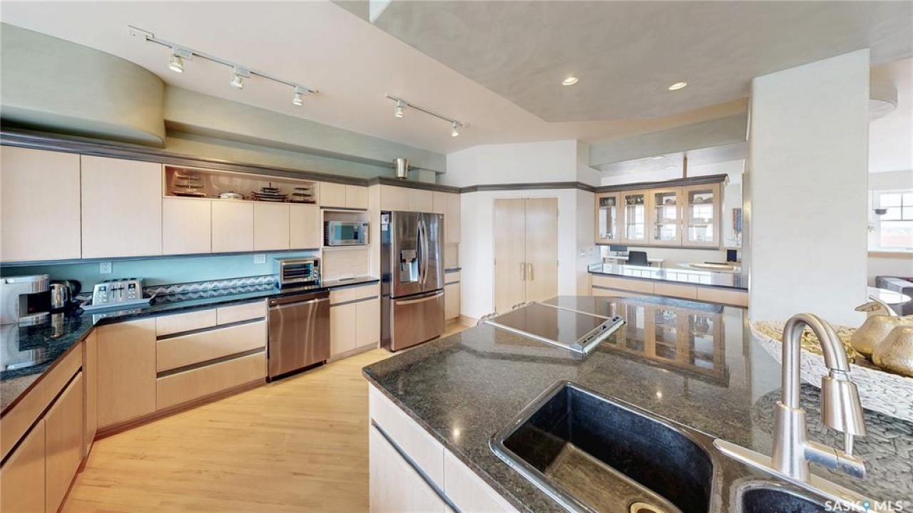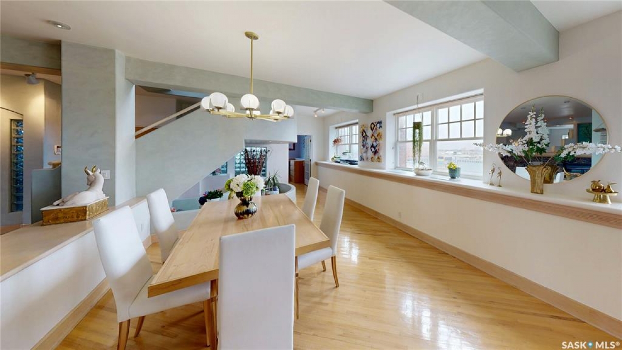Welcome to Unit 400, the penthouse suite at 1150 Rose Street located in the vibrant Warehouse district. This 1913 built, 4917 square foot, apartment style warehouse condo has 5 bedrooms, 2 bathrooms and the grounds are completely gated. One of the most exceptional and rare highlights of this unit is the abundance of private parking spaces! There are 4 parking spots in the 56'x30' quadruple, detached, heated garage, 6 on the parking pad in front of the garage and 2 more on the side of the building! Upon entering this suite, you are welcomed into the foyer that opens into the family room with bright windows, a stone-surround wood burning fireplace and hardwood floors. The kitchen has a massive island with bar seating and the stainless steel fridge, stove, dishwasher, and garburator are all included. The open concept flows into the adjacent dining area. To the side is a versatile bedroom that also makes a wonderful office. On the opposite side of the stone fireplace, you'll find an expansive living room, offering a perfect balance of comfort and style. This area is complimented by a bedroom on one end and a cozy den on the other. The luxurious primary bedroom is spacious with a 5 piece en-suite bathroom featuring a huge bathtub, double vanity, glass shower and walk-in closet! Following that are two more bedrooms and the main 4 piece bathroom. Finishing off this level is the laundry room with tile flooring, plenty of extra storage space, a convenient wash sink, and a folding table. There is also access to the freight elevator. On the second level is a fabulous bonus room with wrap around windows, a wet bar with tile backsplash and access to your very own private rooftop deck! The ultimate spot to soak up the sun during the day and gather around the fire table with family and friends in the evening. Additional features include central air, the owned forced air boiler, gas water heater, water softener, RO system and both elevator and stair access.