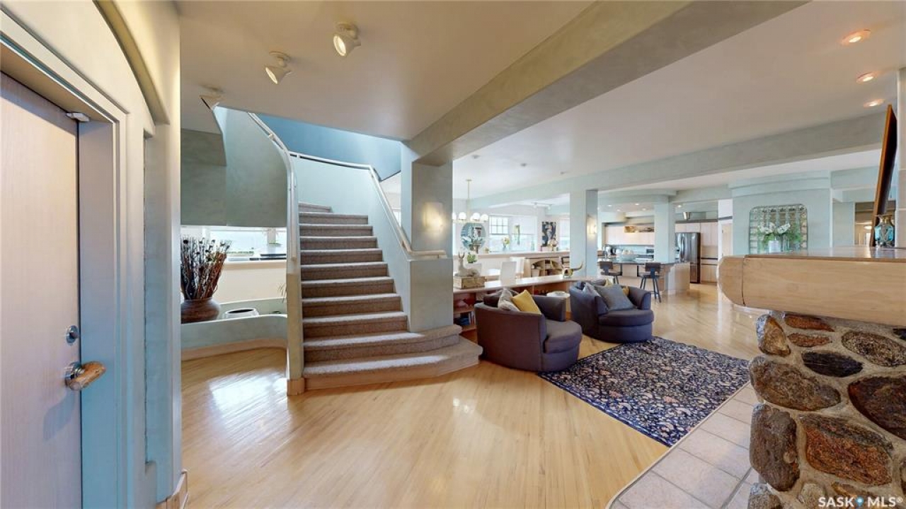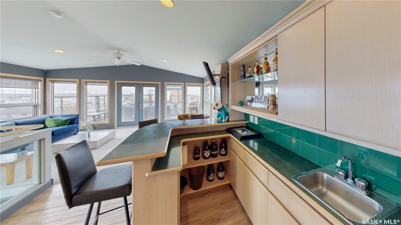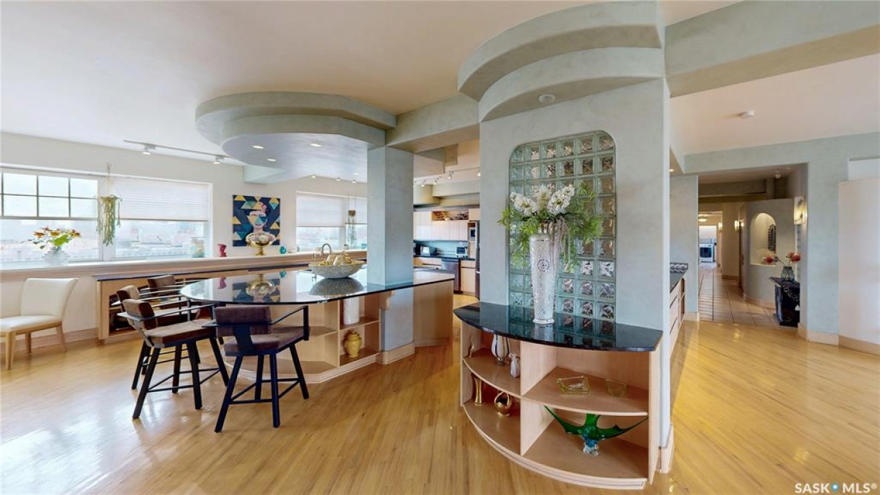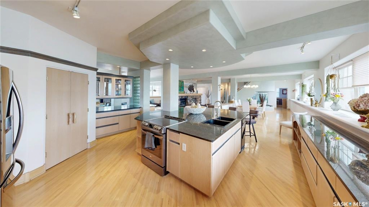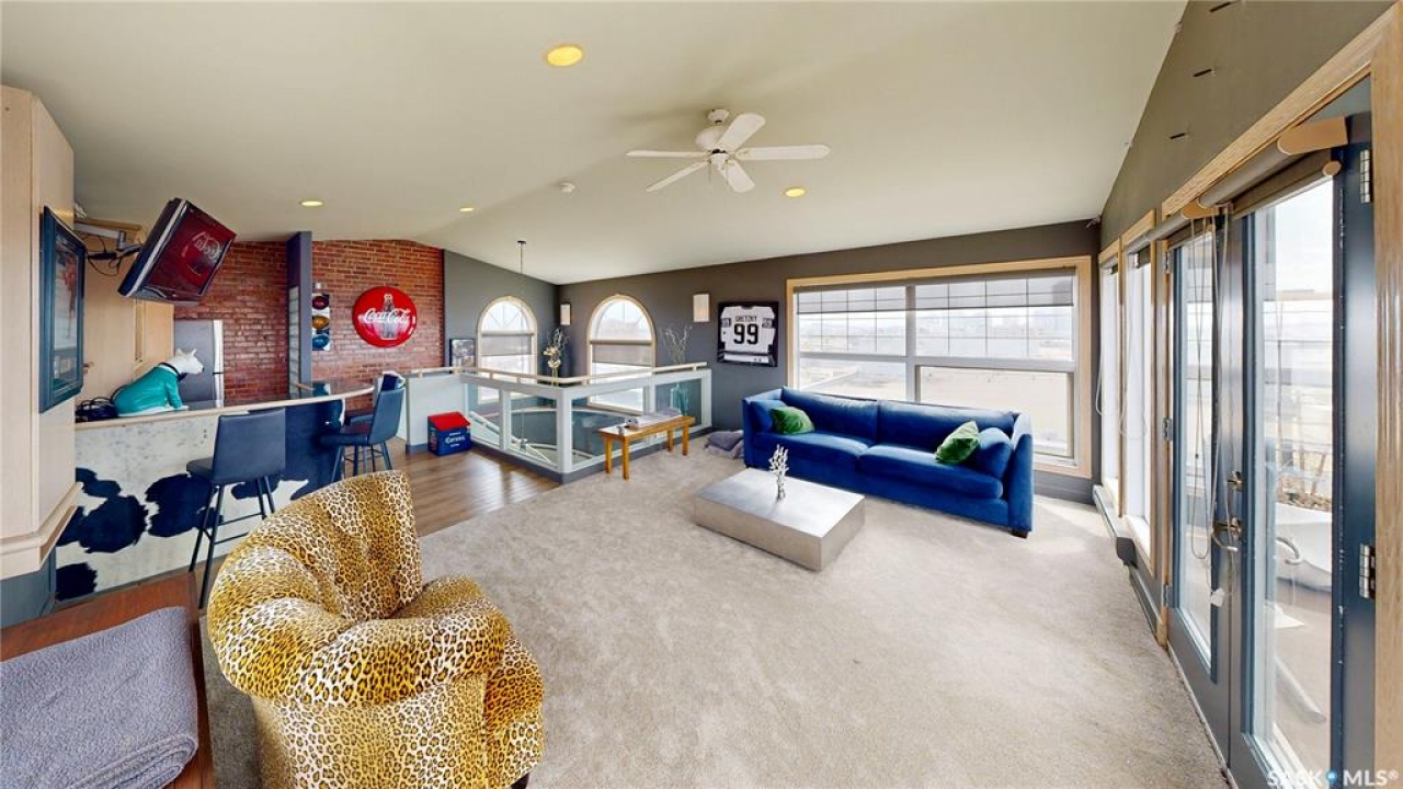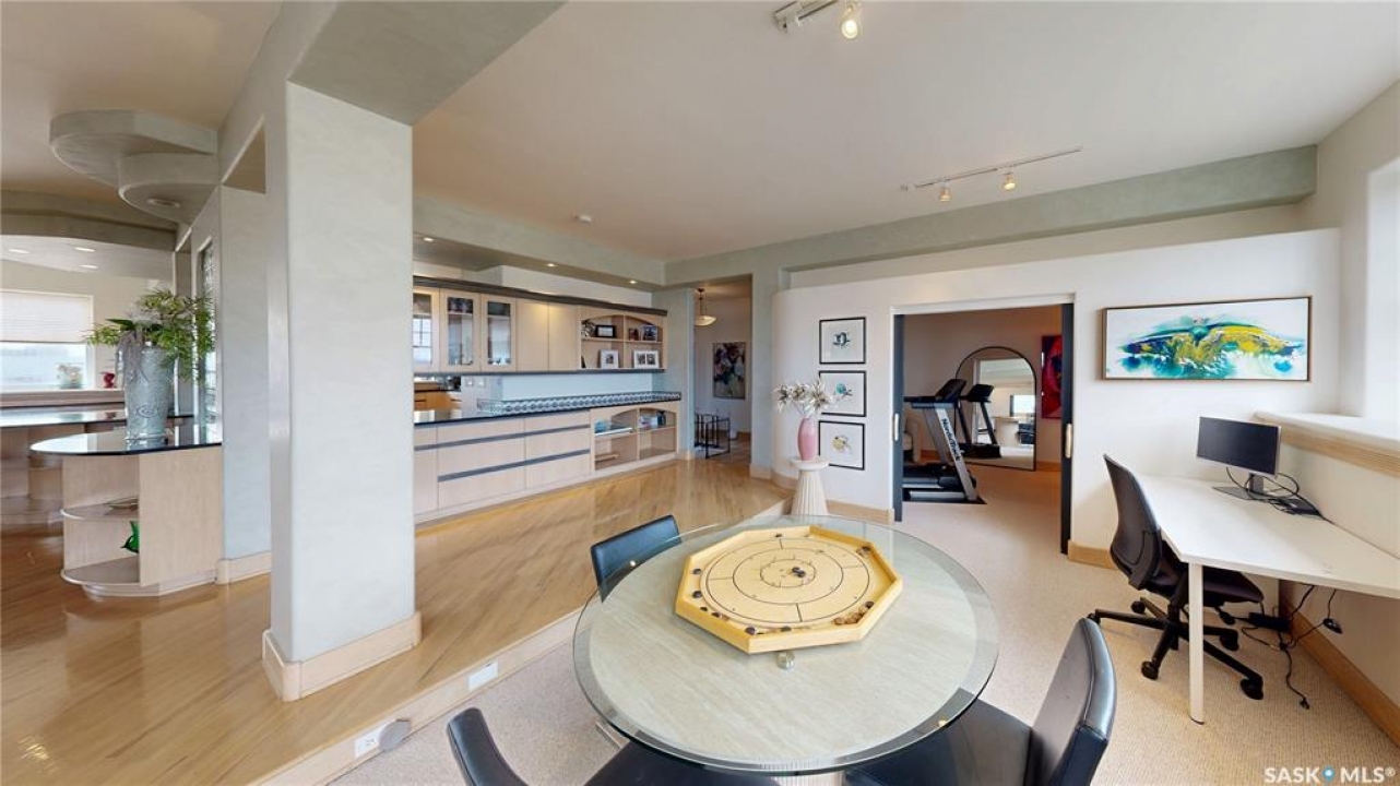Welcome to Unit 400, the penthouse suite at 1150 Rose Street located in the vibrant Warehouse district. This 1913 built, 4917 square foot, apartment style warehouse condo has 5 bedrooms, 2 bathrooms and the grounds are completely gated. One of the most exceptional and rare highlights of this unit is the abundance of private parking spaces! There are 4 parking spots in the 56'x30' quadruple, detached, heated garage, 6 on the parking pad in front of the garage and 2 more on the side of the building! Upon entering this suite, you are welcomed into the foyer that opens into the family room with bright windows, a stone-surround wood burning fireplace and hardwood floors. The kitchen has a massive island with bar seating and the stainless steel fridge, stove, dishwasher, and garburator are all included. The open concept flows into the adjacent dining area. To the side is a versatile bedroom that also makes a wonderful office. On the opposite side of the stone fireplace, you'll find an expansive living room, offering a perfect balance of comfort and style. This area is complimented by a bedroom on one end and a cozy den on the other. The luxurious primary bedroom is spacious with a 5 piece en-suite bathroom featuring a huge bathtub, double vanity, glass shower and walk-in closet! Following that are two more bedrooms and the main 4 piece bathroom. Finishing off this level is the laundry room with tile flooring, plenty of extra storage space, a convenient wash sink, and a folding table. There is also access to the freight elevator. On the second level is a fabulous bonus room with wrap around windows, a wet bar with tile backsplash and access to your very own private rooftop deck! The ultimate spot to soak up the sun during the day and gather around the fire table with family and friends in the evening. Additional features include central air, the owned forced air boiler, gas water heater, water softener, RO system and both elevator and stair access.