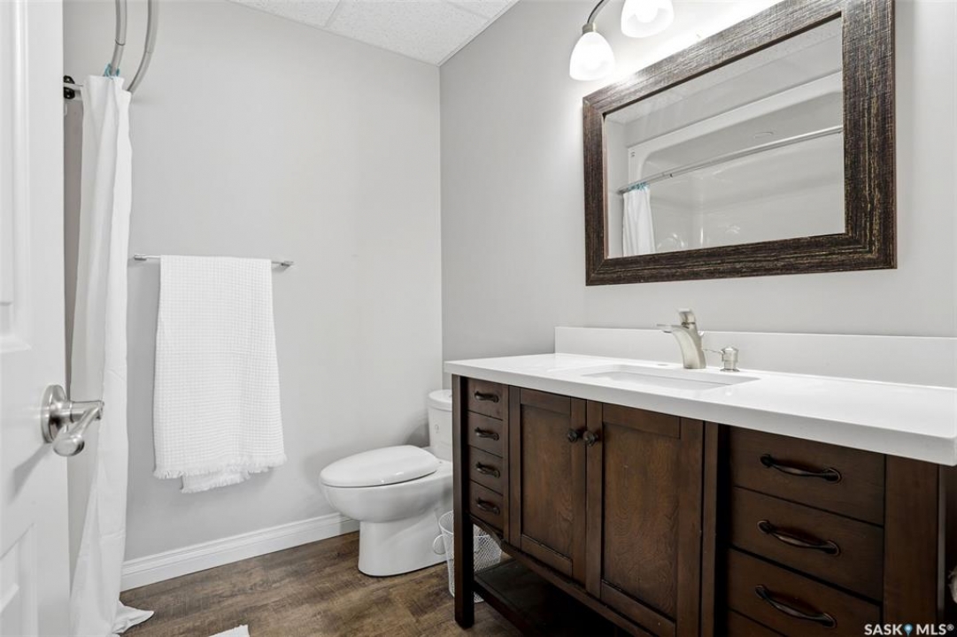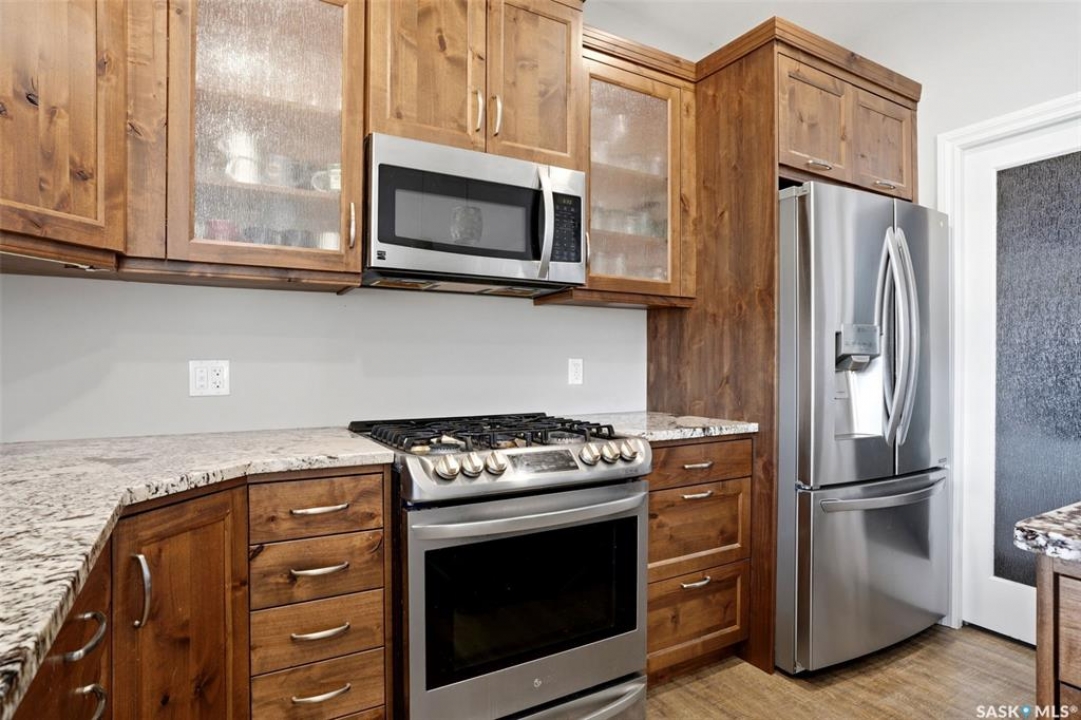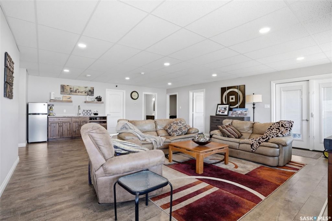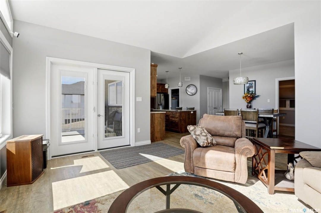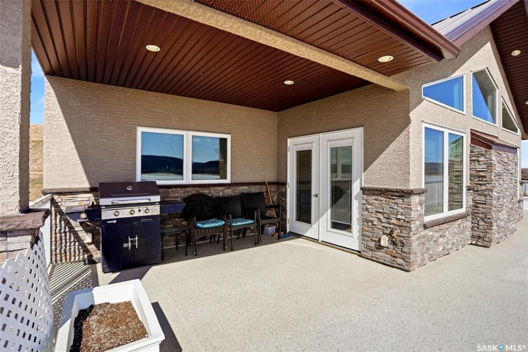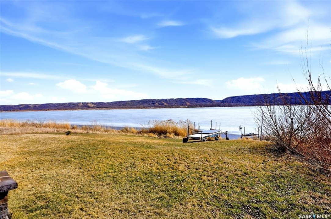 Lakefront living on beautiful Pasqua Lake with panoramic water views from nearly every living space! This thoughtfully designed walkout bungalow offers 1,566 sq. ft. above grade on a 0.22-acre waterfront lot with direct lake access, a double attached garage, & exceptional energy-conscious features including solar panels, backup generator, & 200-amp electrical. Exterior is finished in stucco with a durable metal roof, while the insulated double attached garage includes metal cladding, floor drain, & plumbing in place for future in-floor heat. A mudroom connects the garage to the home & is also finished with metal cladding for durability. Inside, the custom-built kitchen is designed for both function & entertaining, featuring a large island, granite countertops, soft-close cabinetry, pantry, stainless steel appliances, built-in dishwasher, gas stove, microwave, fridge, & freezer included. The main floor offers 3 bedrooms, including a spacious primary retreat with abundant natural light, walk-in closet, and generous 3-pc ensuite. A dedicated main floor laundry room & an additional 4-pc bathroom complete the level. The living room is framed by expansive windows that fully capture the lakefront setting, anchored by an electric fireplace & offering 2 separate accesses to the upper deck overlooking the water. The walkout lower level continues the lake views with a large family room featuring a natural gas fireplace, wet bar, in-floor heat, & 2 separate sets of French doors leading directly to the lower lakeside patio. This level also includes 2 additional bedrooms, a den ideal for a home office or exercise room with lake views, storage room, utility room, & extensive mechanical systems including pumps, water filtration, on-demand hot water, & natural gas forced-air heating. Gravel driveway, storage shed, excellent storage throughout, & a layout designed to fully embrace lake life make this an outstanding year-round property!