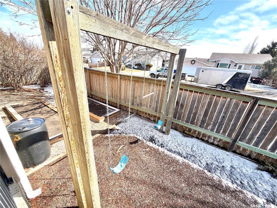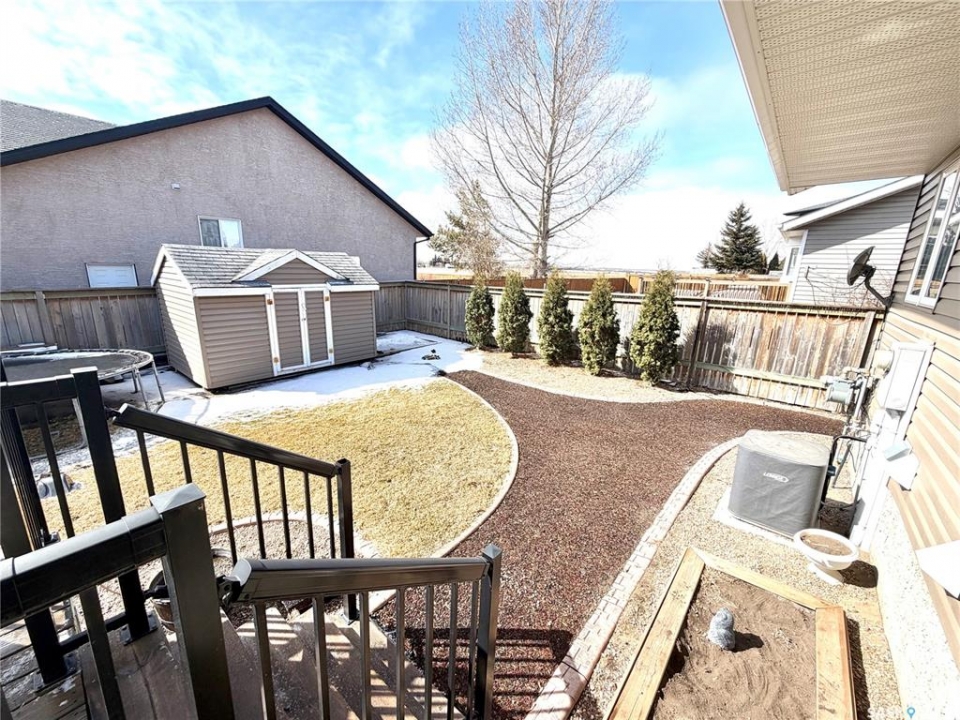 Here's the perfect family home you've been waiting for in sought after Battleford! This home has so much to offer with five bedrooms, three bathroom and a double attached garage with additional RV parking. There is a charming verandah off the front entry, with a spacious front closet once you enter. The living room is bright and inviting with hardwood floors and a natural gas fireplace. The main area of the home has an ideal open layout. The kitchen has a convenient corner pantry and plenty of counter space. The dining room has garden doors leading to the deck with a natural gas connection for BBQ, a lovely landscaped yard and custom swing set, garden beds, a fire pit and storage shed. There are three bedrooms on the main with the primary featuring a full 4 piece ensuite. Downstairs there is a generous sized recreation room, two large bedrooms and a spacious 3 piece bath. There is a combined laundry/ storage area with plenty of space for storing all your items. The double attached garage has high ceilings allowing for extra storage for bikes. The shingles are being replaced in immediate future estimated between May/June 2026. With all these features an amazing location don't delay on booking your own personal viewing.
