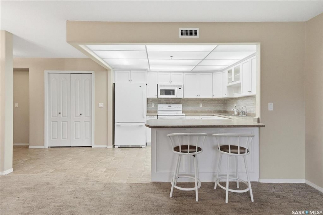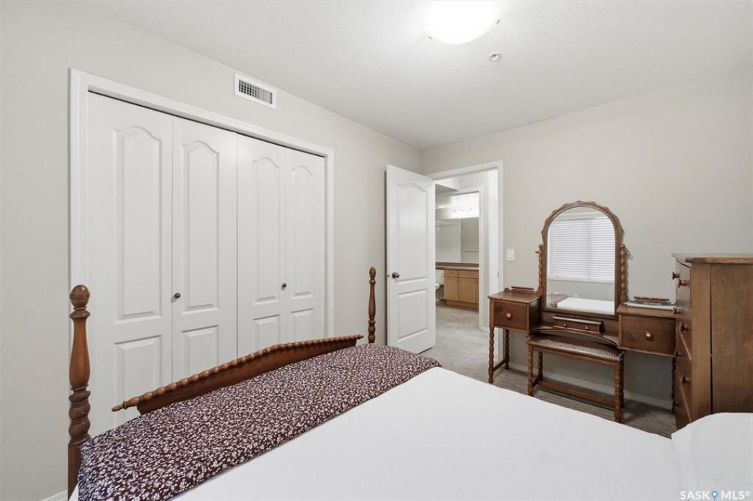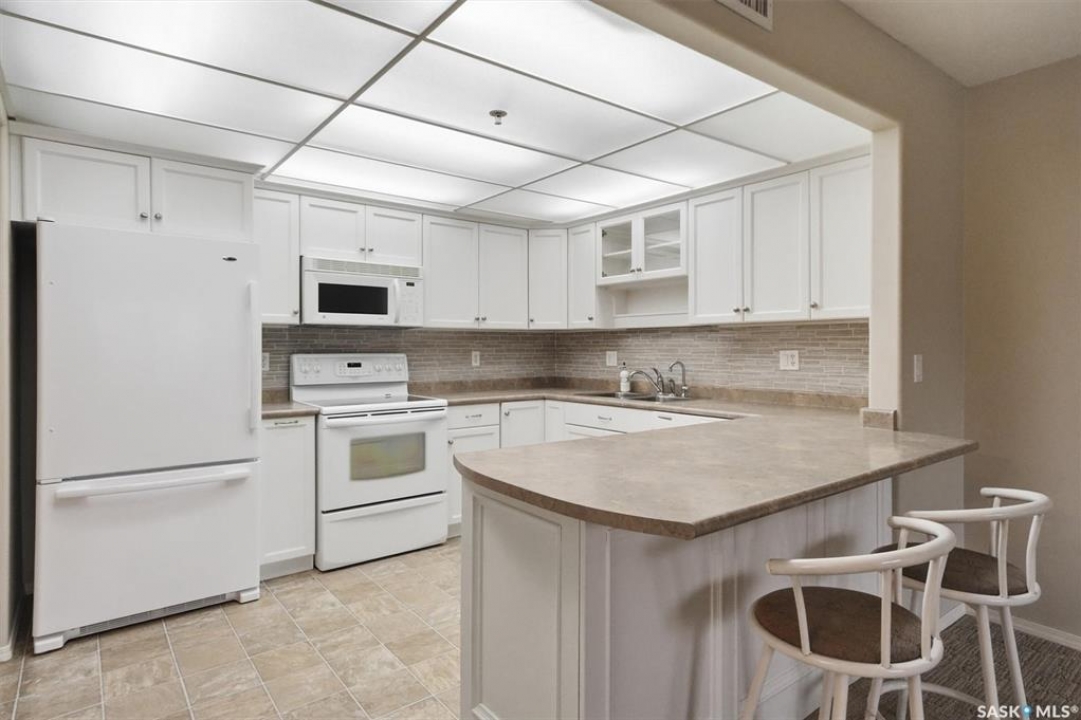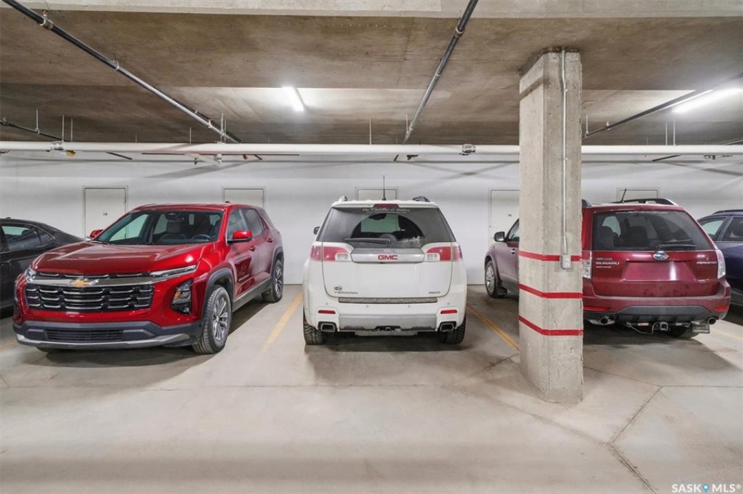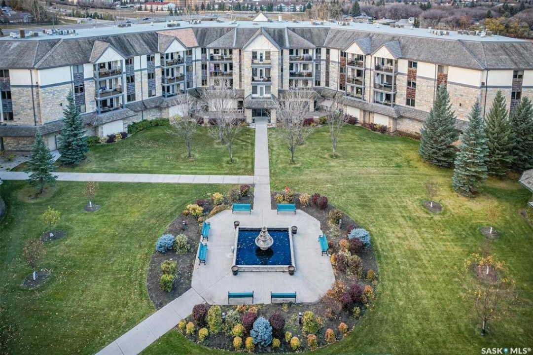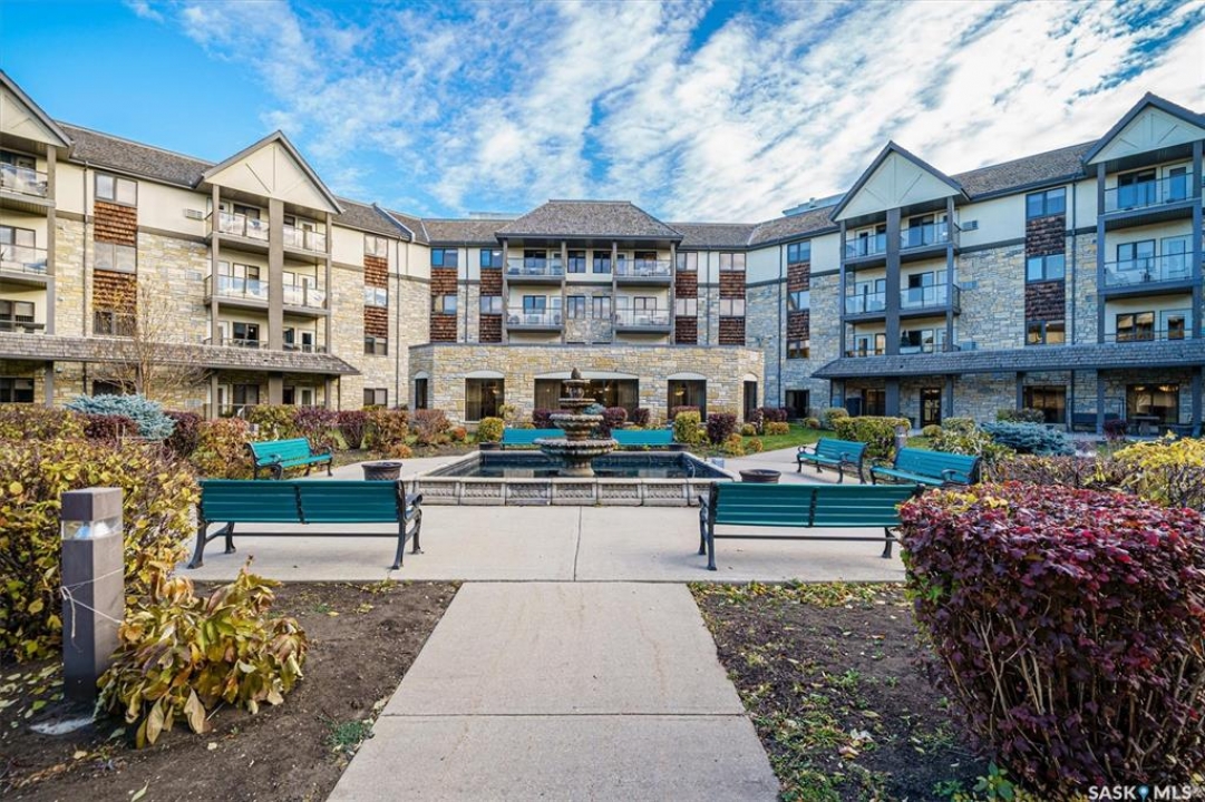 EMMANUEL VILLAGE - SPACIOUS 1246 sq. ft. open concept 2 bedroom 2 bath condo with ground level heated indoor parking! PRIDE OF OWNERSHIP is evident in the pre-possession changes made to the unit by the original owner and the and the meticulous care they have taken of the property since moving in. The kitchen is wide open to the living area of the unit. The wall which created two doorways (foyer to kitchen and kitchen to living area) was removed and the kitchen was re-designed adding cabinets and the expanded counter with eating bar. The generous living room provides access to the private, covered balcony which has a natural gas hook-up for the bbq and an electrical plug-in. Picture yourself enjoying the morning sun and that first cup of coffee as you prepare for the day. The primary bedroom is very spacious, it's angle wall design creates numbers of furniture placement options, while the luxurious walk-in closet (identified as 'other' in the room list) and spacious 3 piece ensuite bath complete with 60" shower may make it a challenge to get to the deck. The second bedroom and full bath will make hosting occasional guests a pleasure. The laundry room is large enough to accommodate an office area, craft area, or just use it for your freezer and storage. The unit comes with stacking washer /dryer, fridge, stove and a central air-conditioning unit. One of the excellent features of the complex is the ground level fully enclosed parking garage. Parking stall 17 has one of the largest personal storage rooms in the complex. The community gathers for coffee and special events in the social room which features a kitchenette, dining tables, shuffleboard & pool tables, a piano, puzzle table, washrooms, plus access to the courtyard with its relaxing water feature, patio and sitting areas. The building is wheelchair accessible with plenty of visitor parking. Contact your Real Estate Professional to view. DELAYED OFFER LISTING. OFFERS WILL BE PRESENTED APRIL 20TH AT 2 PM