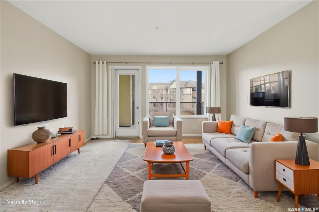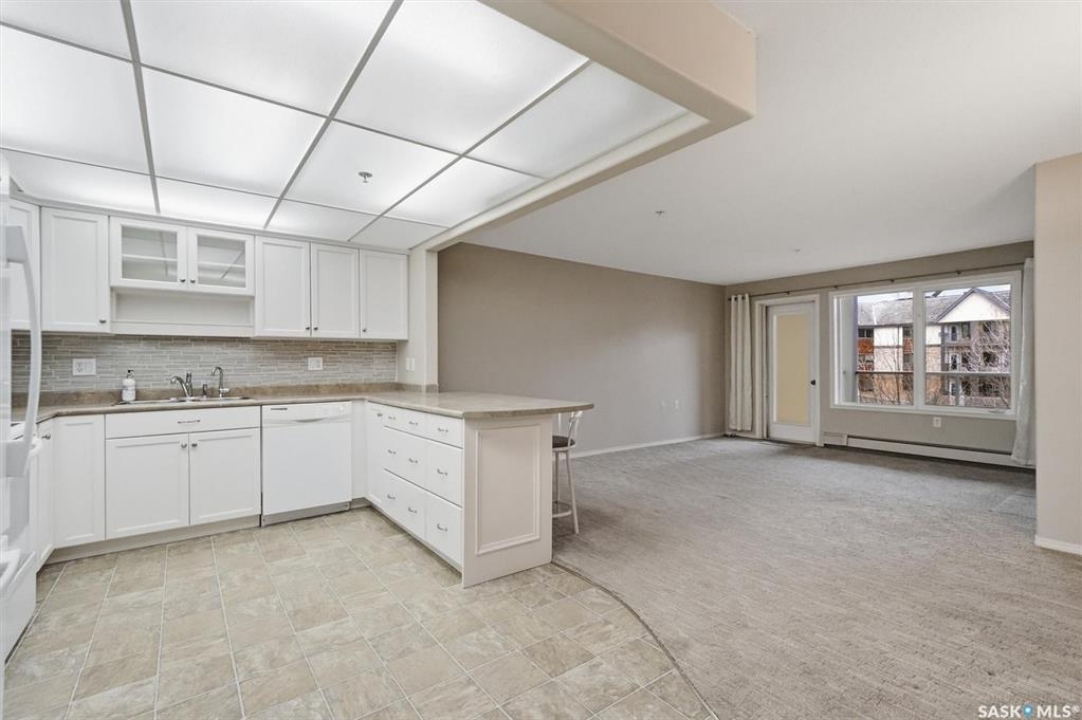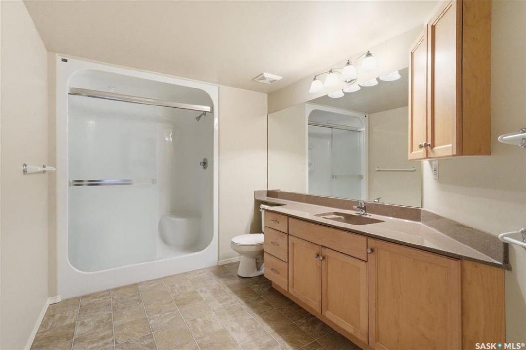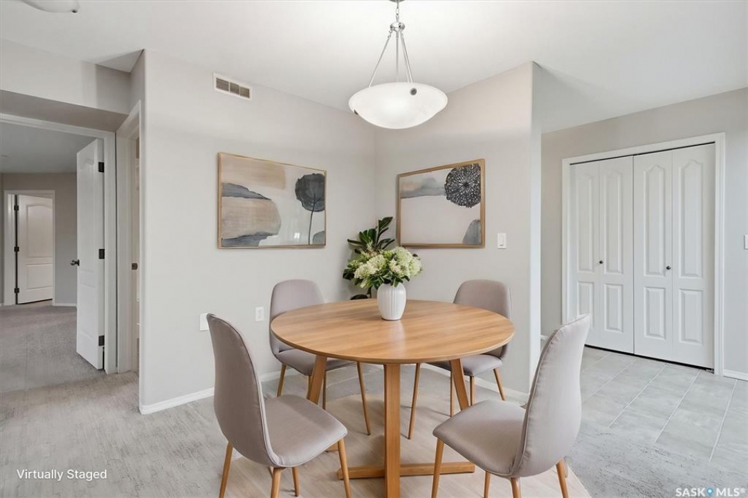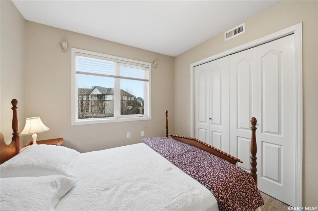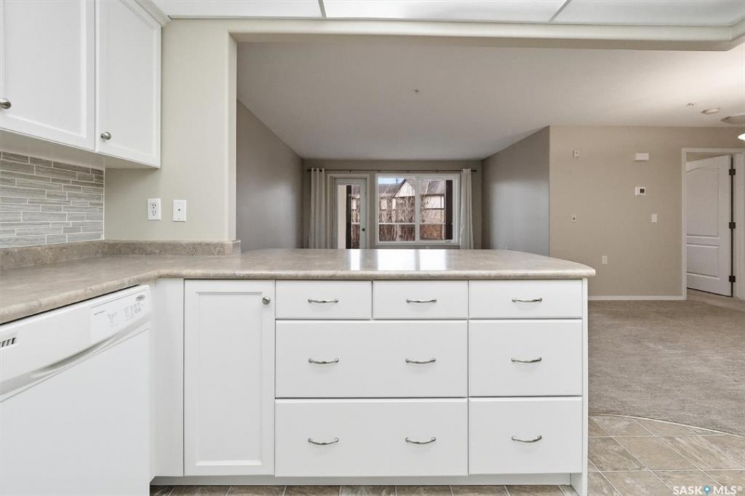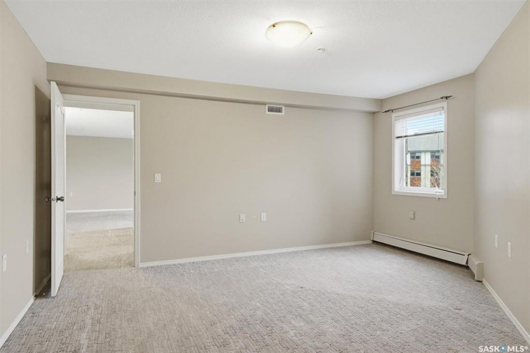 EMMANUEL VILLAGE - SPACIOUS 1246 sq. ft. open concept 2 bedroom 2 bath condo with ground level heated indoor parking! PRIDE OF OWNERSHIP is evident in the pre-possession changes made to the unit by the original owner and the and the meticulous care they have taken of the property since moving in. The kitchen is wide open to the living area of the unit. The wall which created two doorways (foyer to kitchen and kitchen to living area) was removed and the kitchen was re-designed adding cabinets and the expanded counter with eating bar. The generous living room provides access to the private, covered balcony which has a natural gas hook-up for the bbq and an electrical plug-in. Picture yourself enjoying the morning sun and that first cup of coffee as you prepare for the day. The primary bedroom is very spacious, it's angle wall design creates numbers of furniture placement options, while the luxurious walk-in closet (identified as 'other' in the room list) and spacious 3 piece ensuite bath complete with 60" shower may make it a challenge to get to the deck. The second bedroom and full bath will make hosting occasional guests a pleasure. The laundry room is large enough to accommodate an office area, craft area, or just use it for your freezer and storage. The unit comes with stacking washer /dryer, fridge, stove and a central air-conditioning unit. One of the excellent features of the complex is the ground level fully enclosed parking garage. Parking stall 17 has one of the largest personal storage rooms in the complex. The community gathers for coffee and special events in the social room which features a kitchenette, dining tables, shuffleboard & pool tables, a piano, puzzle table, washrooms, plus access to the courtyard with its relaxing water feature, patio and sitting areas. The building is wheelchair accessible with plenty of visitor parking. Contact your Real Estate Professional to view. DELAYED OFFER LISTING. OFFERS WILL BE PRESENTED APRIL 20TH AT 2 PM