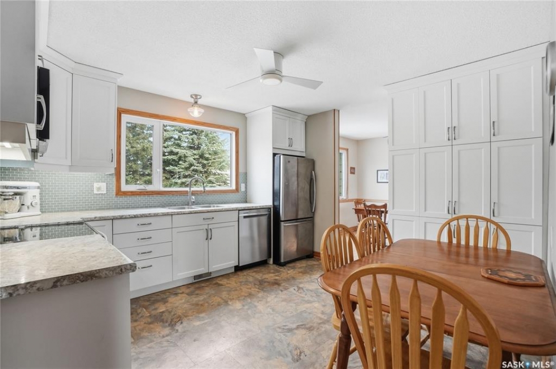 Welcome to 2338 Easthill, ideally located in Saskatoon's desirable Eastview neighbourhood! Known for its family-friendly atmosphere, Eastview is home to elementary schools, with nearby high schools, as well as convenient access to shopping and a wide range of amenities. This two-storey home with a single attached garage sits across from a green space berm—offering added privacy with no neighbours directly across the street. The main floor features hardwood flooring, a spacious living room, and a dedicated dining area, along with a large, bright kitchen—perfect for everyday living and entertaining. A convenient main floor laundry area and 2-piece bathroom complete the level. Upstairs, you'll find four bedrooms and a full 4-piece bathroom—ideal for growing families. The basement offers additional living space with a cozy family room, den, 4-piece bathroom, and ample mechanical/storage space. This long-time family home has been well cared for, deeply loved, and is ready for its next owners to create lasting memories.