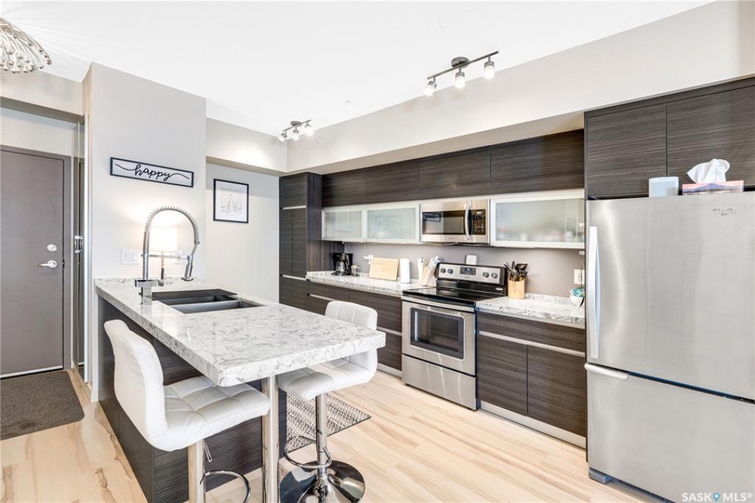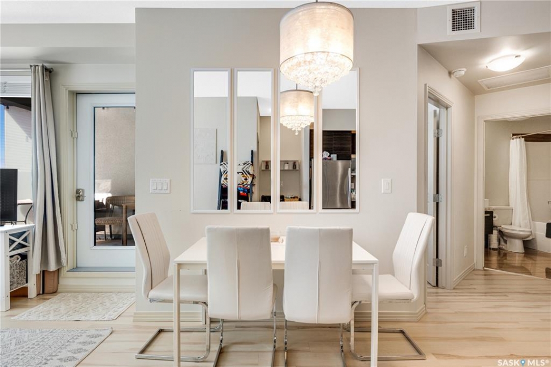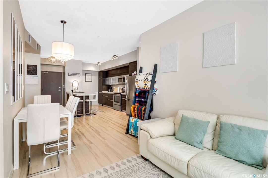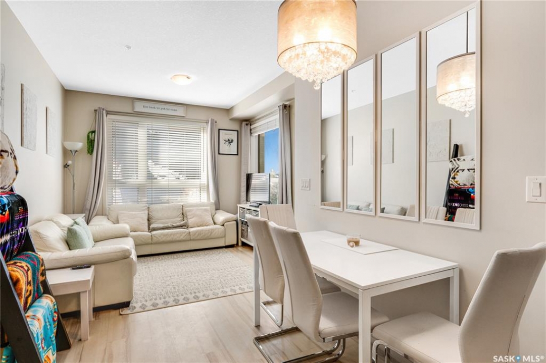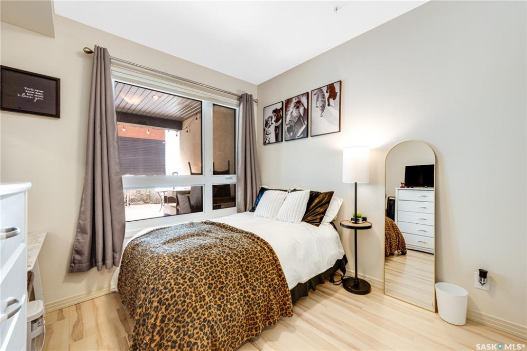 Welcome to 104 - 223 Evergreen Square, an exceptional residence in one of Saskatoon's most sought-after east side communities. Built by Meridian Developments, this thoughtfully designed 900 sq. ft. unit offers a seamless blend of modern finishings, functional layout, and everyday convenience. This bright and airy 2-bedroom, 2-bathroom home features an open-concept design that maximizes natural light throughout the living space. The kitchen is both stylish and practical, complete with quartz countertops, stainless steel appliances, and ample cabinetry, perfectly suited for both daily living and entertaining. The well-separated bedrooms provide privacy and comfort, while the primary suite offers a clean, well-appointed ensuite. In-suite laundry adds to the ease of living. One of the standout features of this home is the ground-level patio with private gate access, ideal for those with an active lifestyle, allowing for effortless coming and going for walks, bike rides, or simply enjoying the surrounding green space. Additional highlights include underground parking and a well-maintained building in a location that continues to see strong demand. Just steps to parks, walking paths, and nearby amenities, with easy access to University Heights shopping and key commuter routes. A turn-key opportunity in Evergreen that delivers on lifestyle, quality, and long-term value.