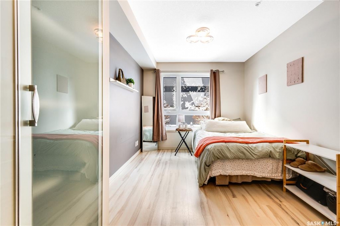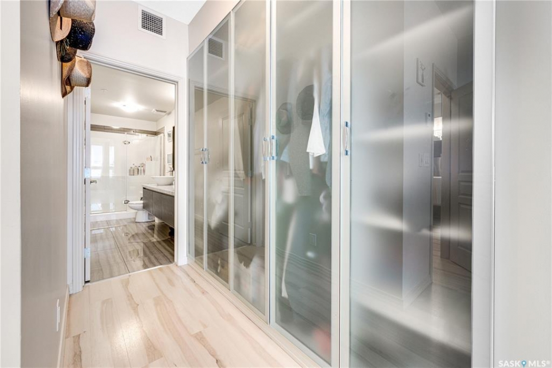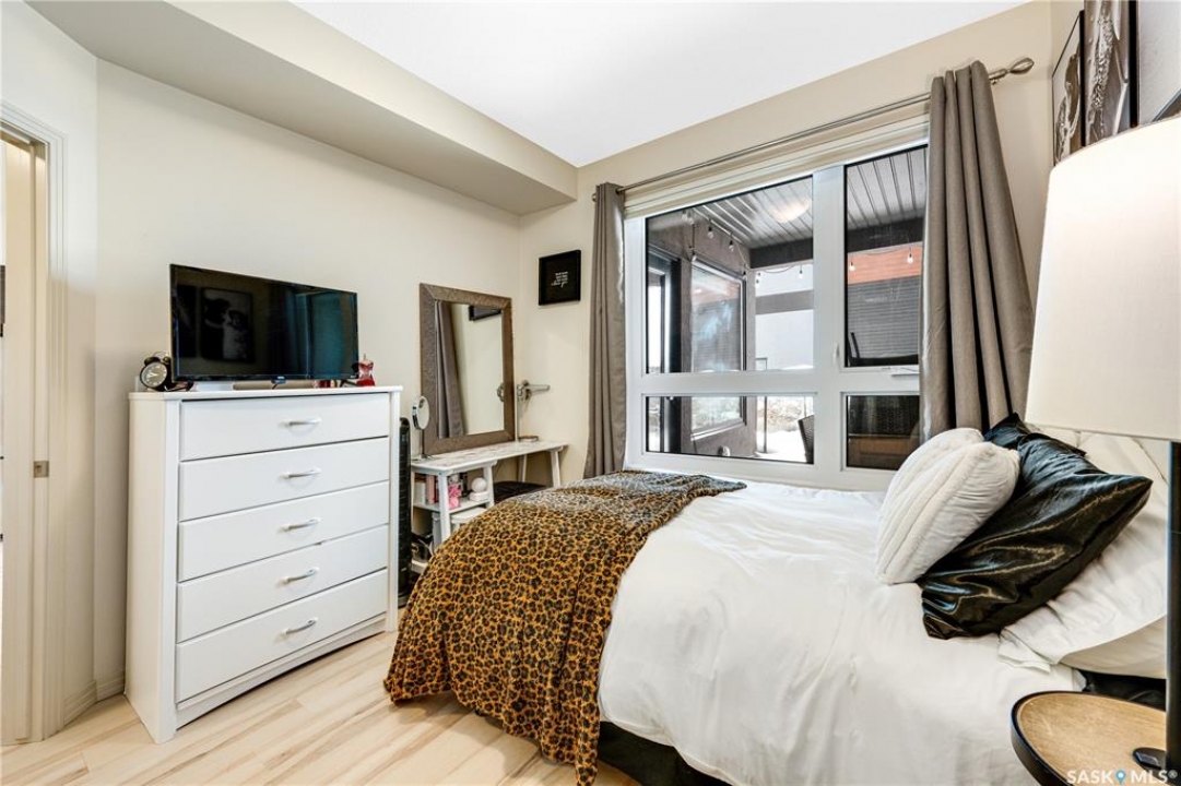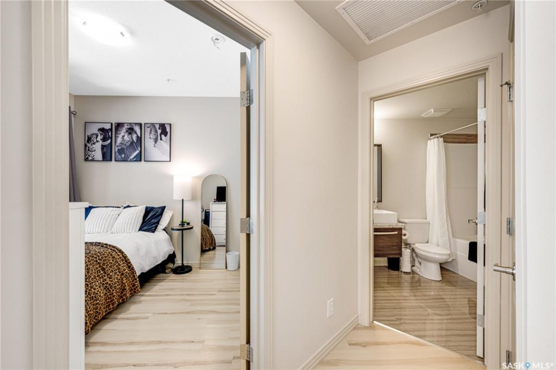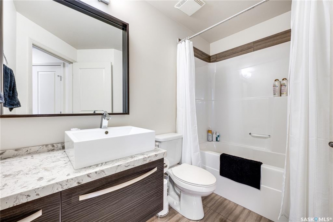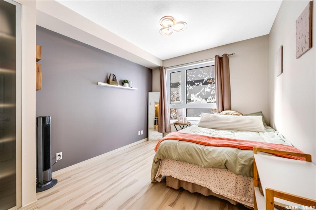 Welcome to 104 - 223 Evergreen Square, an exceptional residence in one of Saskatoon's most sought-after east side communities. Built by Meridian Developments, this thoughtfully designed 900 sq. ft. unit offers a seamless blend of modern finishings, functional layout, and everyday convenience. This bright and airy 2-bedroom, 2-bathroom home features an open-concept design that maximizes natural light throughout the living space. The kitchen is both stylish and practical, complete with quartz countertops, stainless steel appliances, and ample cabinetry, perfectly suited for both daily living and entertaining. The well-separated bedrooms provide privacy and comfort, while the primary suite offers a clean, well-appointed ensuite. In-suite laundry adds to the ease of living. One of the standout features of this home is the ground-level patio with private gate access, ideal for those with an active lifestyle, allowing for effortless coming and going for walks, bike rides, or simply enjoying the surrounding green space. Additional highlights include underground parking and a well-maintained building in a location that continues to see strong demand. Just steps to parks, walking paths, and nearby amenities, with easy access to University Heights shopping and key commuter routes. A turn-key opportunity in Evergreen that delivers on lifestyle, quality, and long-term value.