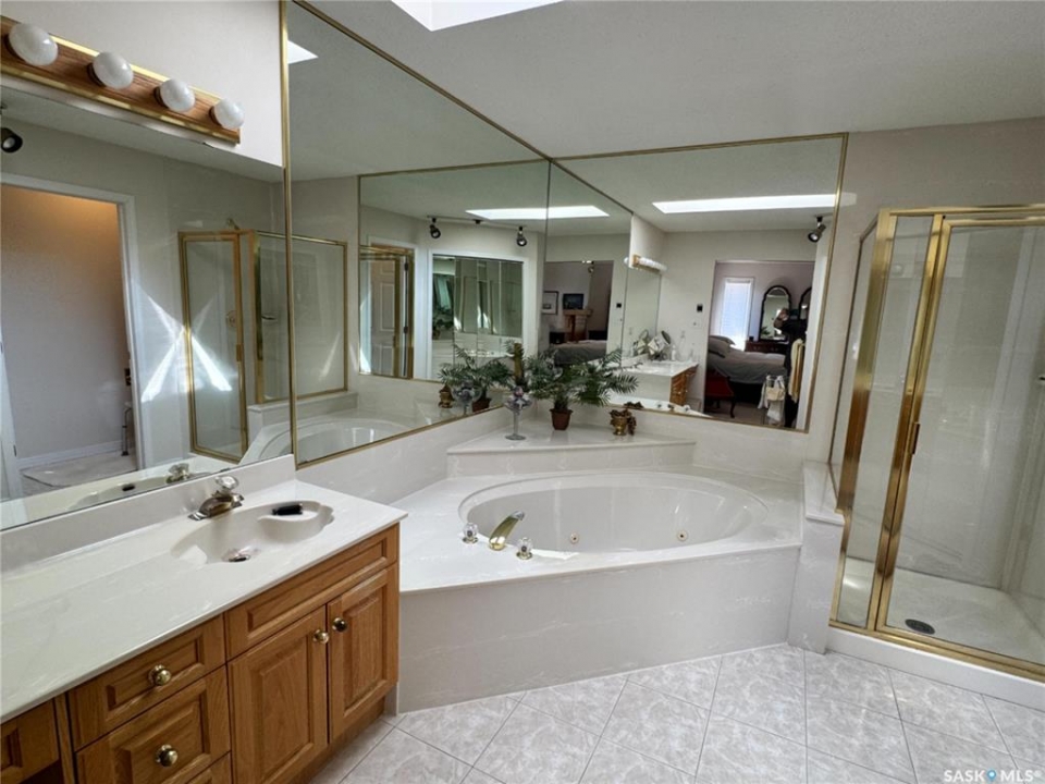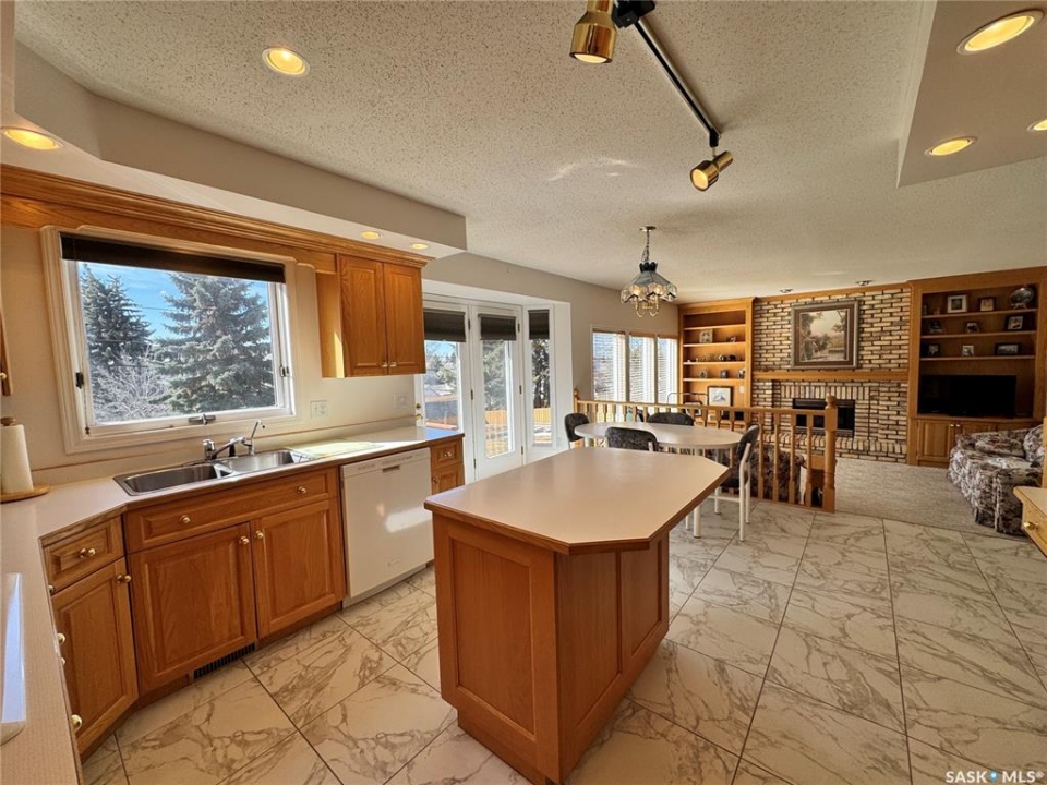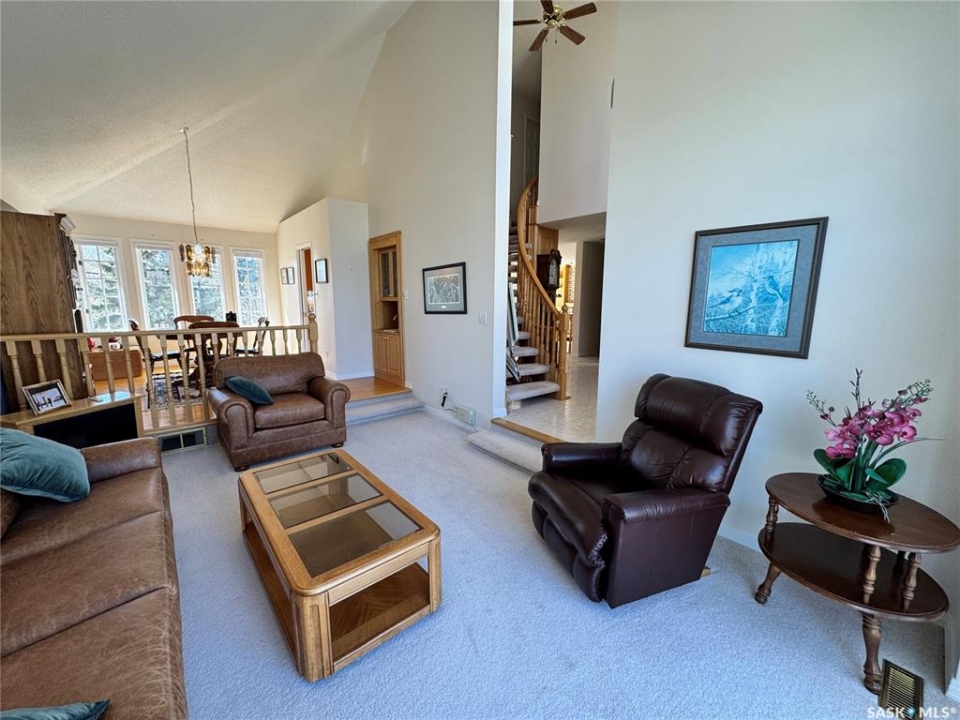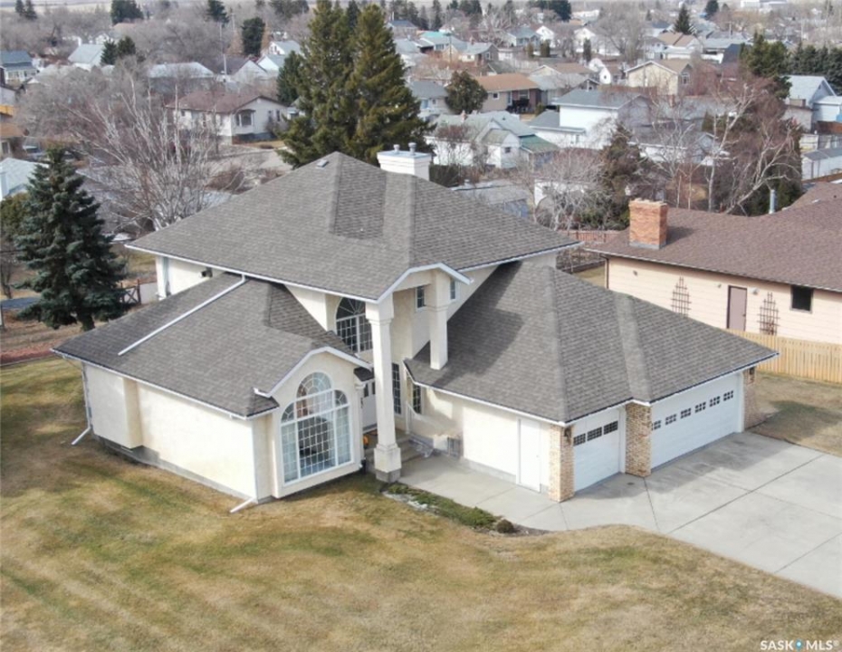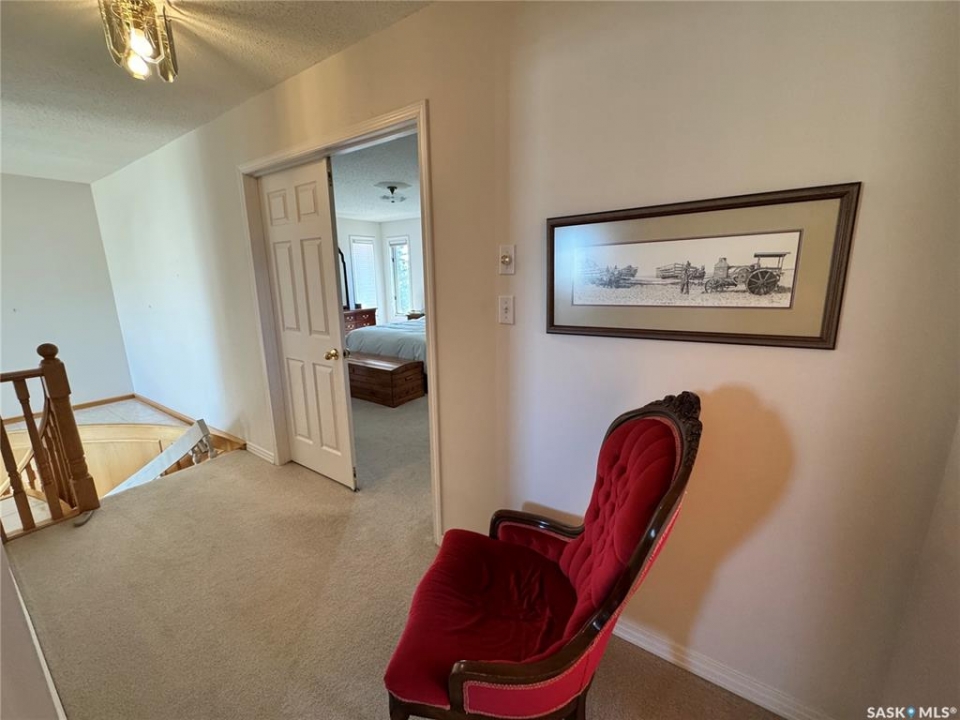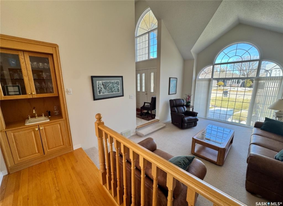 Step into a home that truly makes a statement from the moment you arrive. A grand foyer welcomes you in, highlighted by a stunning vaulted ceilings and a winding oak staircase that sets the tone for the rest of the home. The well-designed main floor blends comfort and entertaining. The bright, south-facing kitchen features garden doors to a deck overlooking the expansive backyard. A step down, the inviting family room offers a natural gas fireplace framed by built-in bookshelves and peaceful backyard views. On the opposite side of the kitchen, a pocket door leads to the formal dining room—perfect for gatherings—complete with a wet bar. A step down brings you to the impressive living room with vaulted ceilings. The main floor also includes a private den with double glass doors, a two-piece bath, and laundry with direct access to the triple attached garage. Upstairs, the staircase leads to two bedrooms, a full four-piece bath, and an exceptional primary suite featuring a natural fireplace, mirrored walk-in closet, and a spa-like ensuite with water closet, standalone shower, corner jacuzzi tub, and dedicated makeup area – A space that feels like your own private spa The developed basement adds versatility with a spacious rec room, three-piece bath, den/office, utility room, and storage. Situated on a spacious corner lot, the property features mature trees, underground sprinklers, a large deck, paving stone patio, and triple driveway. Ideally located just two blocks from schools and one block from Main Street, this home offers the perfect balance of convenience and a quiet, family-friendly neighborhood. If you've been waiting for the perfect upgrade or your family's next dream home—this is one you won't want to miss.