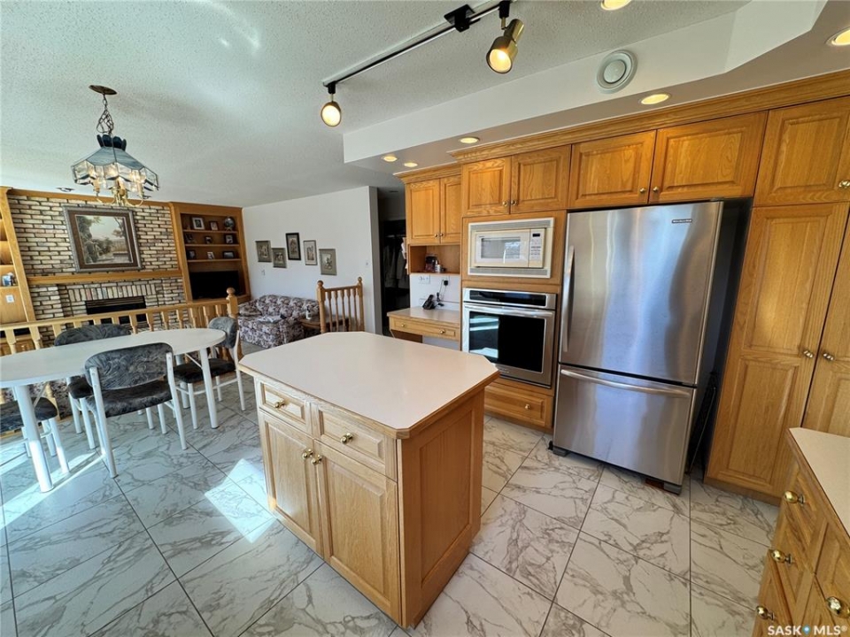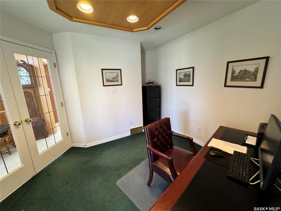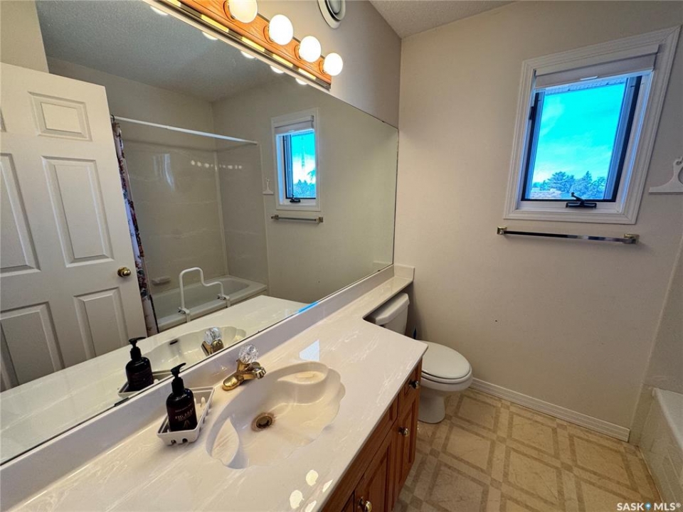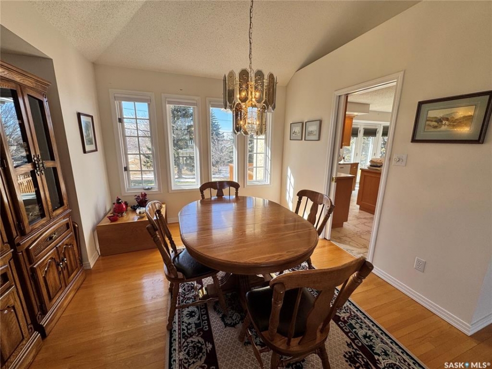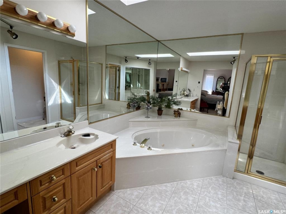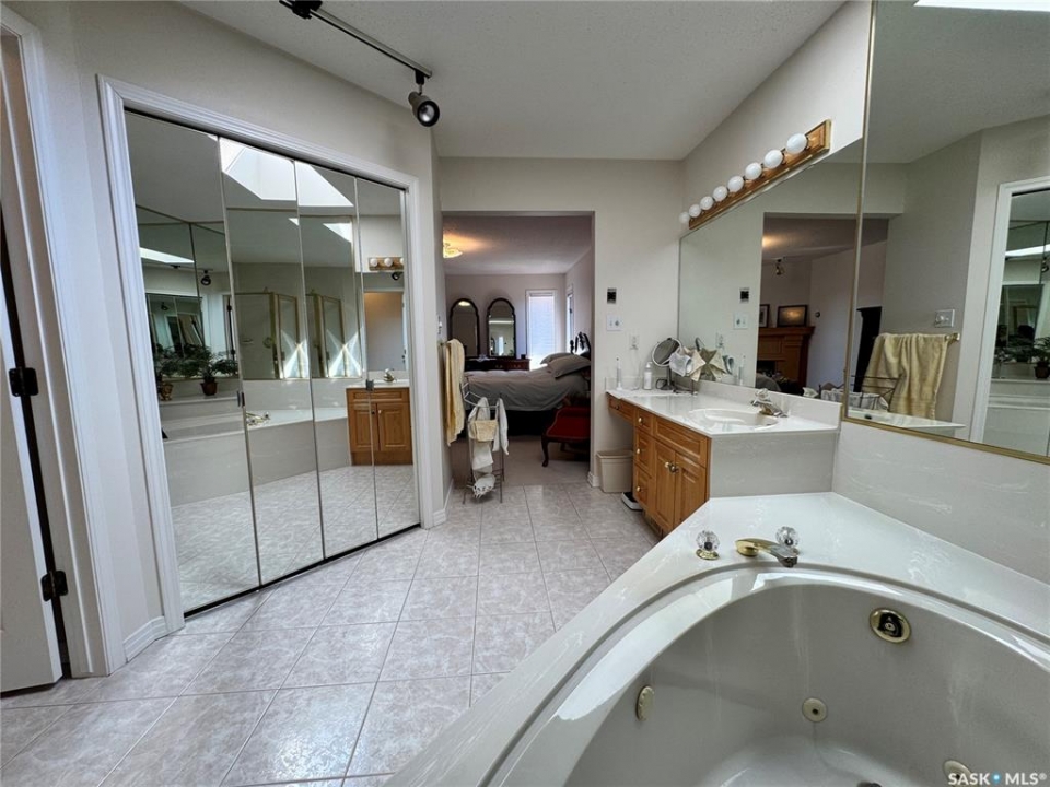 Step into a home that truly makes a statement from the moment you arrive. A grand foyer welcomes you in, highlighted by a stunning vaulted ceilings and a winding oak staircase that sets the tone for the rest of the home. The well-designed main floor blends comfort and entertaining. The bright, south-facing kitchen features garden doors to a deck overlooking the expansive backyard. A step down, the inviting family room offers a natural gas fireplace framed by built-in bookshelves and peaceful backyard views. On the opposite side of the kitchen, a pocket door leads to the formal dining room—perfect for gatherings—complete with a wet bar. A step down brings you to the impressive living room with vaulted ceilings. The main floor also includes a private den with double glass doors, a two-piece bath, and laundry with direct access to the triple attached garage. Upstairs, the staircase leads to two bedrooms, a full four-piece bath, and an exceptional primary suite featuring a natural fireplace, mirrored walk-in closet, and a spa-like ensuite with water closet, standalone shower, corner jacuzzi tub, and dedicated makeup area – A space that feels like your own private spa The developed basement adds versatility with a spacious rec room, three-piece bath, den/office, utility room, and storage. Situated on a spacious corner lot, the property features mature trees, underground sprinklers, a large deck, paving stone patio, and triple driveway. Ideally located just two blocks from schools and one block from Main Street, this home offers the perfect balance of convenience and a quiet, family-friendly neighborhood. If you've been waiting for the perfect upgrade or your family's next dream home—this is one you won't want to miss.